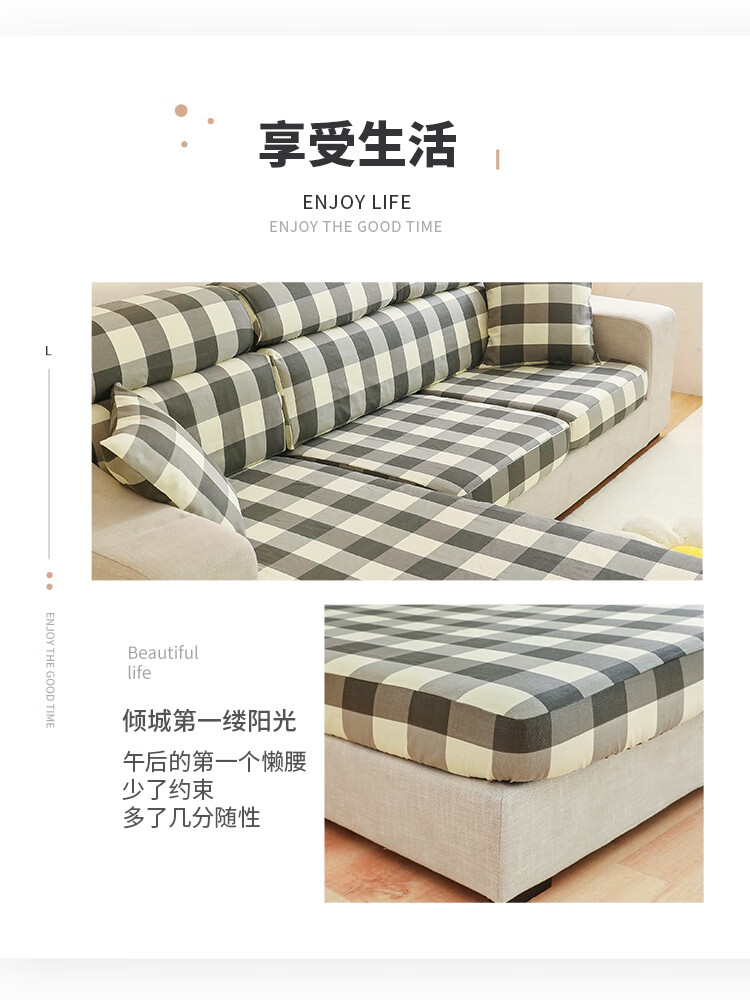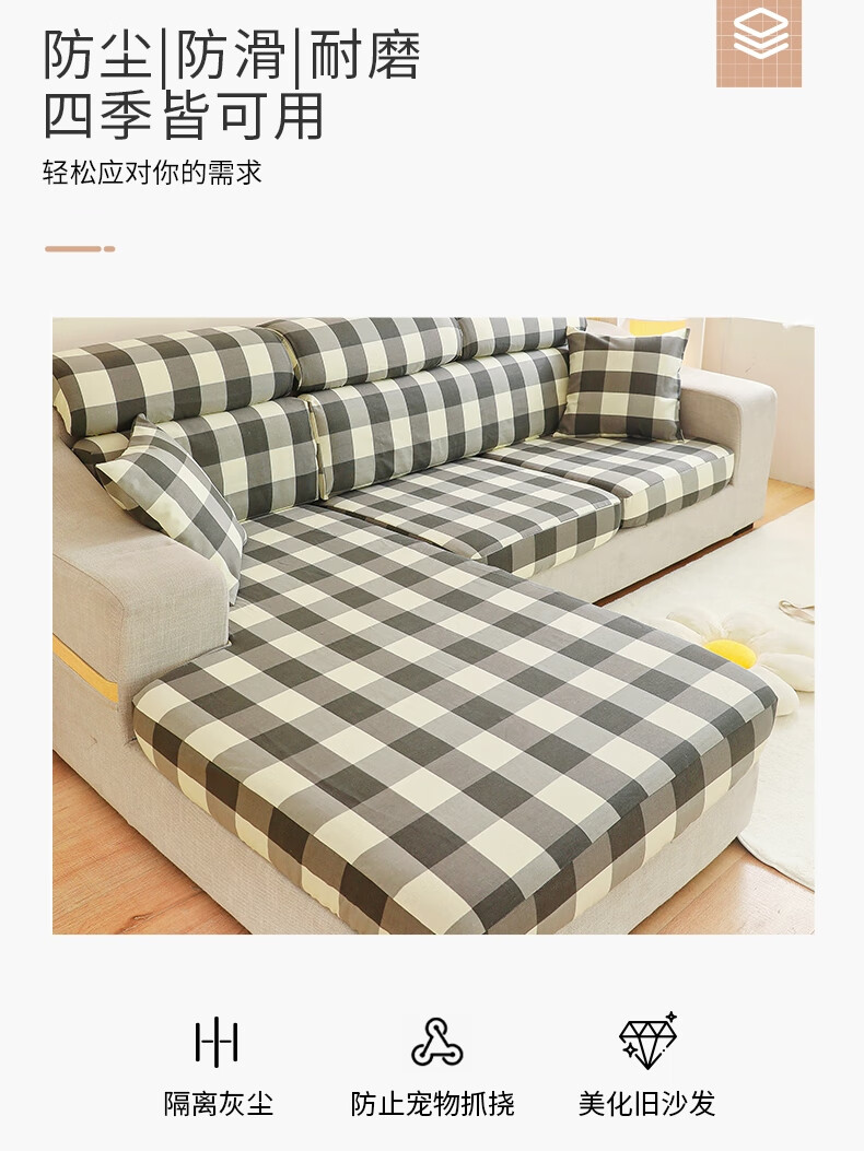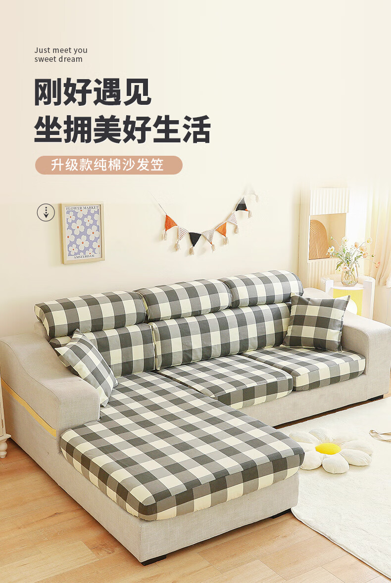 Silk Pure Cotton Anti-static Sofa Cover Cover All-Inclusive Thickened Four-Season Sofa Cushion Cover Customized No Static Blue Check Roving Anti-Wrinkle Customized According to Sofa Cushion Size (Contact Customer Service