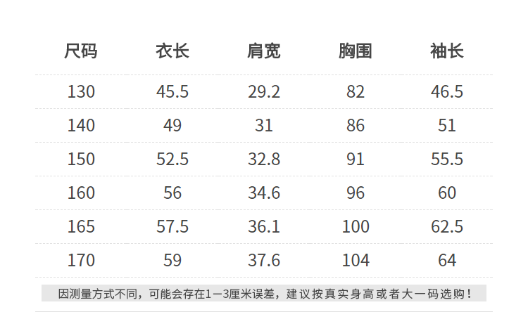 China (cm) 160-165/84-86 165-170 / 88-90 167-172 / 92-96 168-173 / 98-102 170-176 / 106-110