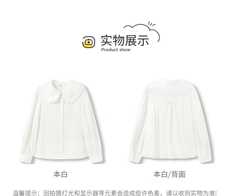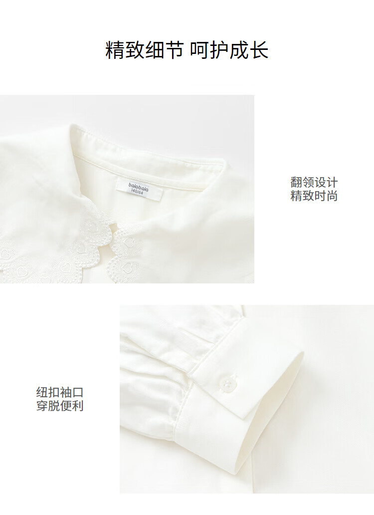 Balabala children's clothing girls' shirt children's white shirt spring big children's long-sleeved top sweet original white 130 cm