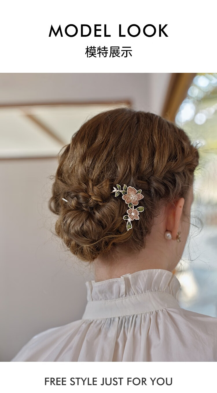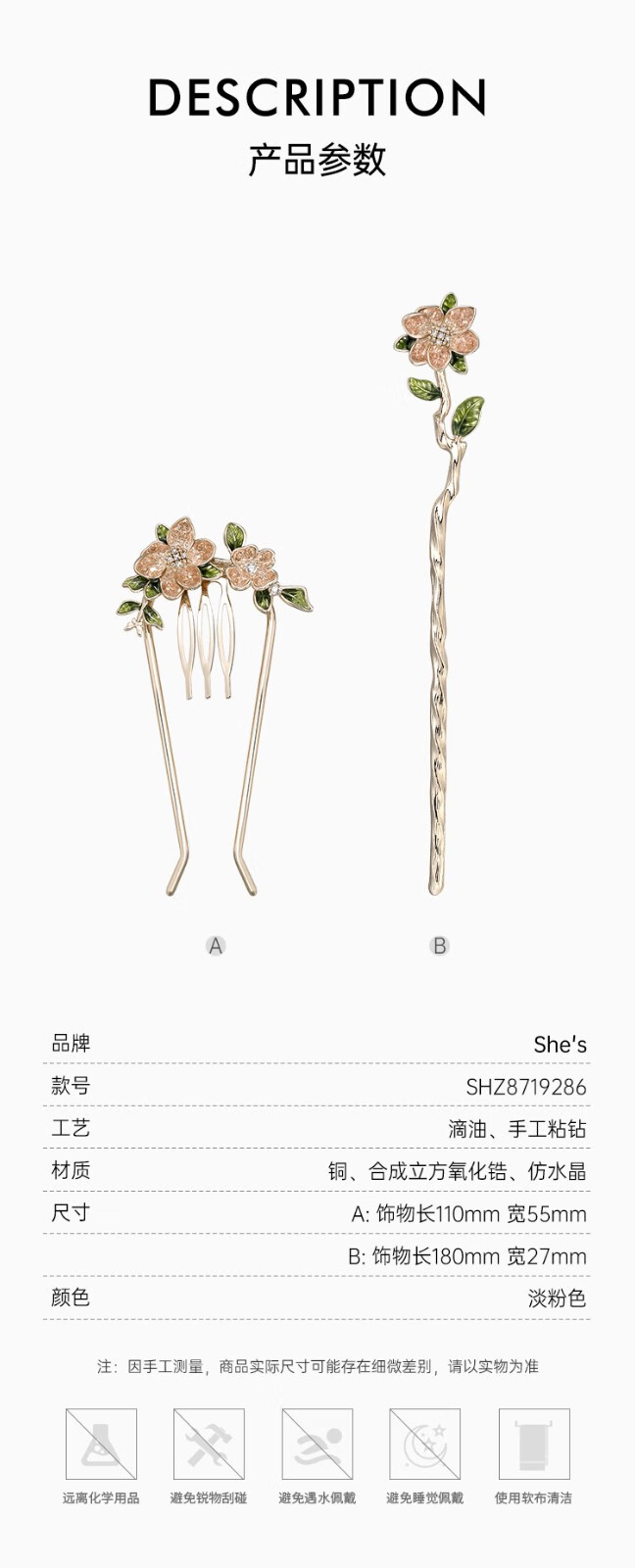 She s Akiko's love look, bright flowers, dripping oil, hairpin, antique hairpin, hairpin, birthday gift for women, light pink SHZ8719286A0 (comb)