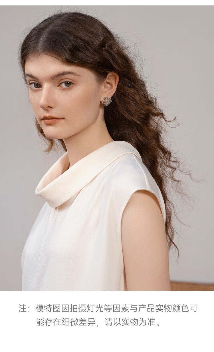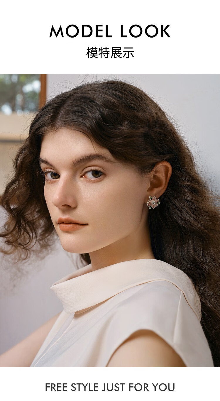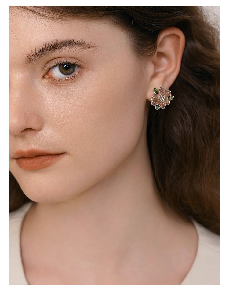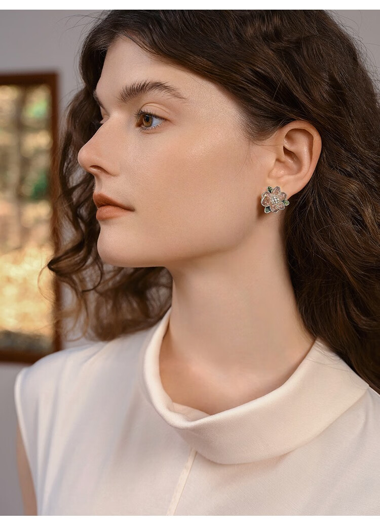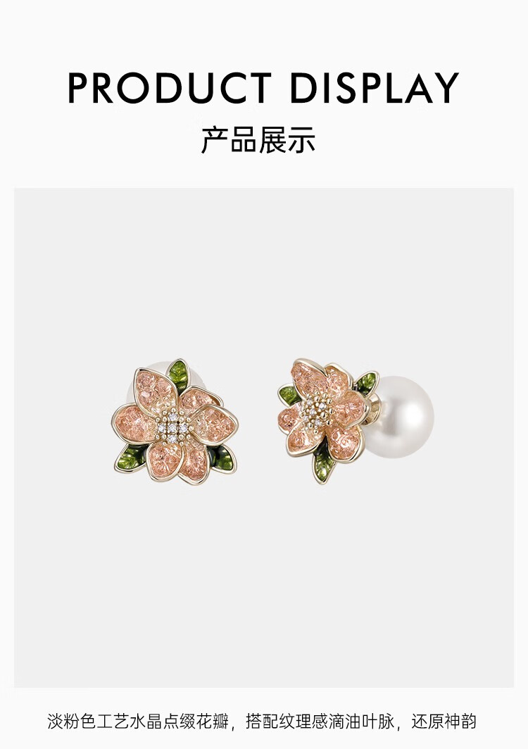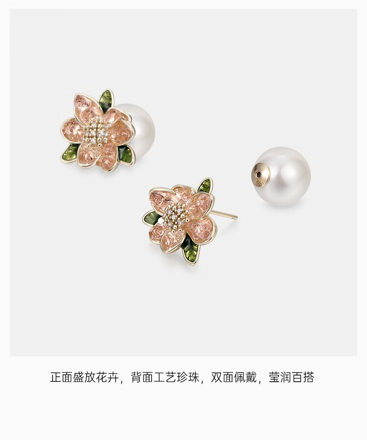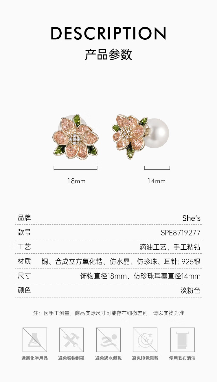 She s Qianzi's love look, romantic flowers, shiny craft pearl earrings, 925 silver needle earrings, birthday gift for women, light pink A0