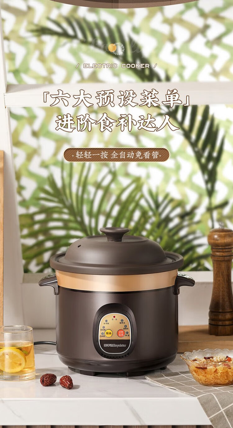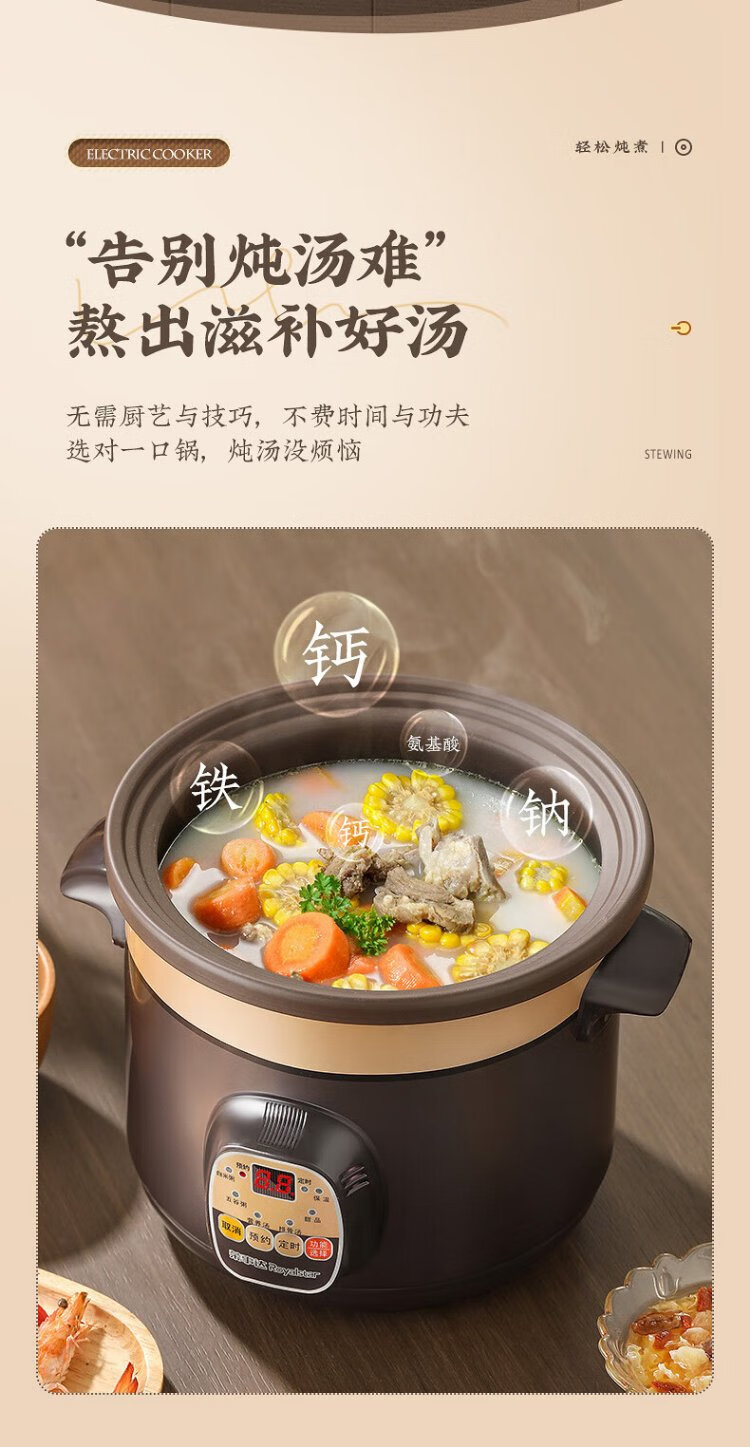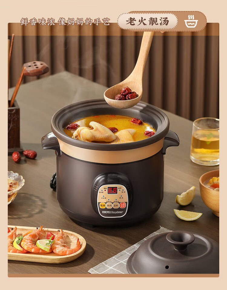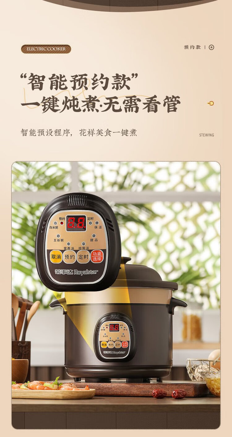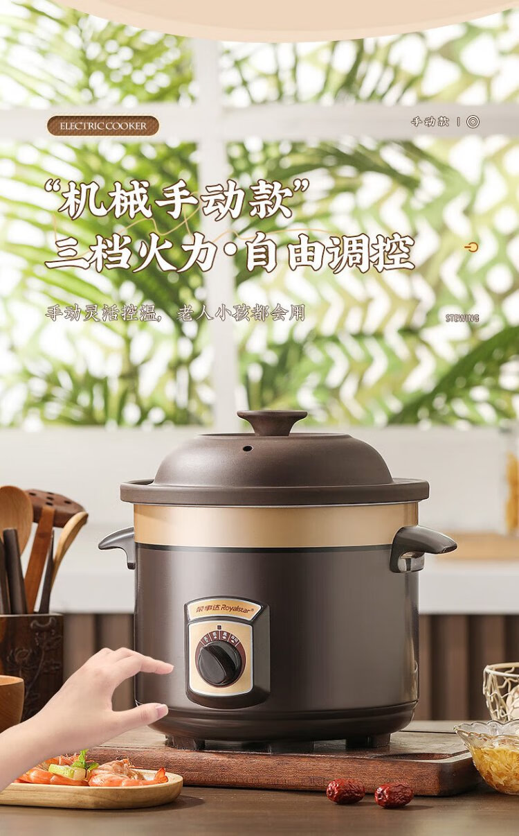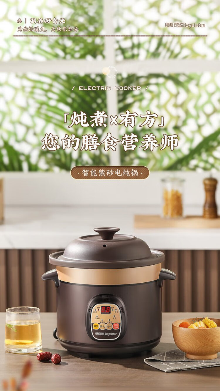 Royalstar Electric Stew Pot Fully Automatic Soup Ceramic Purple Clay Pot Household Large Capacity Intelligent Reservable Timed Electric Stew Cup Porridge Electric Casserole Slow Cooker Soup Pot Stew Pot Purple Clay Straight Stew Mechanical Manual Turn Off/2-3 People 2.5L