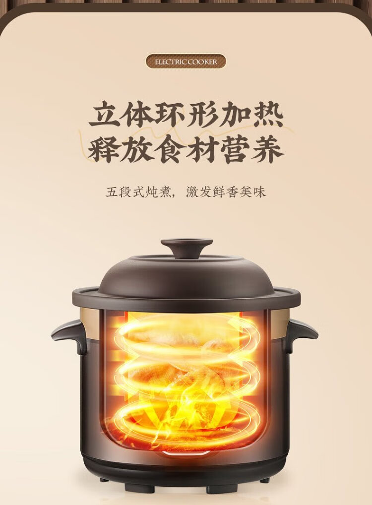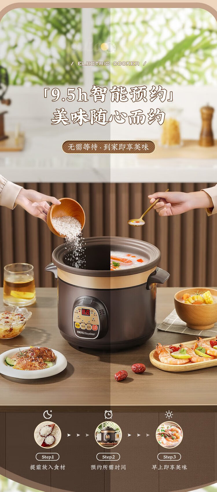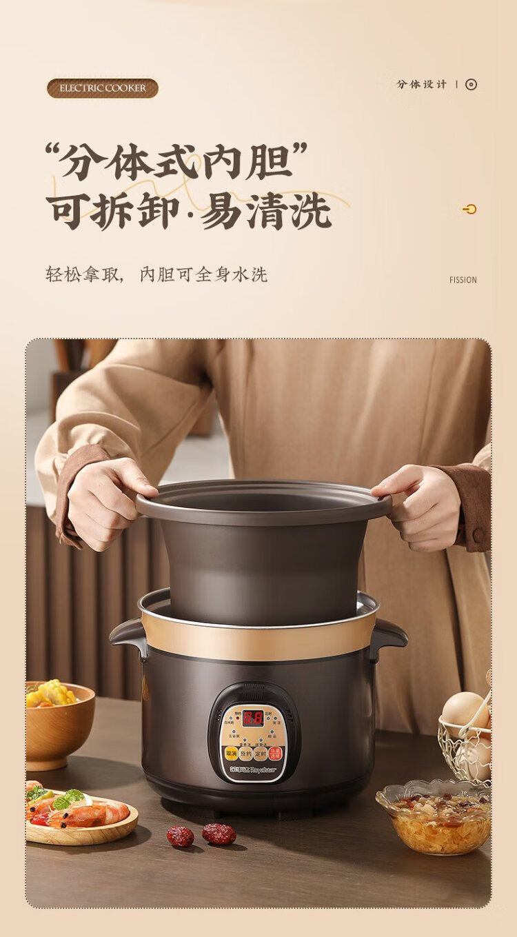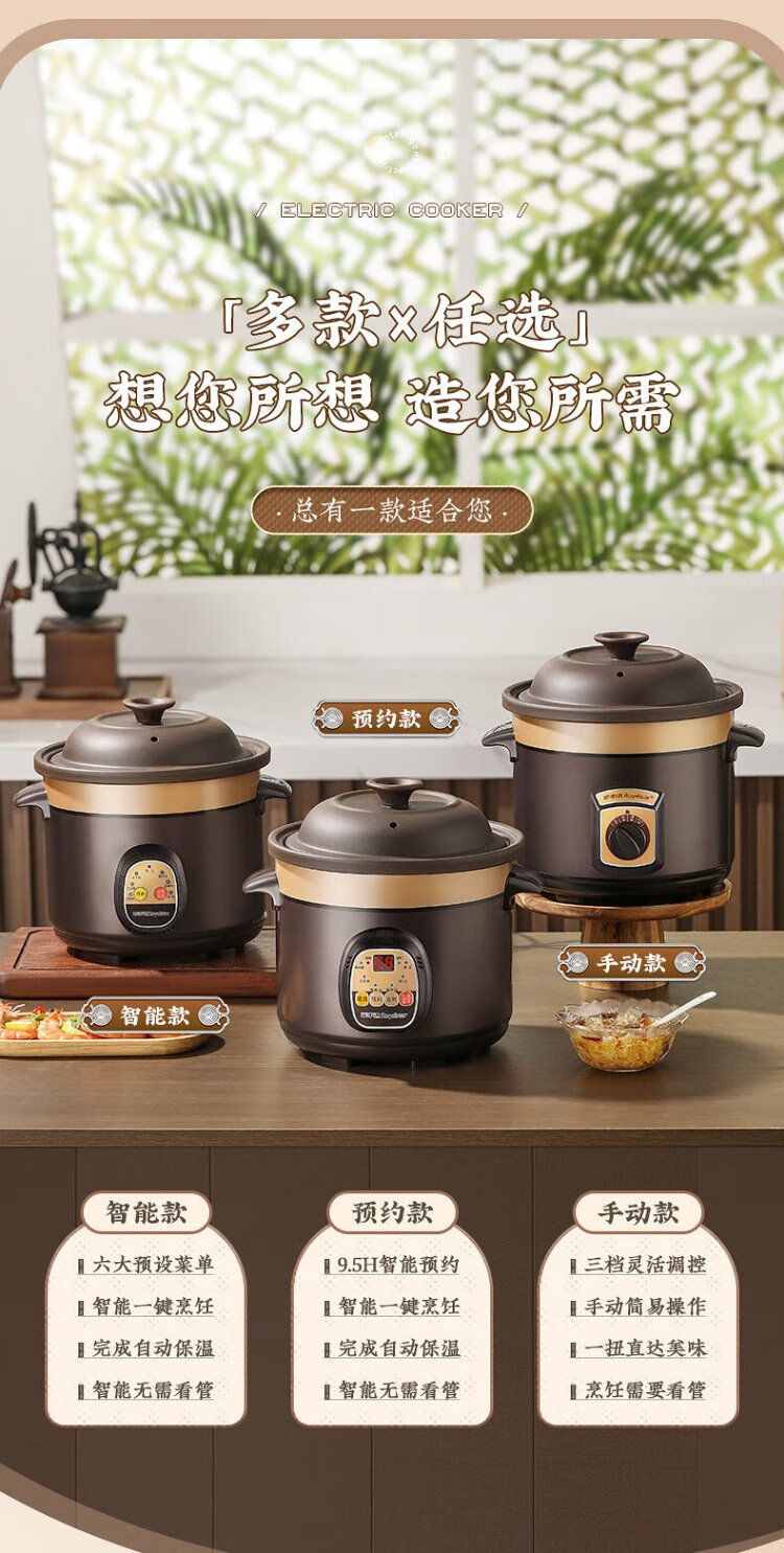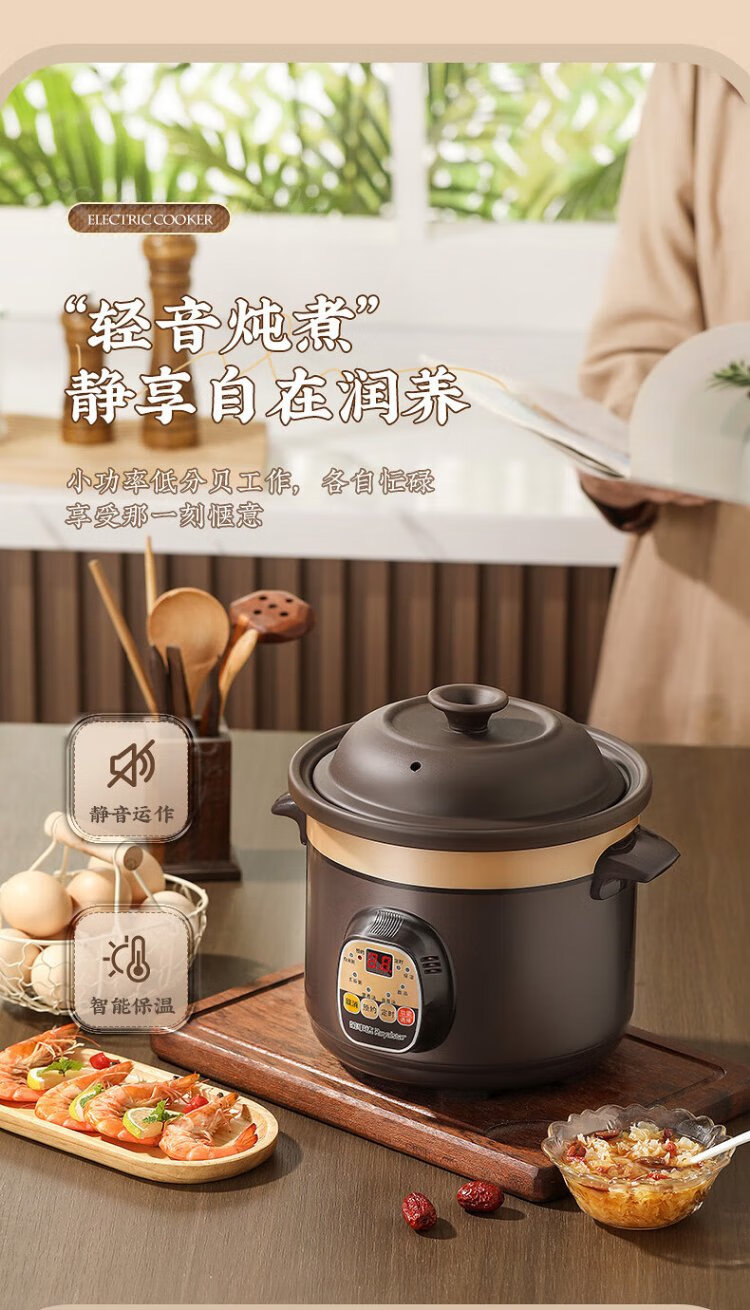 Royalstar Electric Stew Pot Fully Automatic Soup Ceramic Purple Clay Pot Household Large Capacity Intelligent Reservable Timed Electric Stew Cup Porridge Electric Casserole Slow Cooker Soup Pot Stew Pot Purple Clay Straight Stew Mechanical Manual Turn Off/2-3 People 2.5L