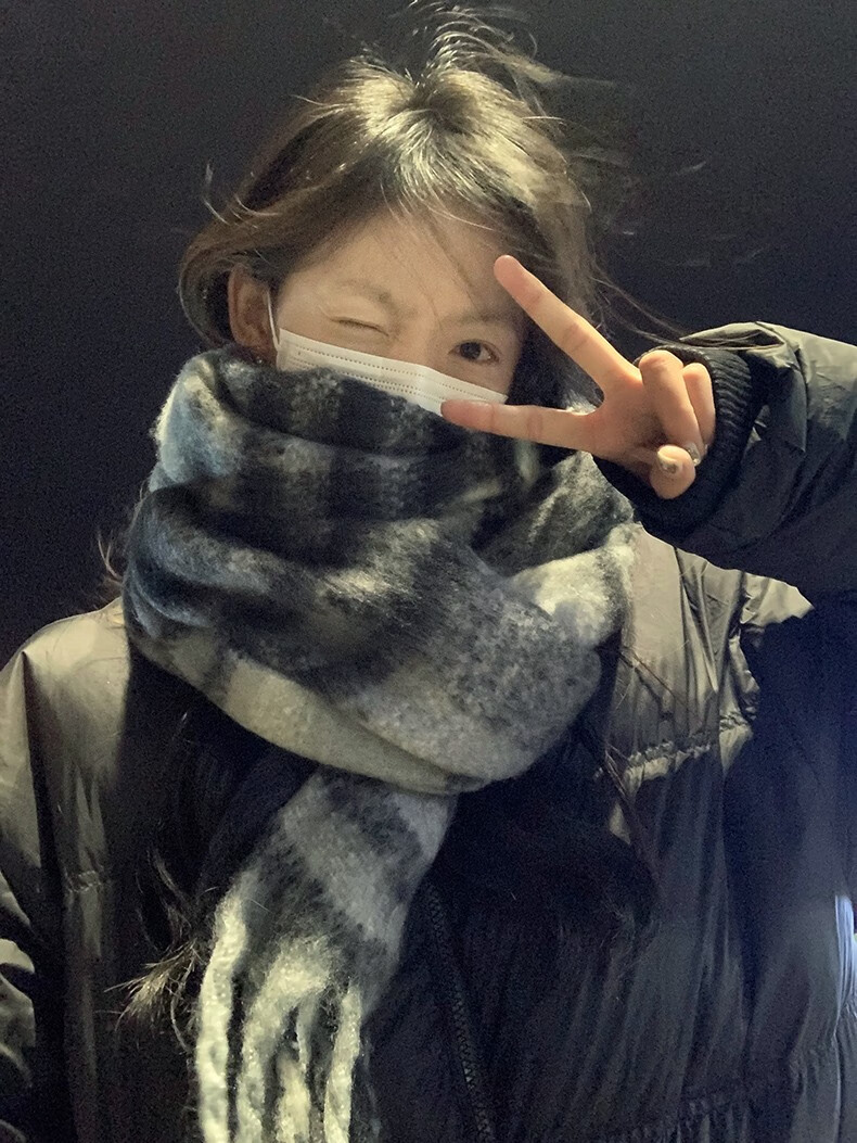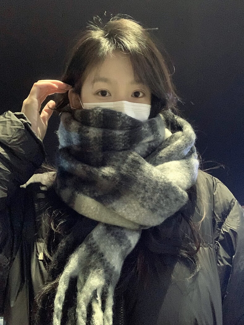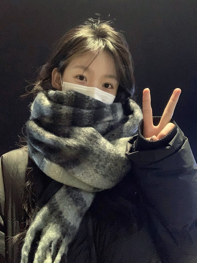 Bo Na Ling Scarf Women's Winter New Korean Retro Plaid Couple Shawl Thickened Warm Scarf as a Gift for Boyfriend Couple Scarf Black Gray