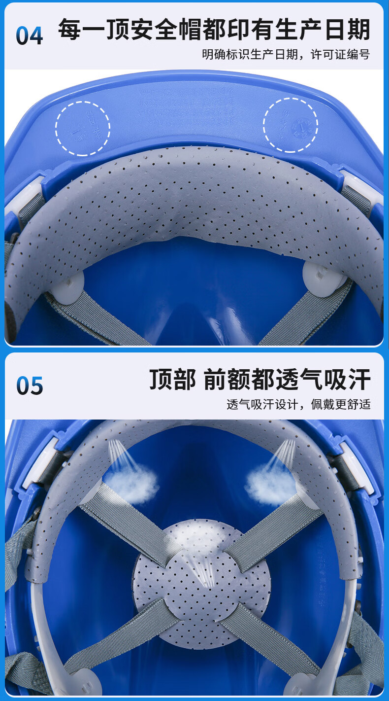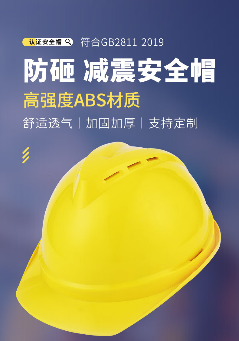 Zhuo Defense Safety Helmet Construction Site Construction Helmet National Standard Thickened Lining Safety Production Workshop Engineering Safety Helmet Customized National Standard V-shaped Thickened Model (New Style) - Blue