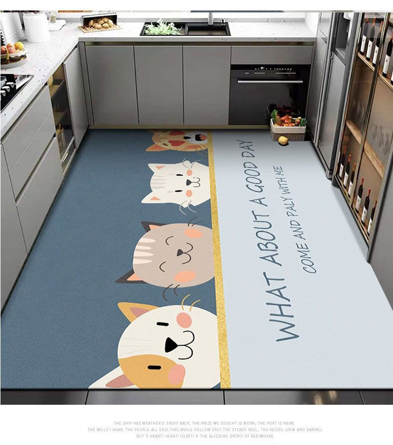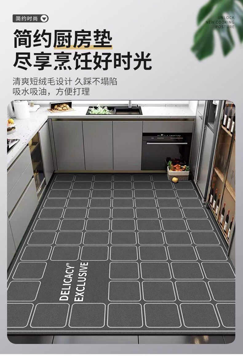 Xuxian floor mats, kitchen floor, stain-resistant mats, household anti-slip carpets, water-absorbent and oil-proof, large-area custom-made foot mats, versatile cutlery, 140*180cm, waterproof and anti-scalding