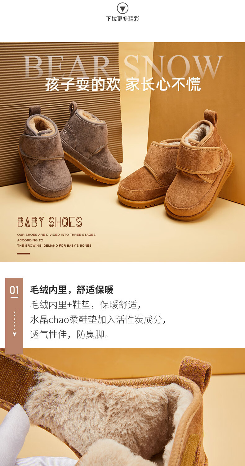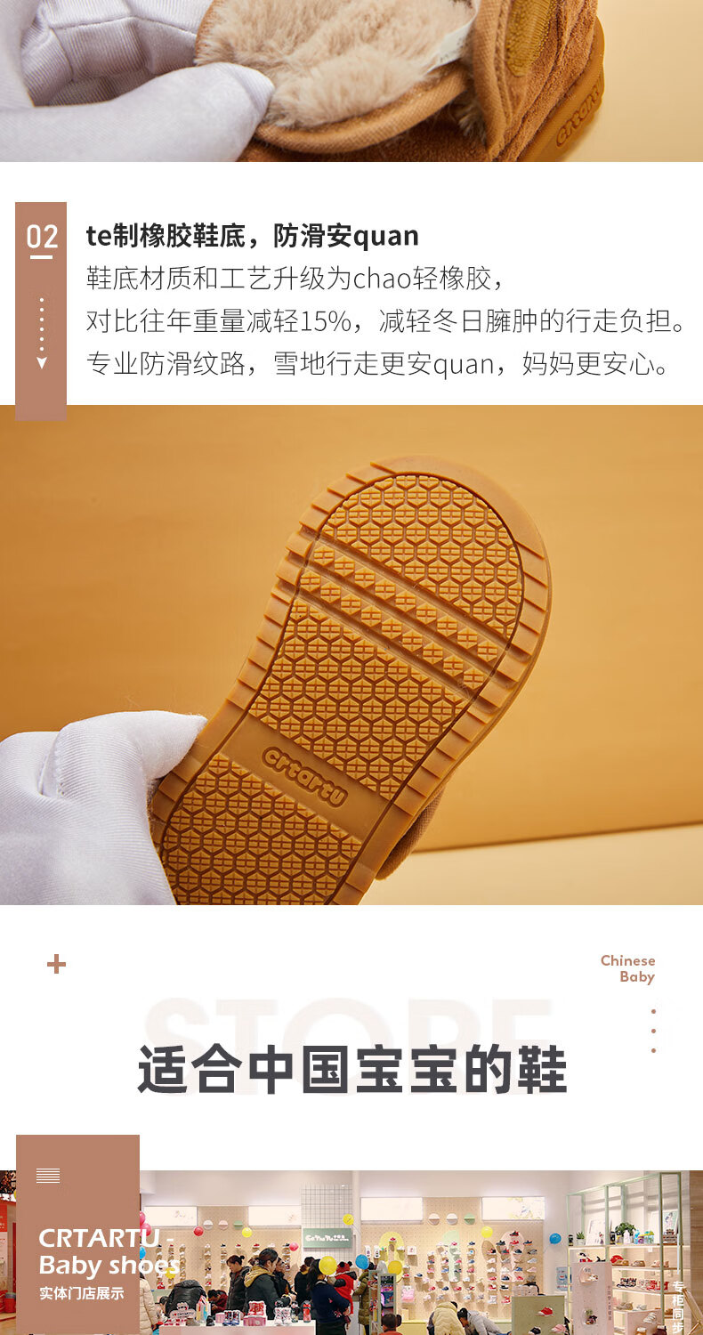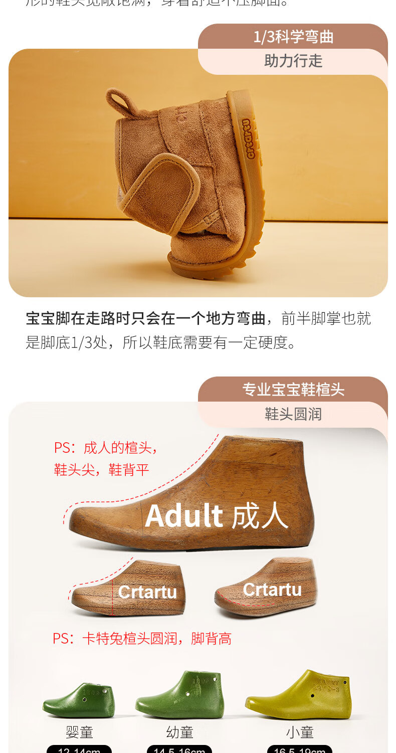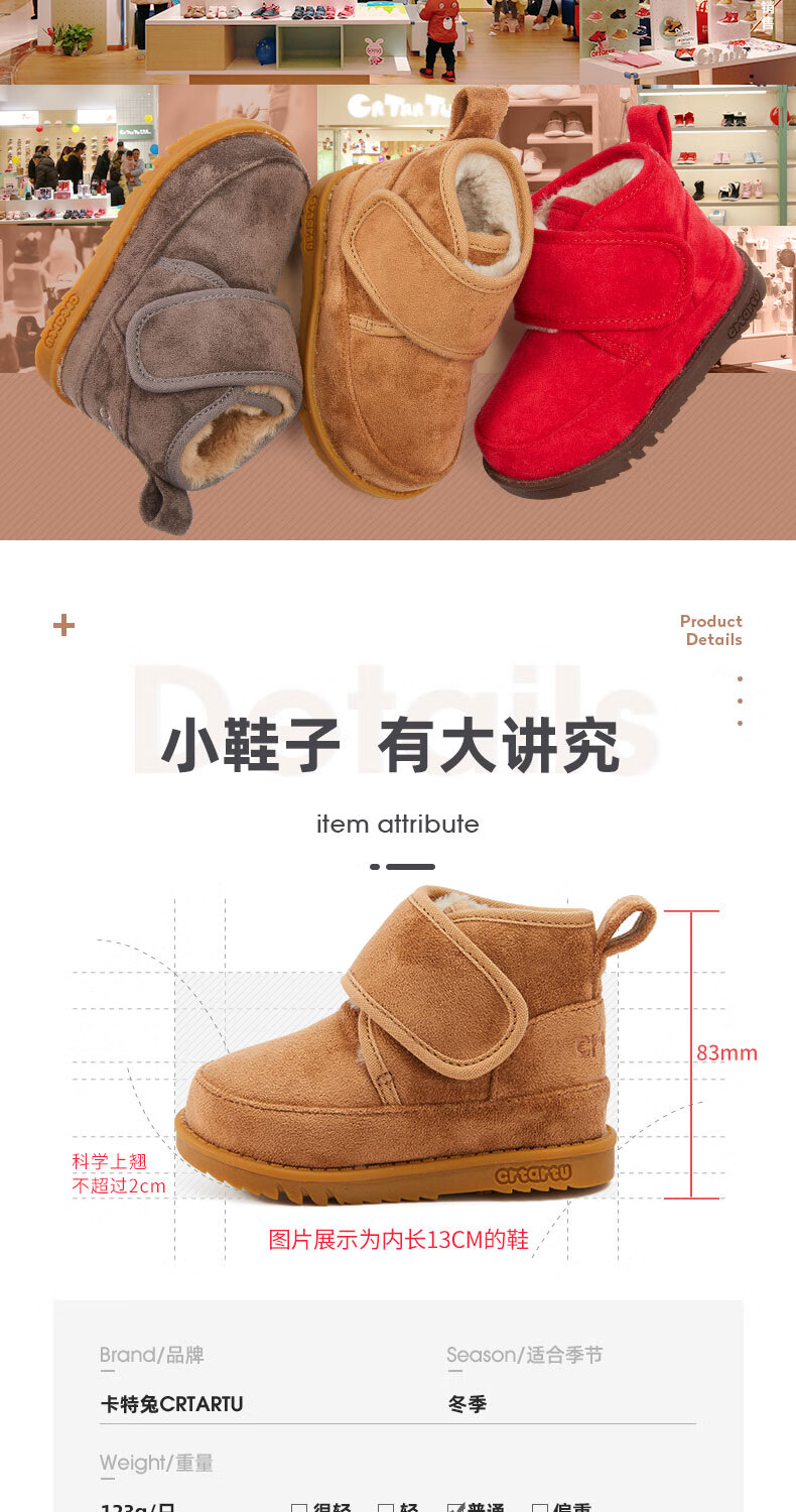 Carter rabbit children's snow boots boys' cotton shoes warm shoes girls' boots plus velvet baby winter shoes cotton boots brown 26 inner length 16.0cm foot length 15.0-15.5