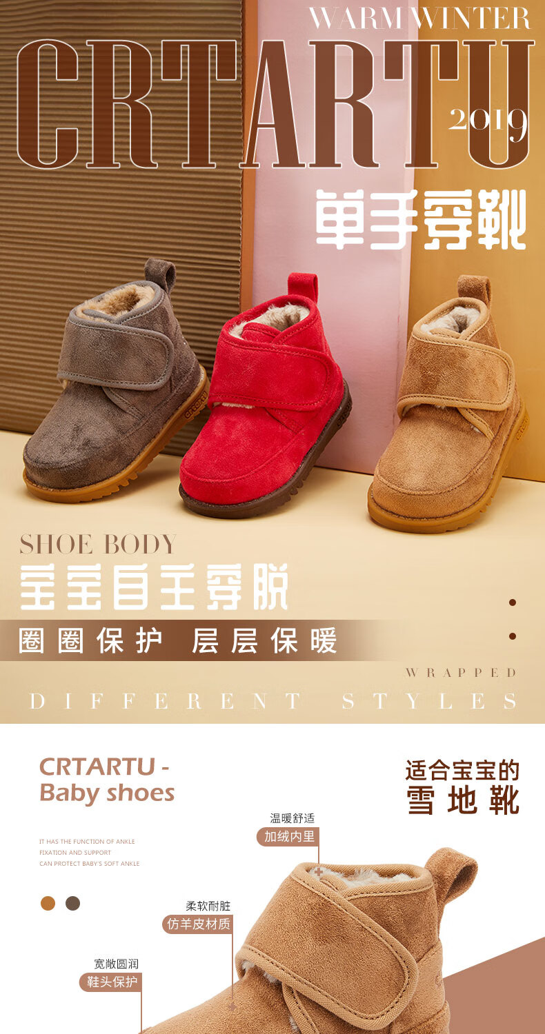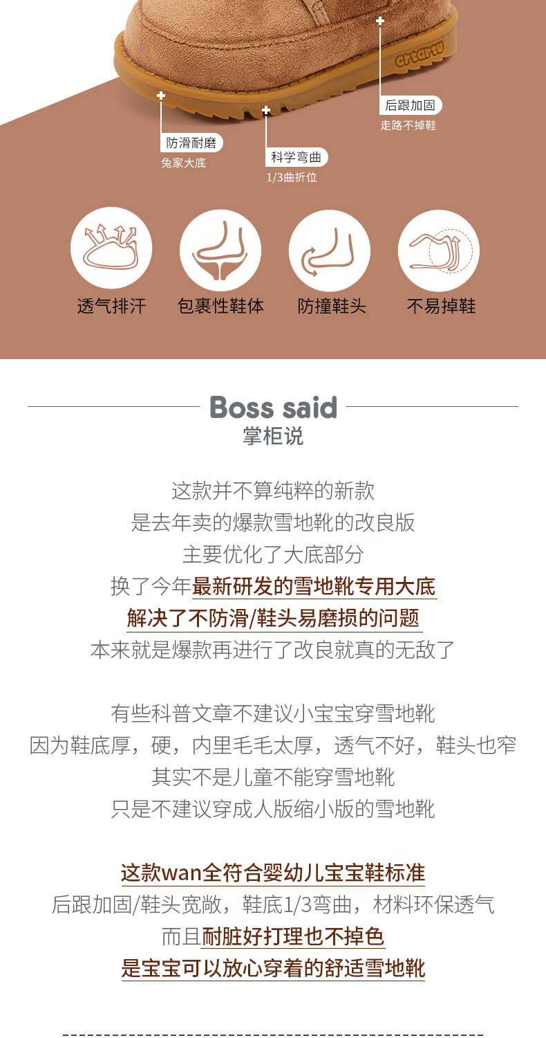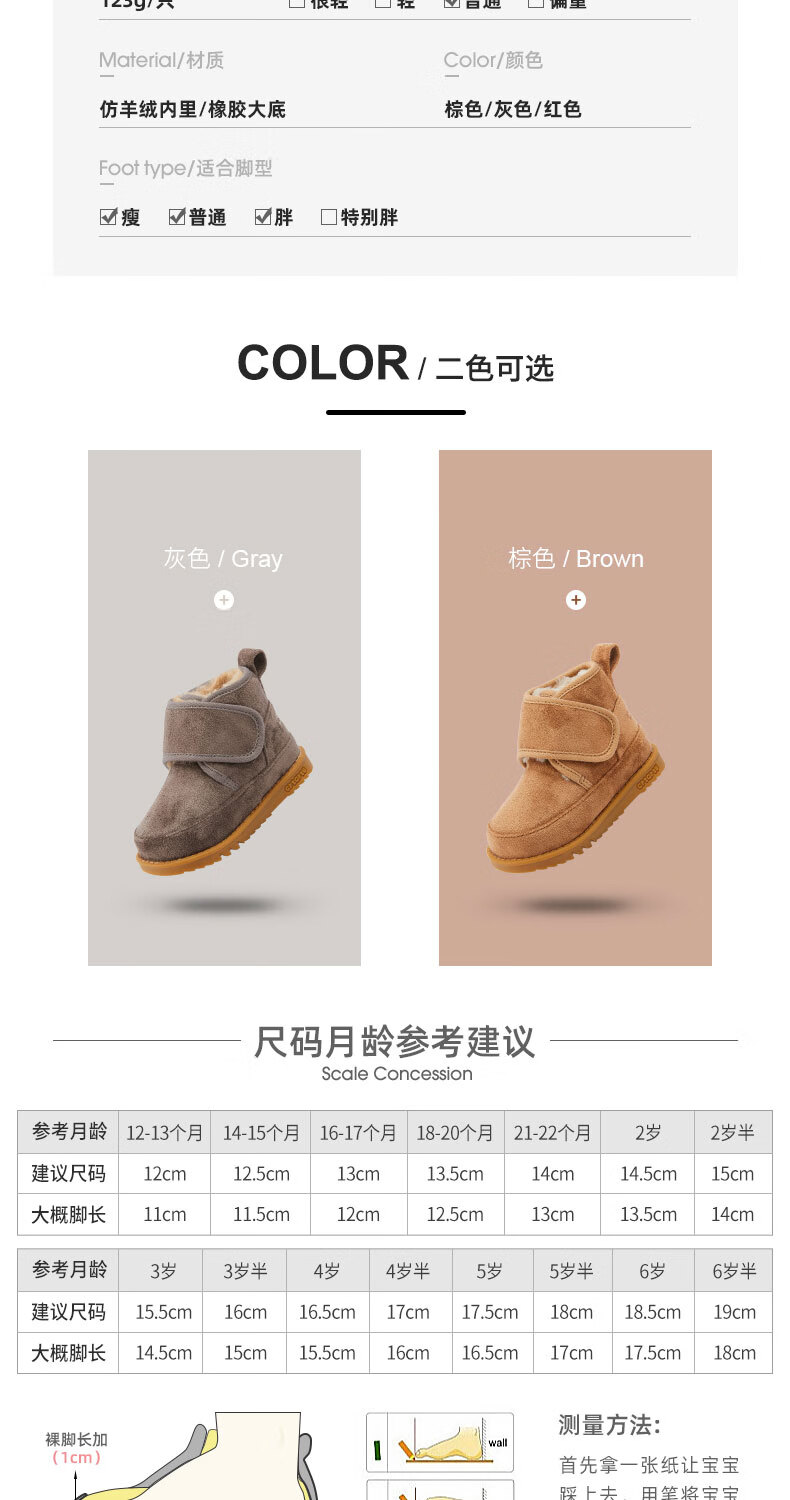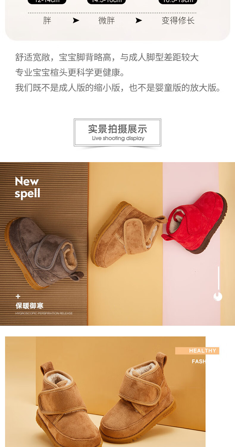 Carter rabbit children's snow boots boys' cotton shoes warm shoes girls' boots plus velvet baby winter shoes cotton boots brown 26 inner length 16.0cm foot length 15.0-15.5