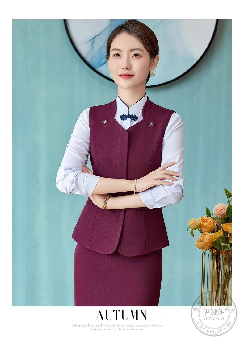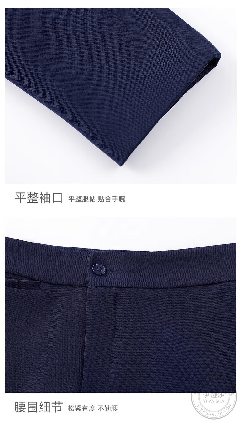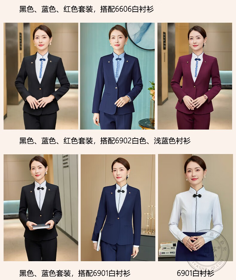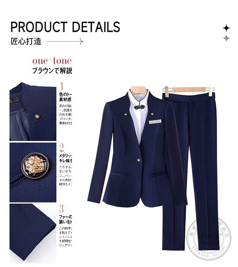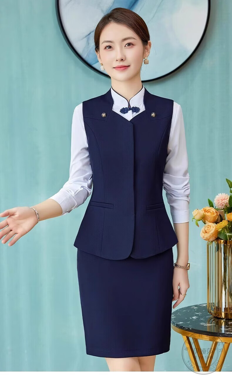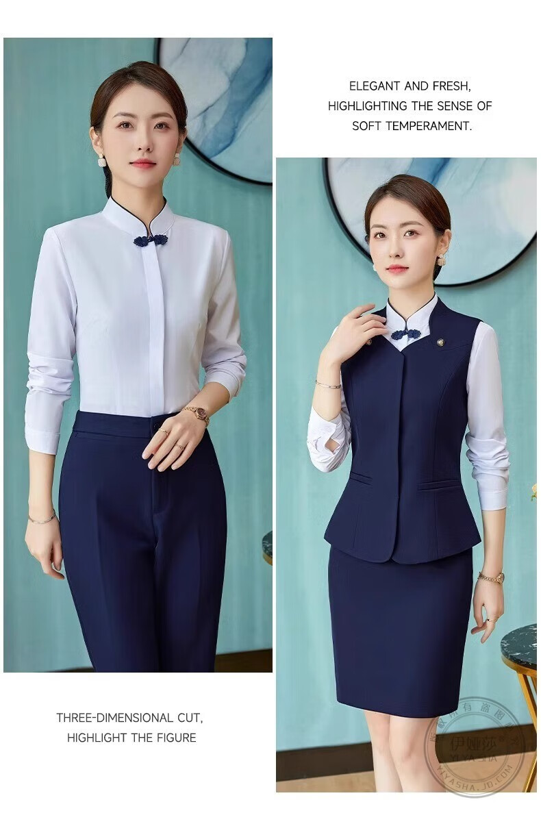Iyasha hotel front desk reception work clothes for women high-end temperament professional suit suit Chinese catering waiter work clothes blue suit + shirt + pants XL recommended 110-120 Jin Jin equals 0.5 kg