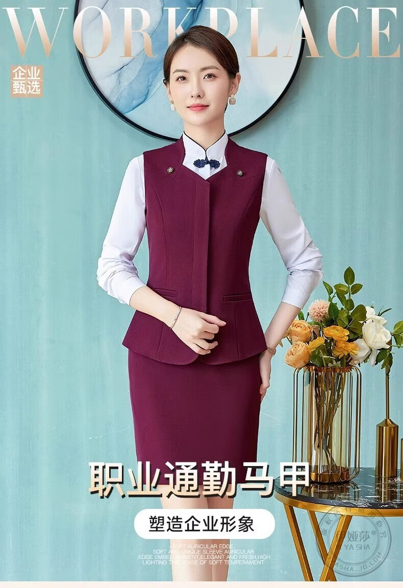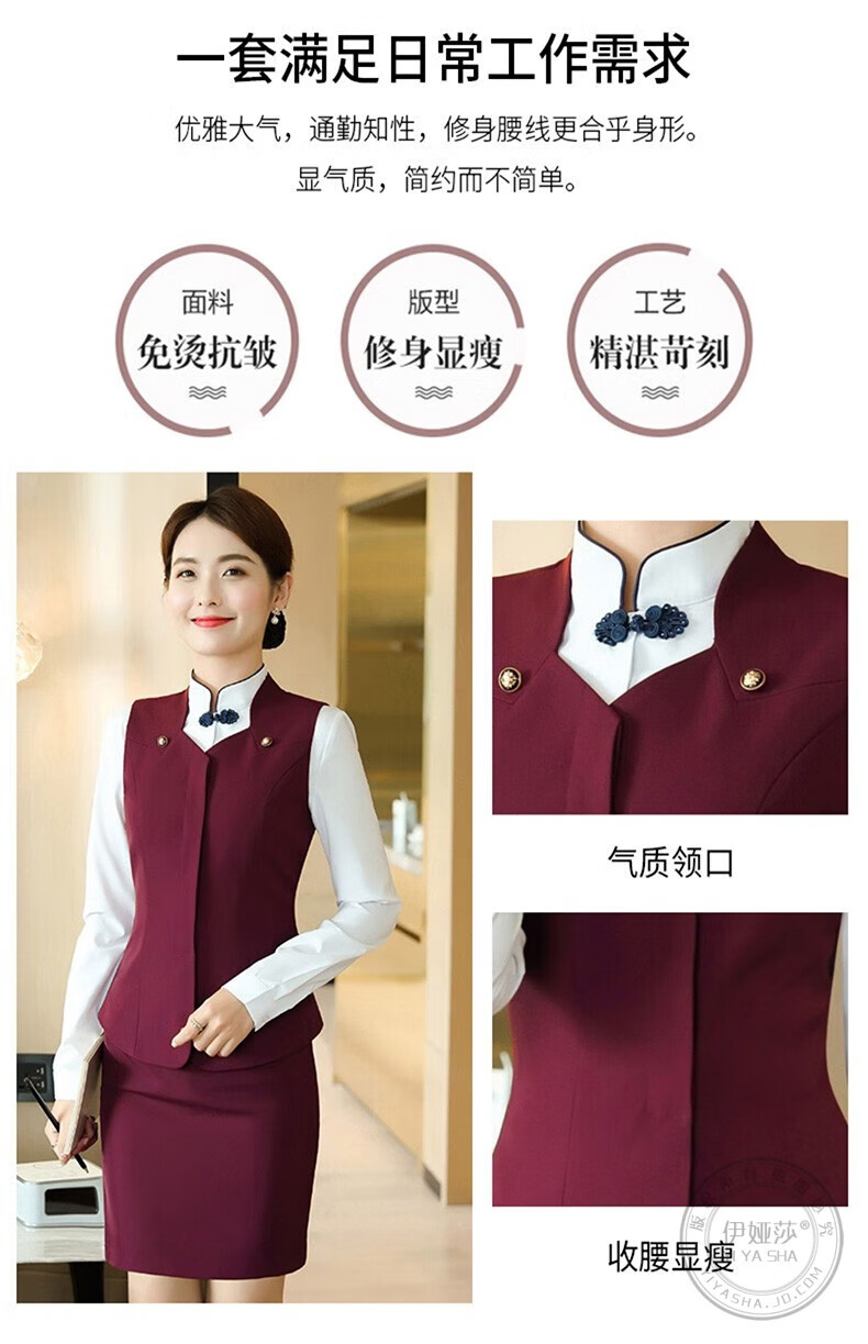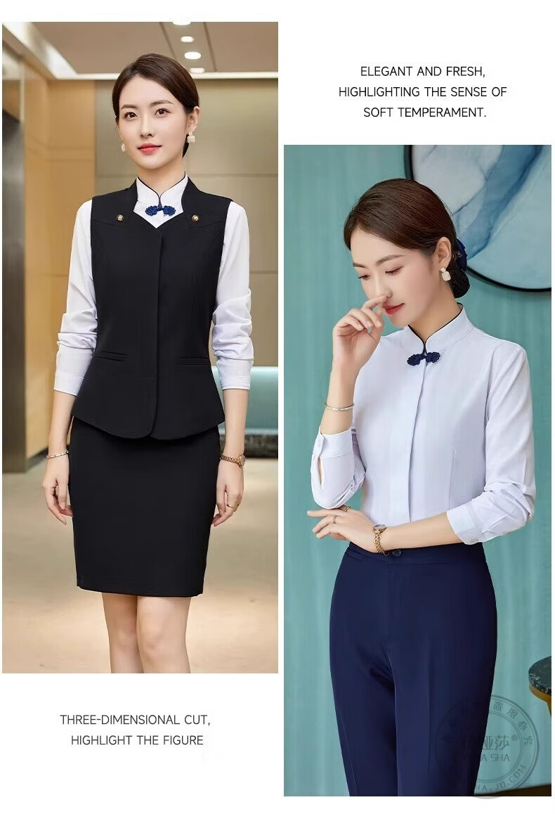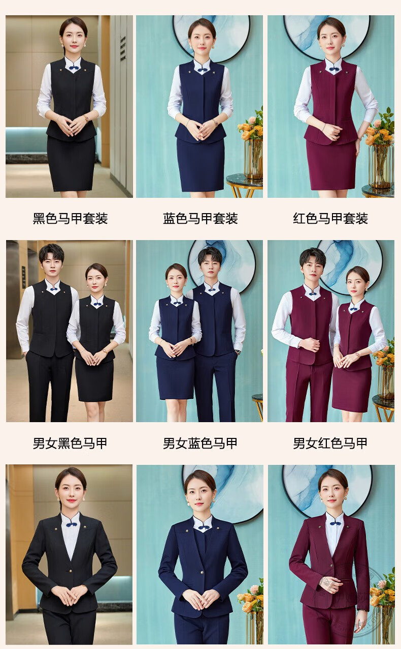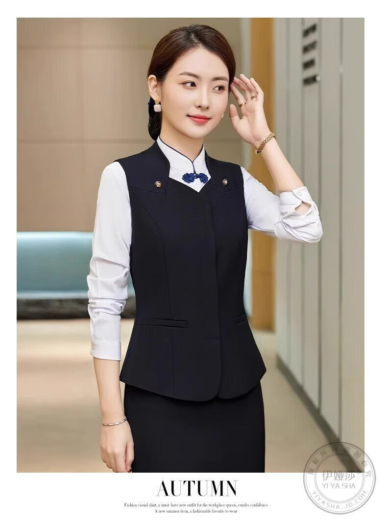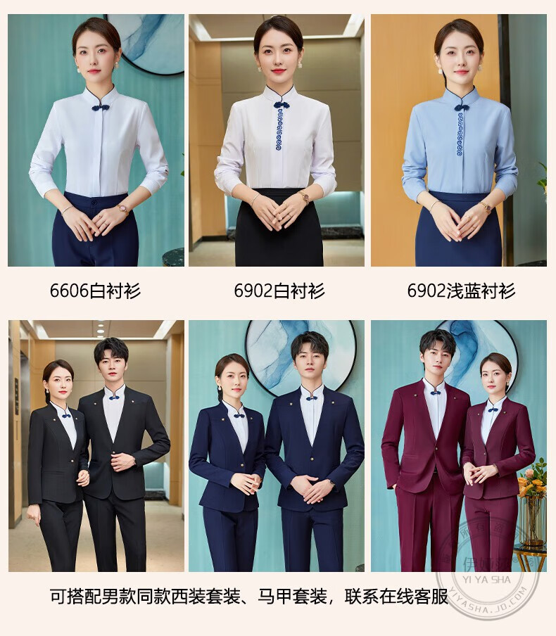 Iyasha hotel front desk reception work clothes for women high-end temperament professional suit suit Chinese catering waiter work clothes blue suit + shirt + pants XL recommended 110-120 Jin Jin equals 0.5 kg