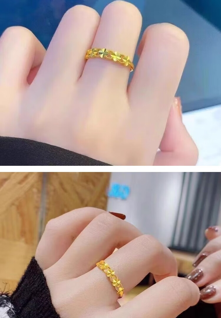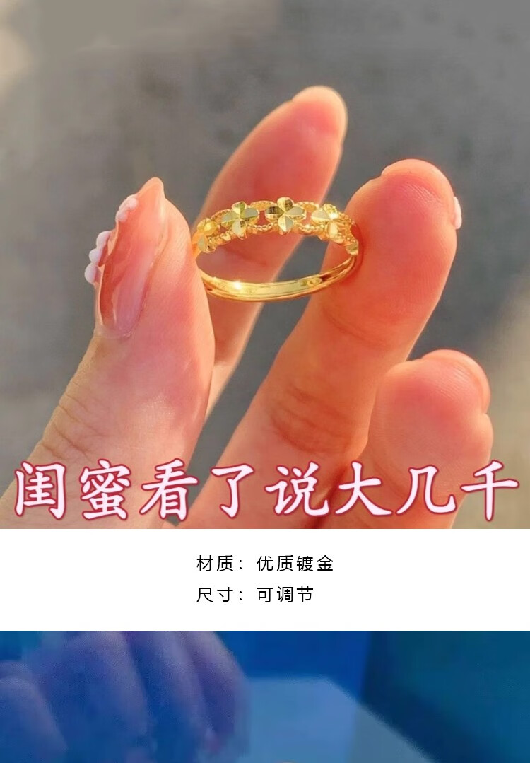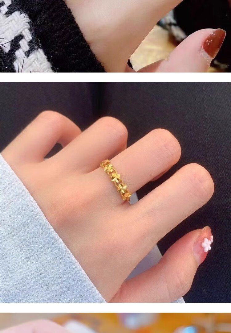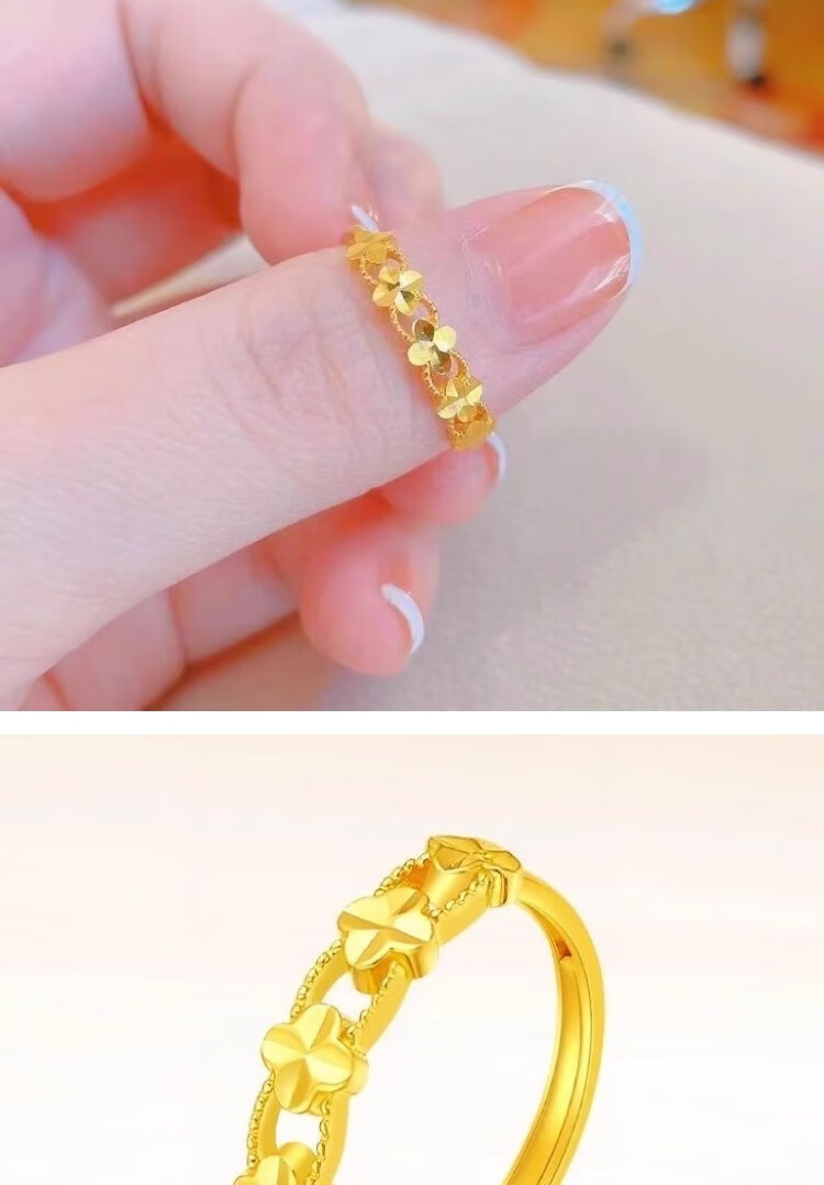 QMXD four-leaf clover gold ring for women high-end light luxury ring fashion wedding decoration gold-plated live ring birthday gift ring