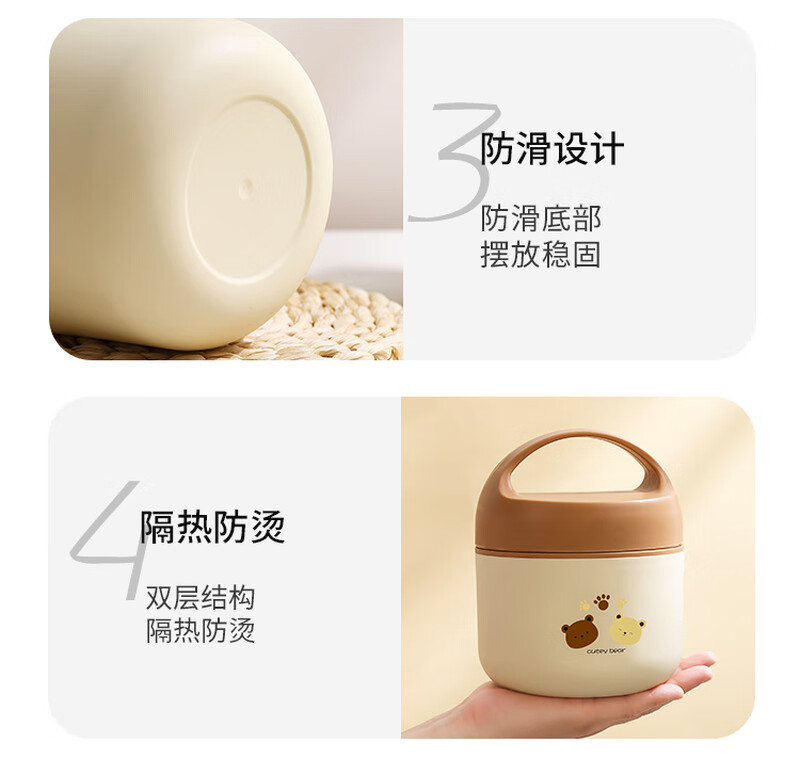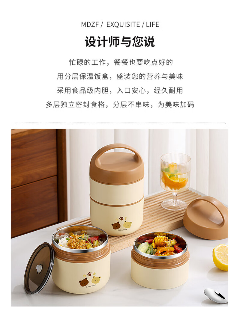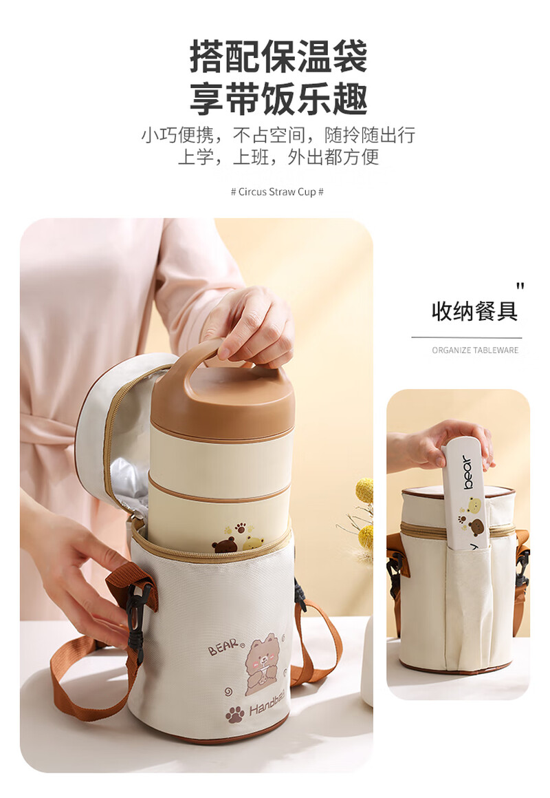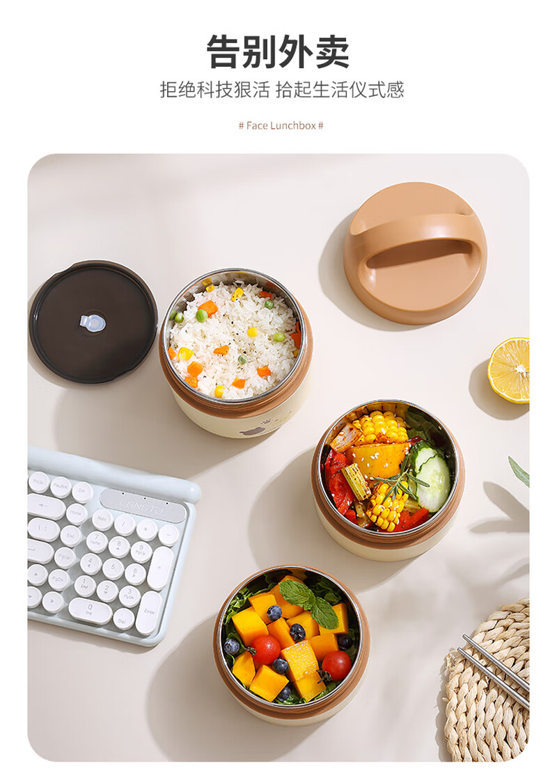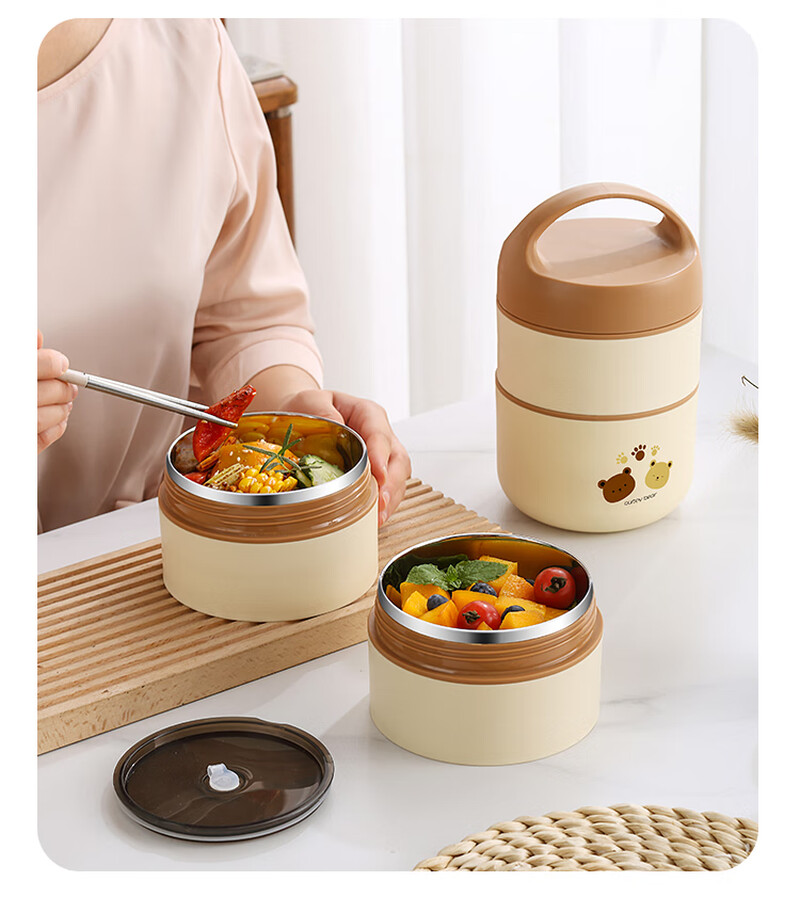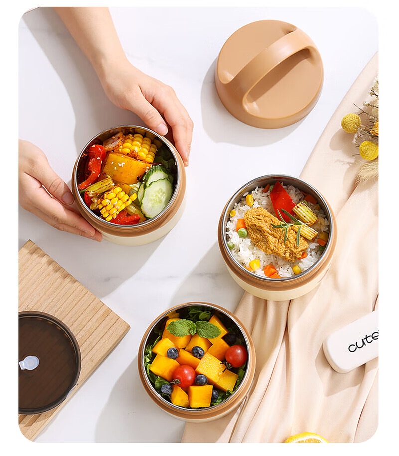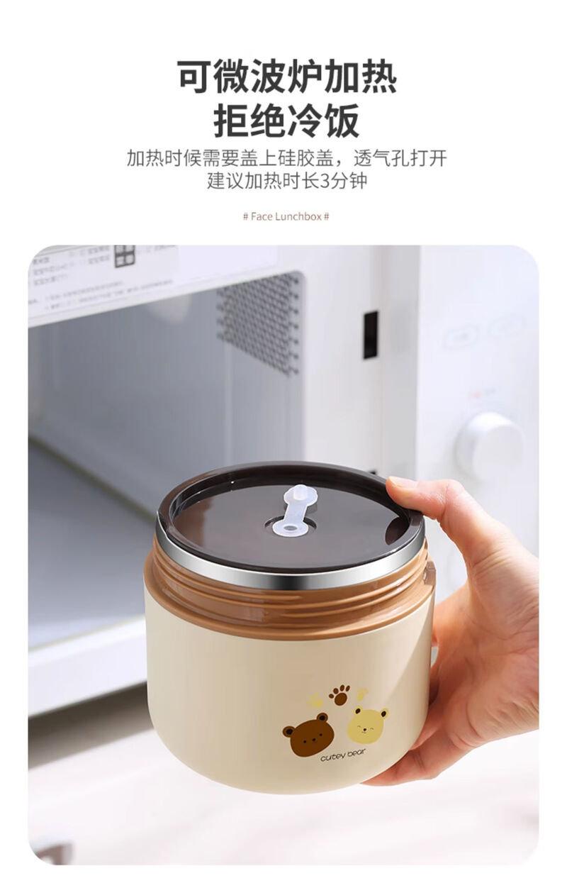 Mamba fish soup bowl with lid for work insulation, take-out lunch box, lunch bucket, portable stainless steel lunch box, lunch box, microwaveable, 304 handle lunch box, white single layer
