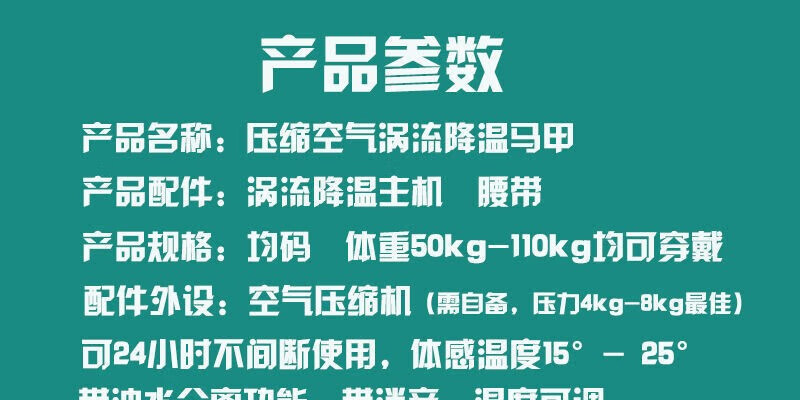 Summer vortex cold compressed air vest cooling vest welder high temperature heatstroke protection overalls main set