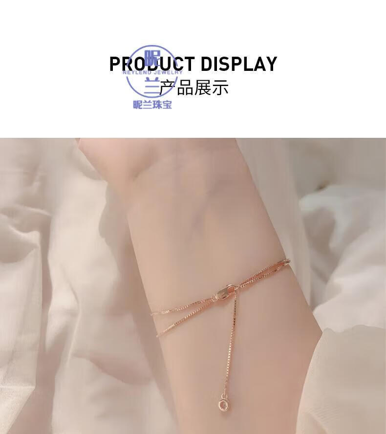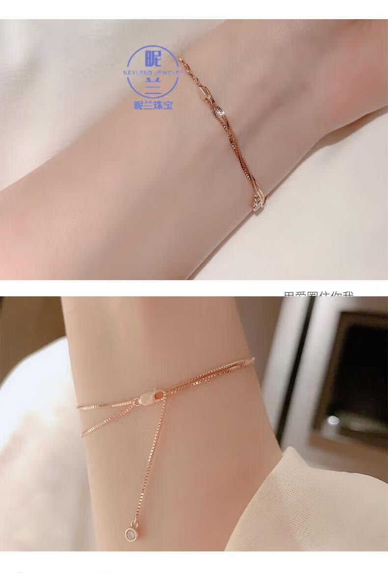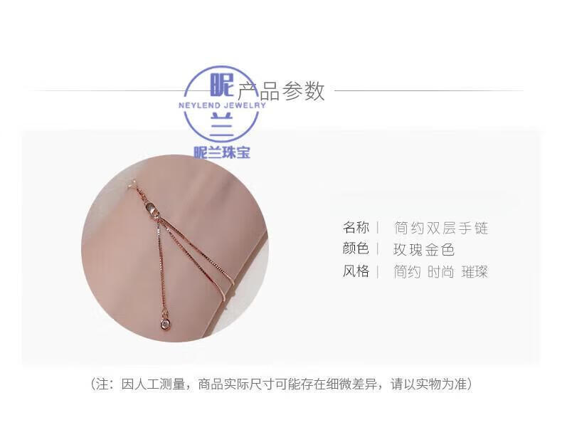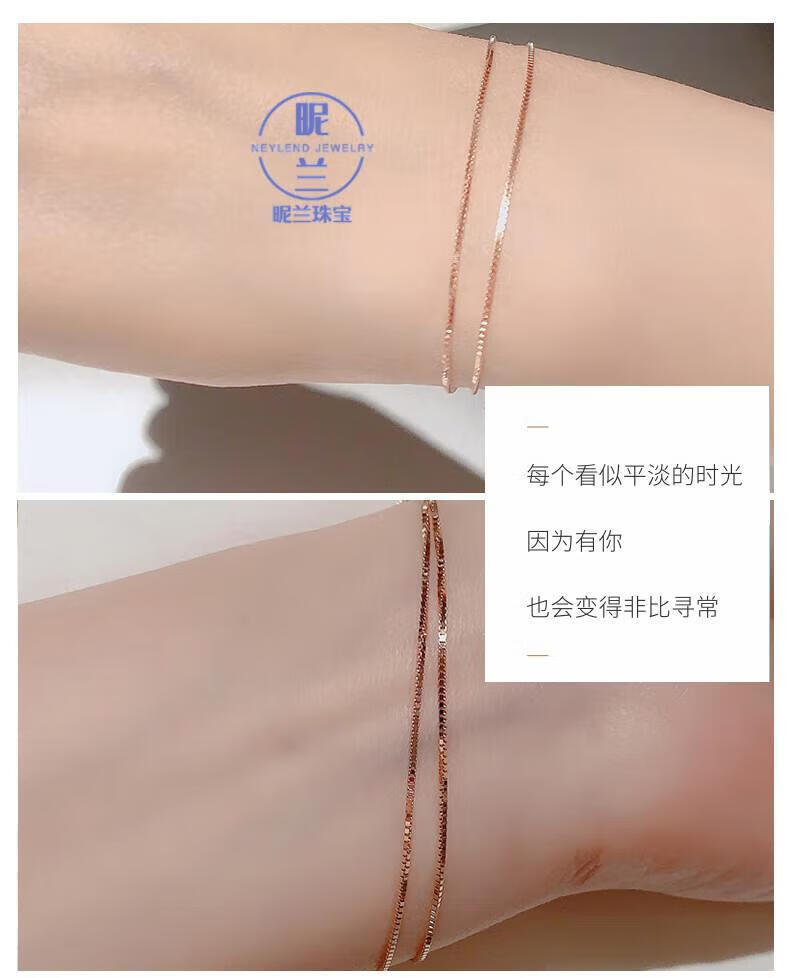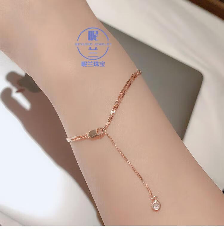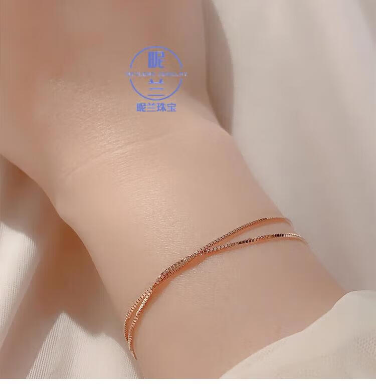 Nilan Fat Donglai same style 18k rose gold bracelet simple double layer women's anklet women's moissanite bracelet rose gold 18cm
