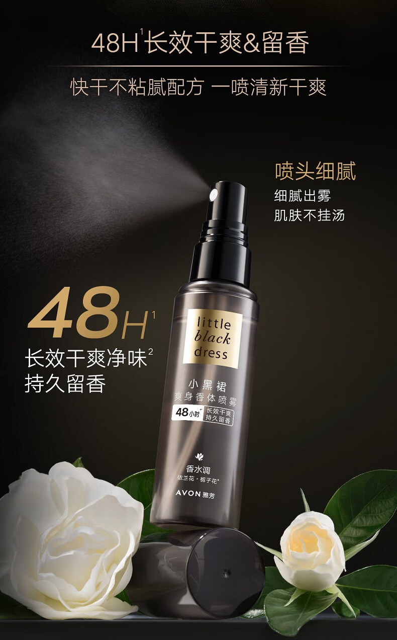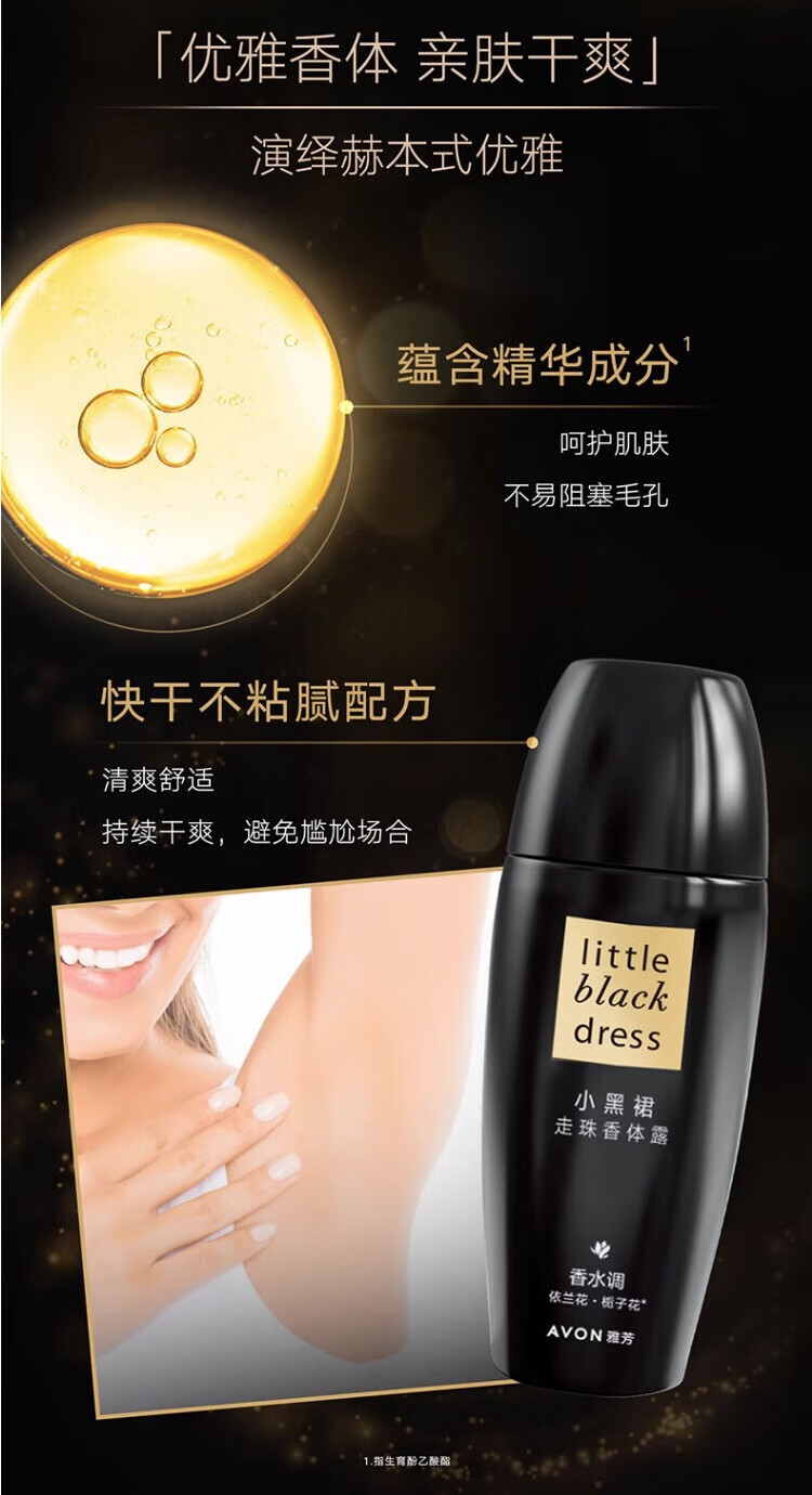 AVON antiperspirant roll-on liquid little black dress camellia fresh lasting light fragrance women's and men's roll-on armpit dry and odor-suppressing deodorant 2 bottles classic little black dress x2 bottles 40ml