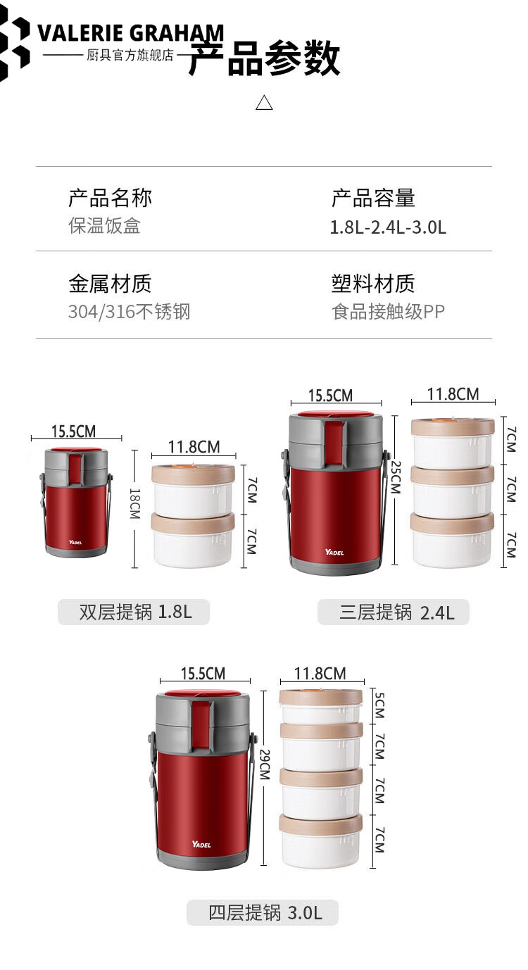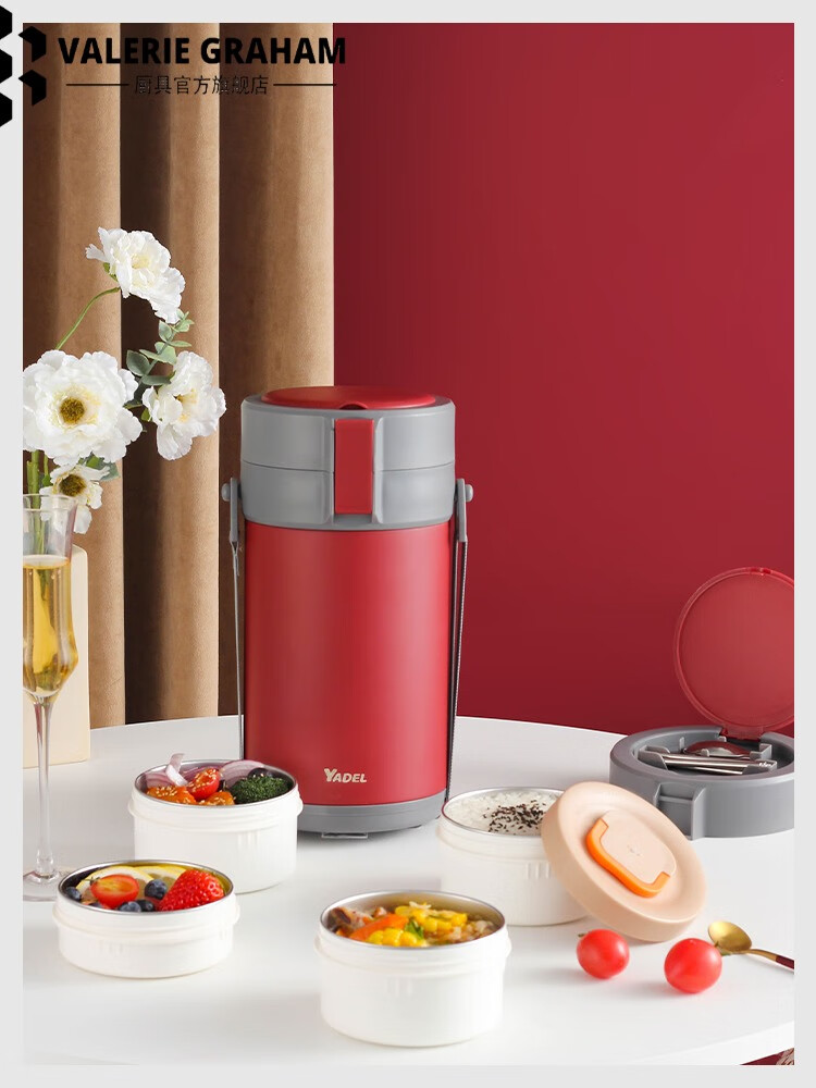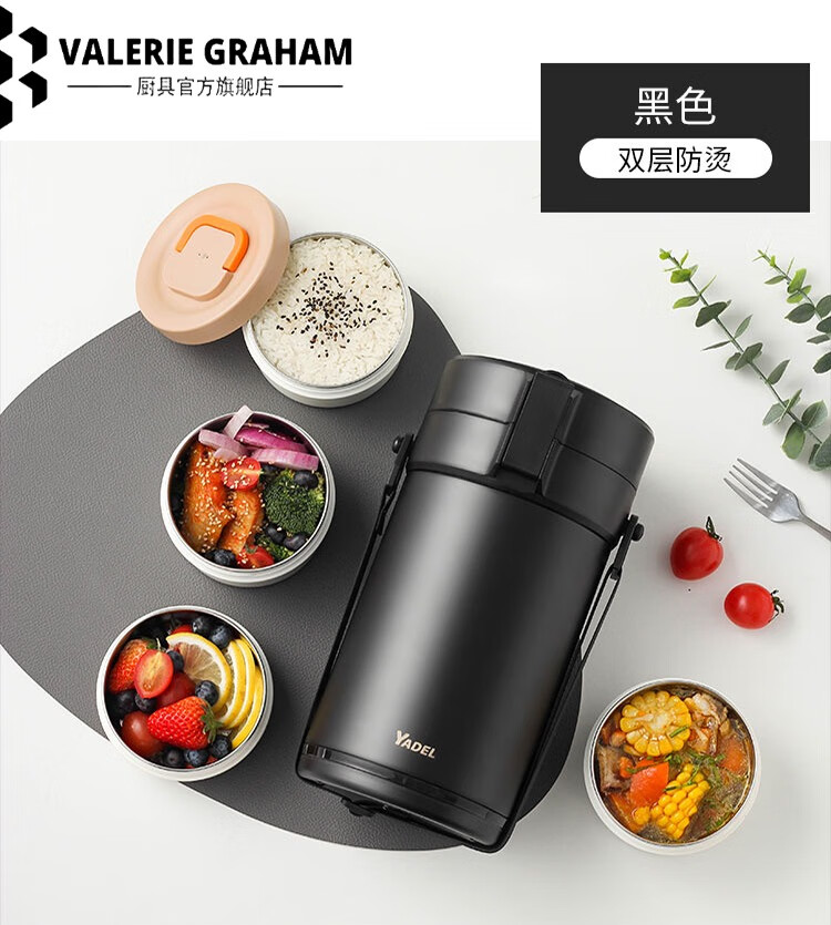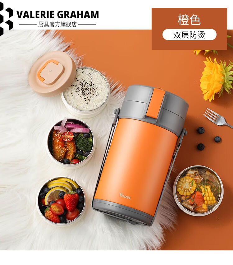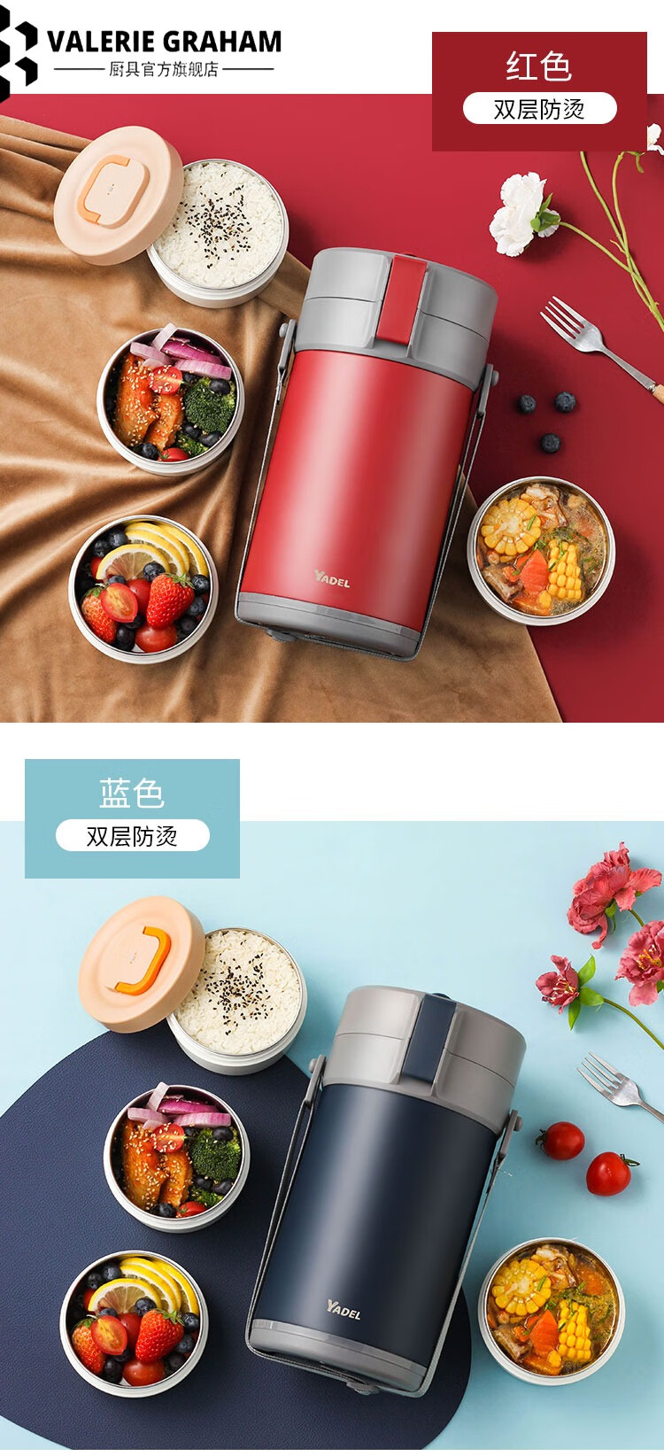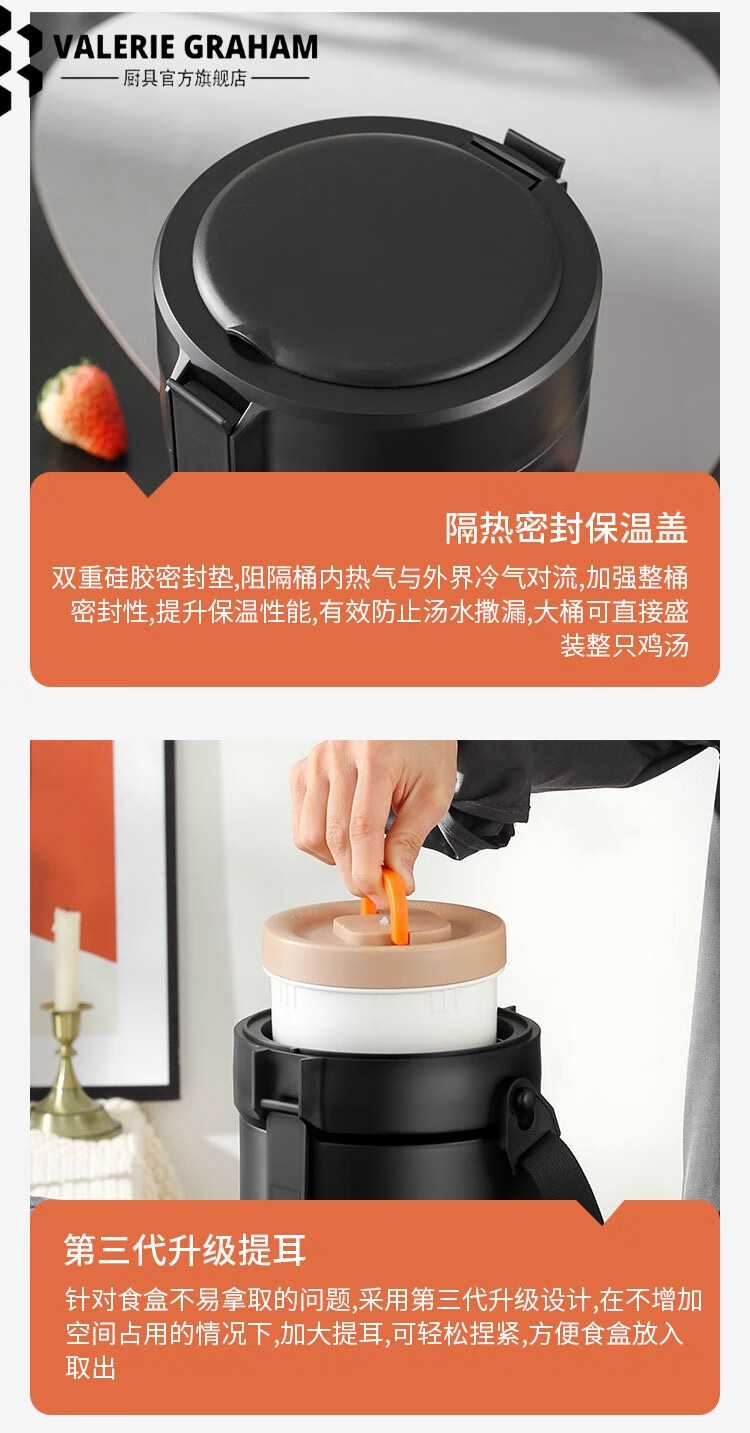 VALERIE GRAHAM German imported quality 1 insulated meal 1 box multi-layer portable stainless steel extra long insulated bucket for office workers and households (316 upgraded model) 2.4L 3-layer insulated bag + H