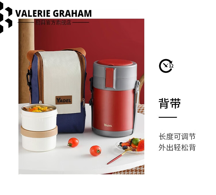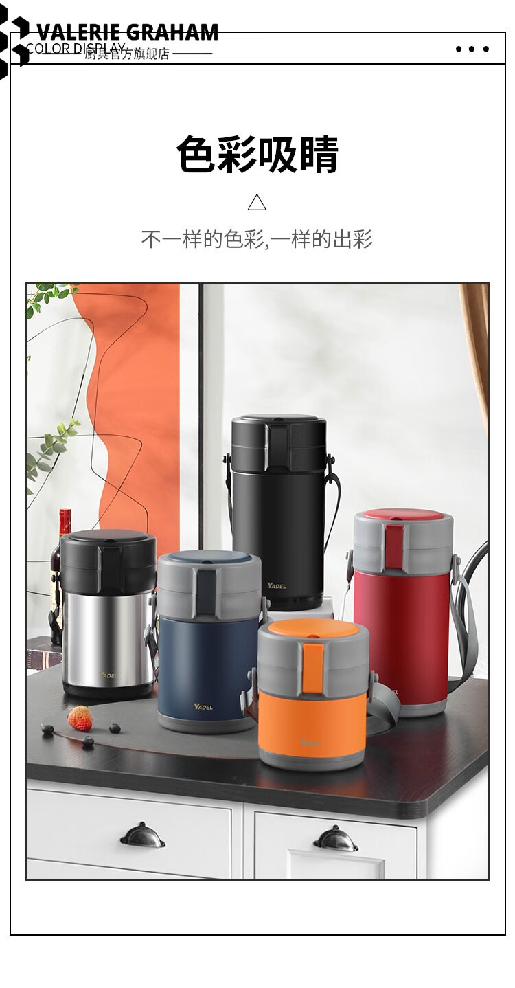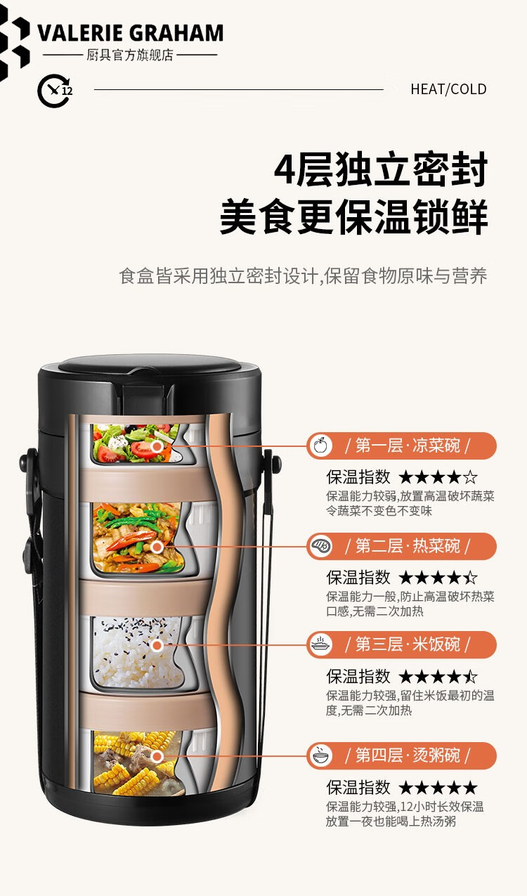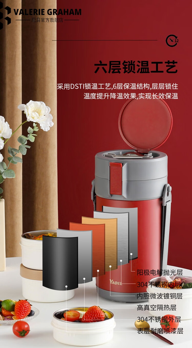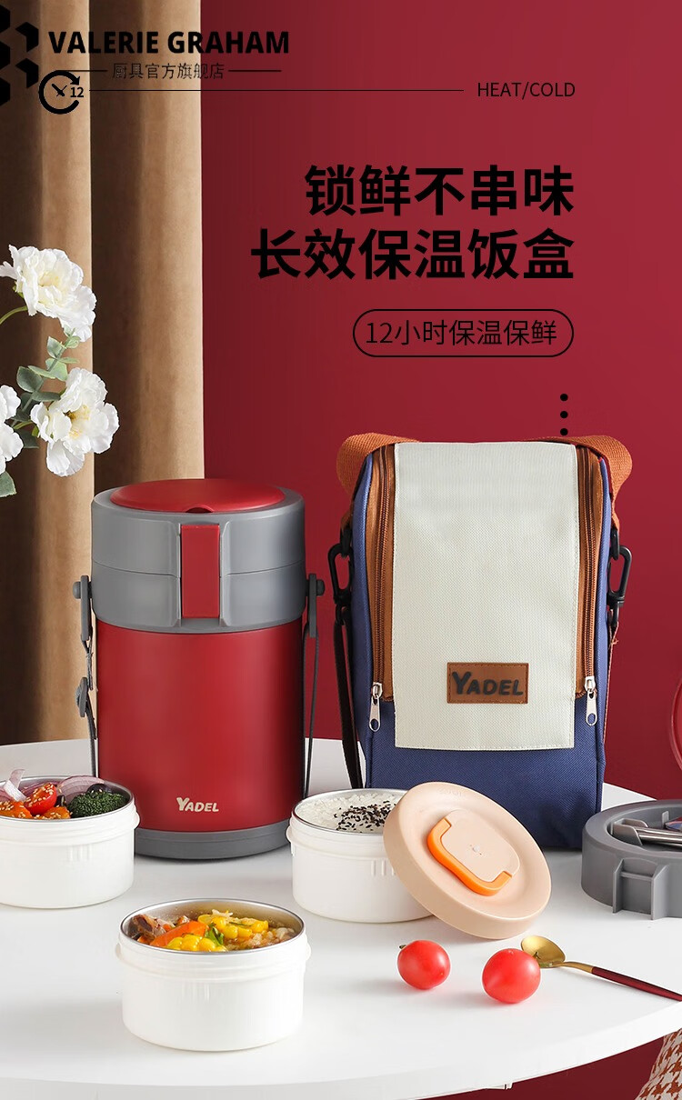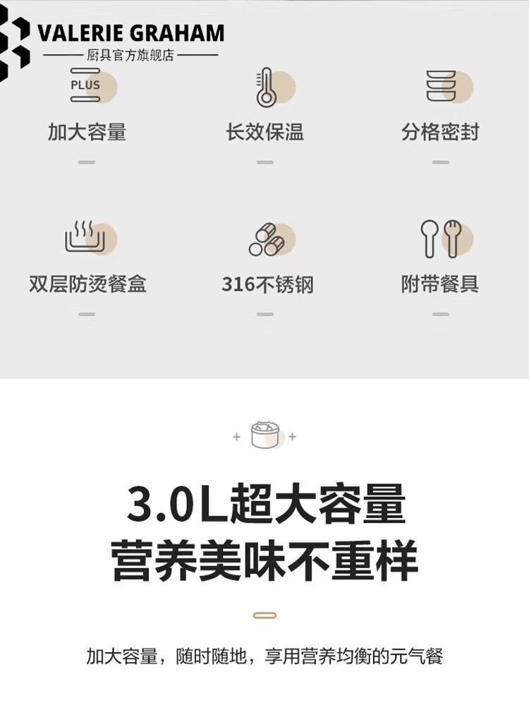 VALERIE GRAHAM German imported quality 1 insulated meal 1 box multi-layer portable stainless steel extra long insulated bucket for office workers and households (316 upgraded model) 2.4L 3-layer insulated bag + H