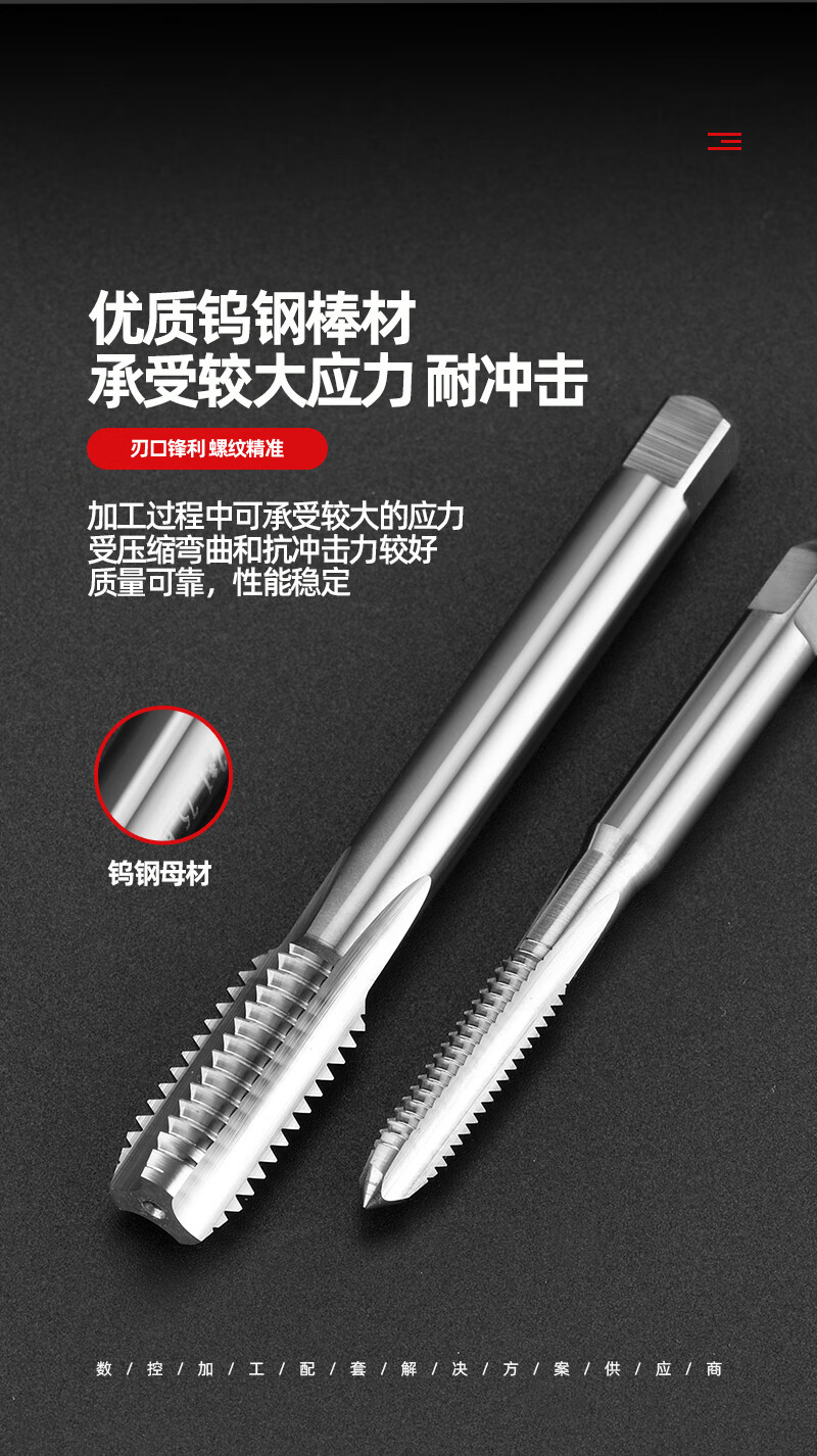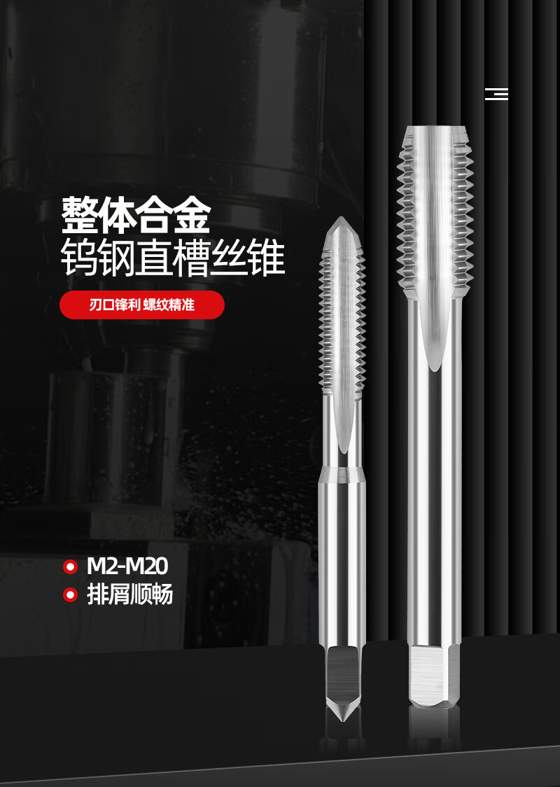 Tungsten steel wire tapping hard material plus hard super hard tapping quenched black steel straight groove carbide tap M4M5M6M8M10M12 M6*1