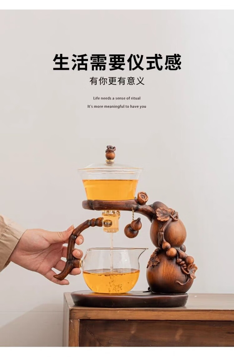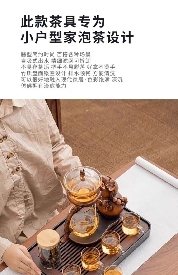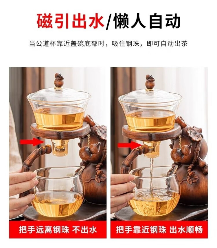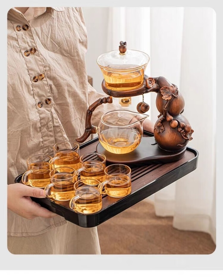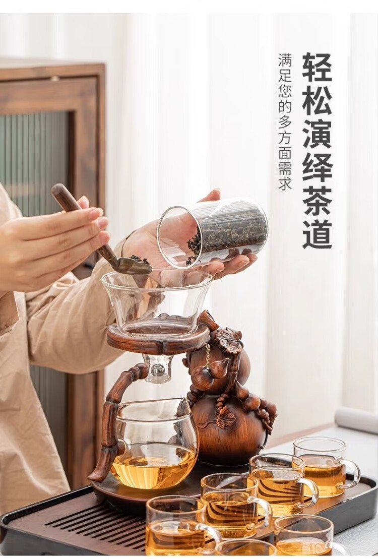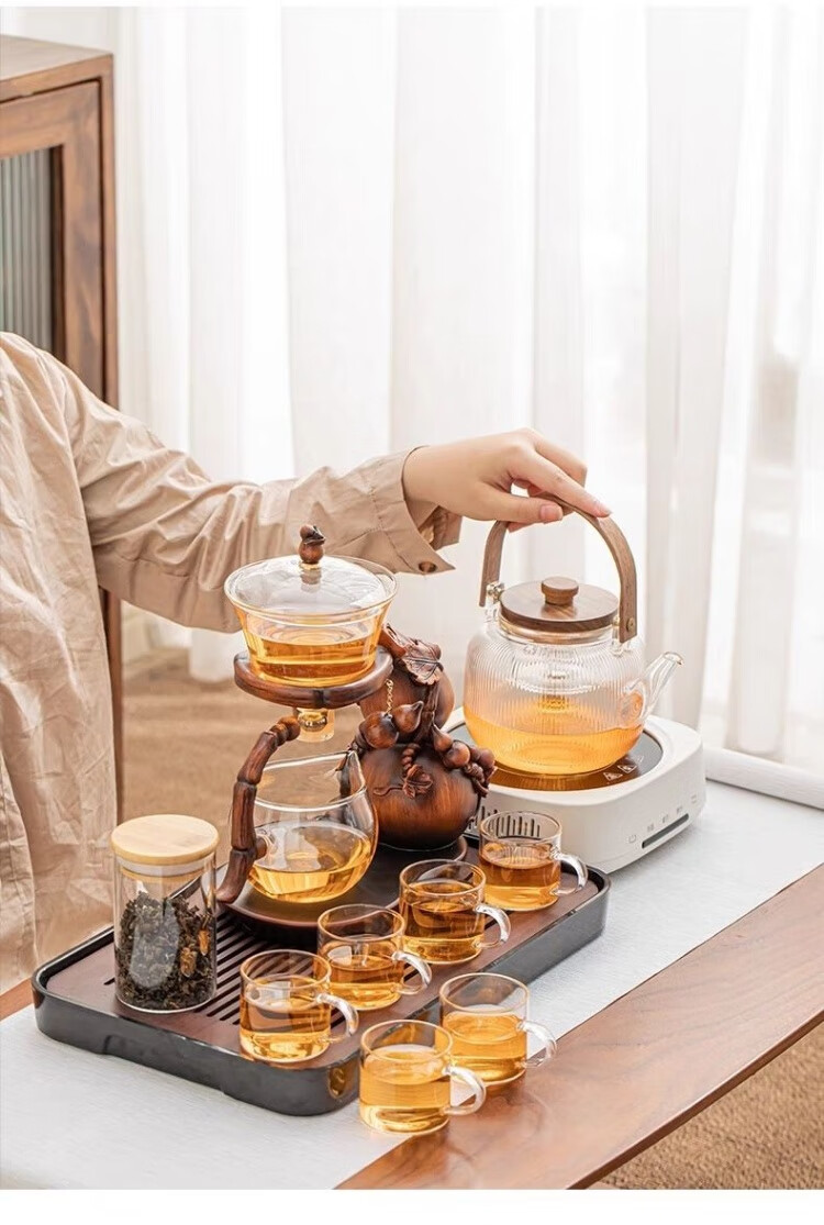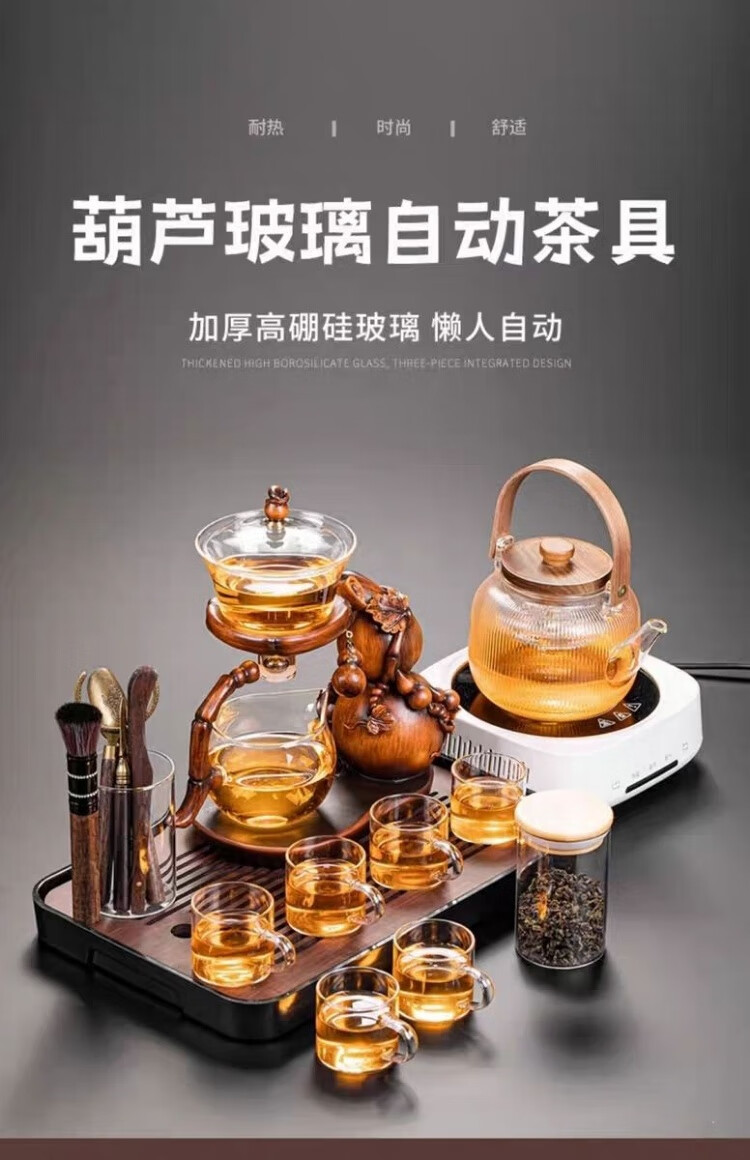 Junzhuang's new gourd glass automatic tea set set for home lazy magnetic induction teapot tea making artifact kung fu tea cup new gourd tea set