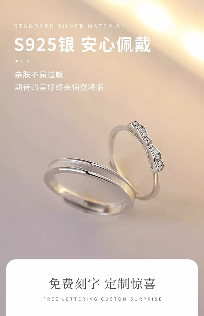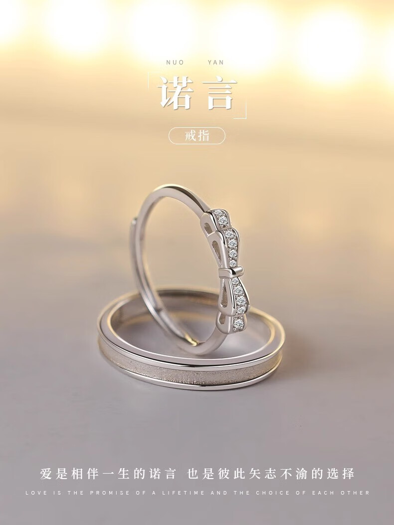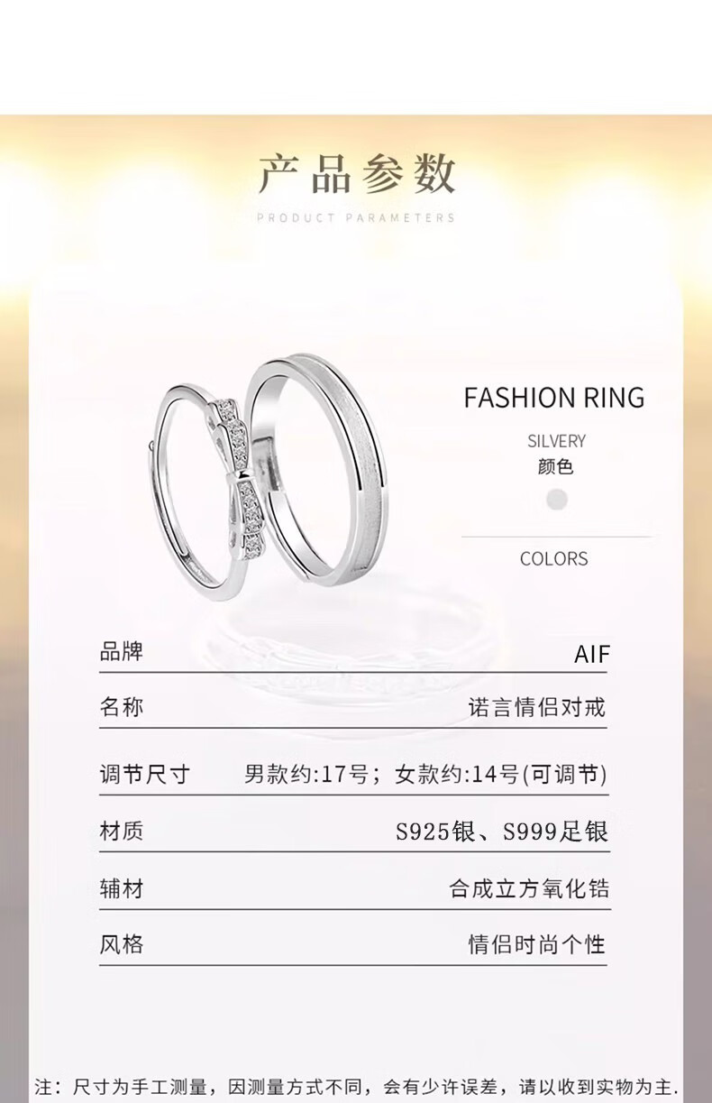 AIF Promise 999 Pure Silver Couple Ring Female and Male Couple Ring Bell Jiujiu Valentine’s Day Birthday Gift for Girlfriend 925 Silver Pair of Rings + Brand Gift Box/Shipping from Qicang