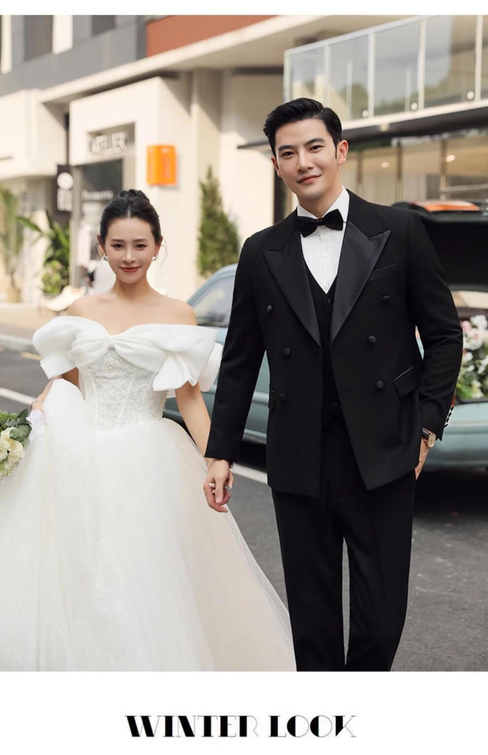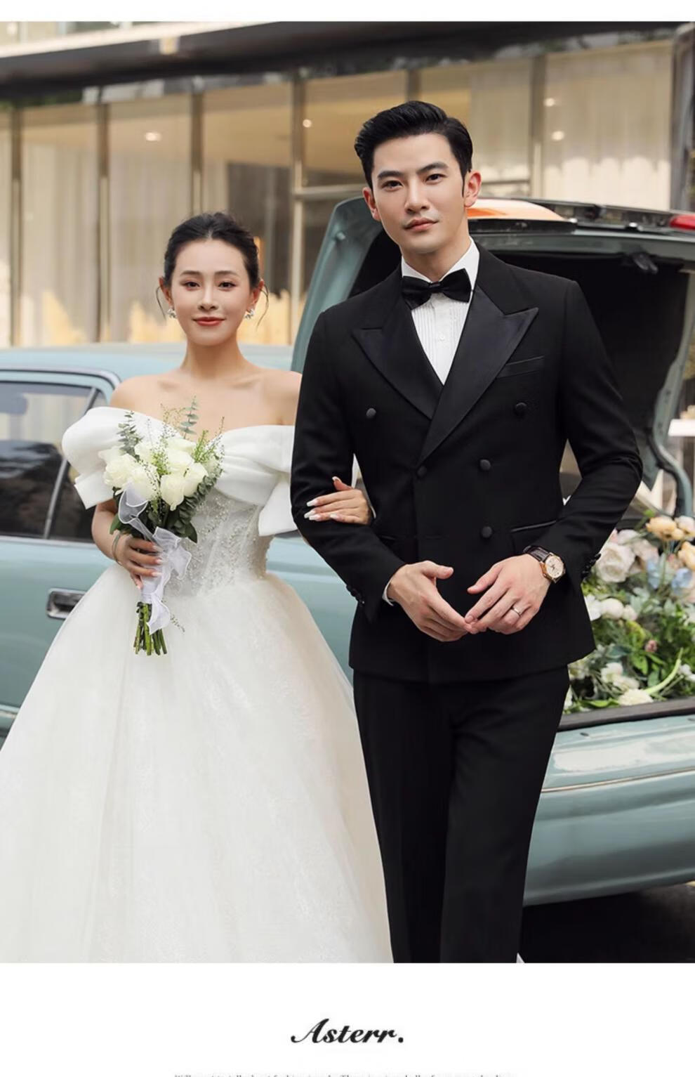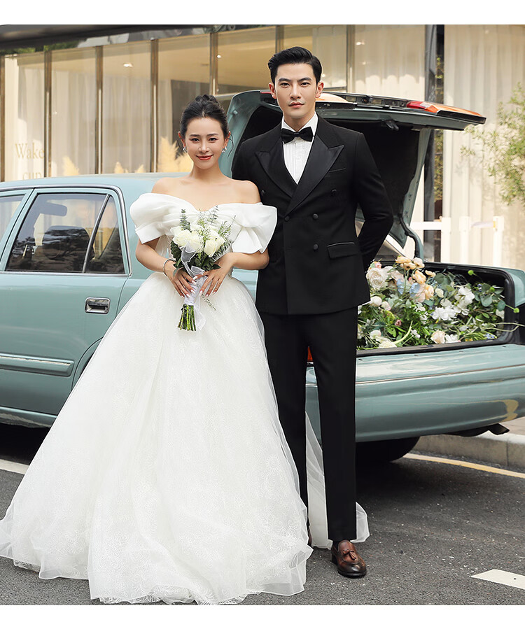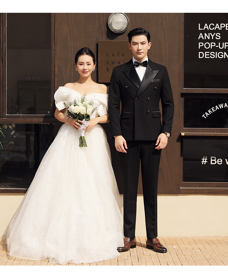 ROMON Tuxedo Dress Groom Wedding Suit Men's British Double-breasted Slim Suit Men's Three-piece Suit 2503 Double-breasted Black (Suit+Vest+Trousers XL