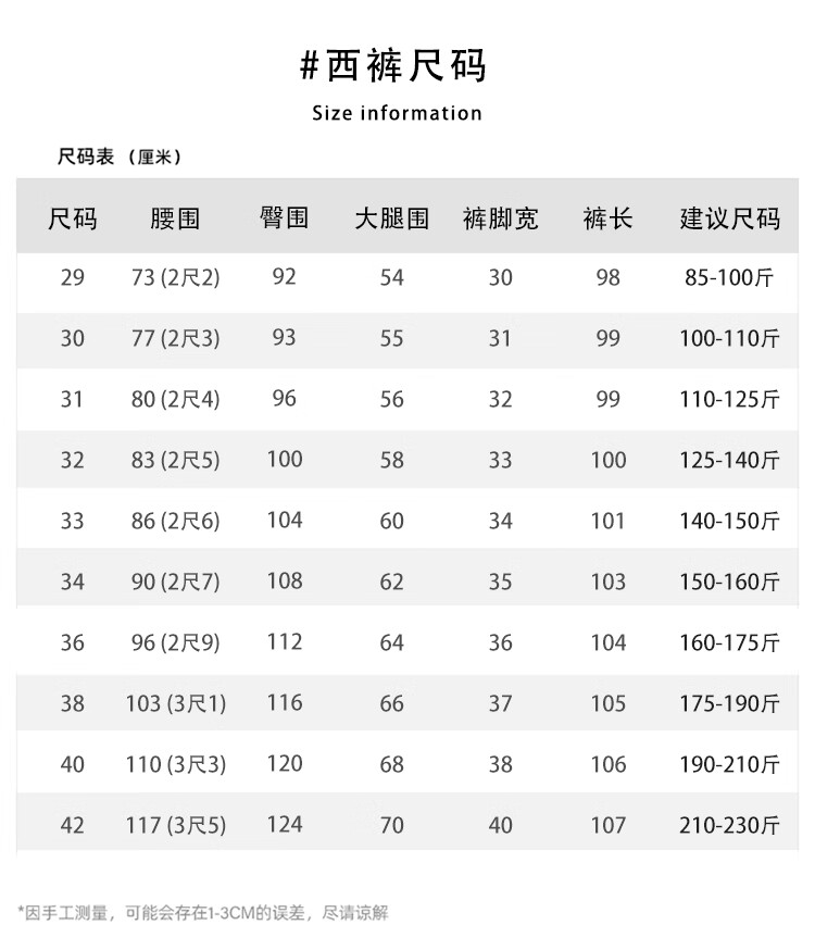 USA(inch) 28-30 30-32 32-34 34-38 38-42