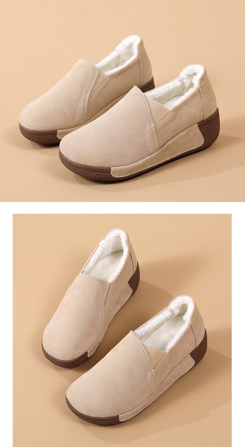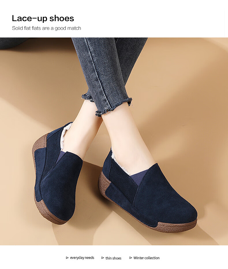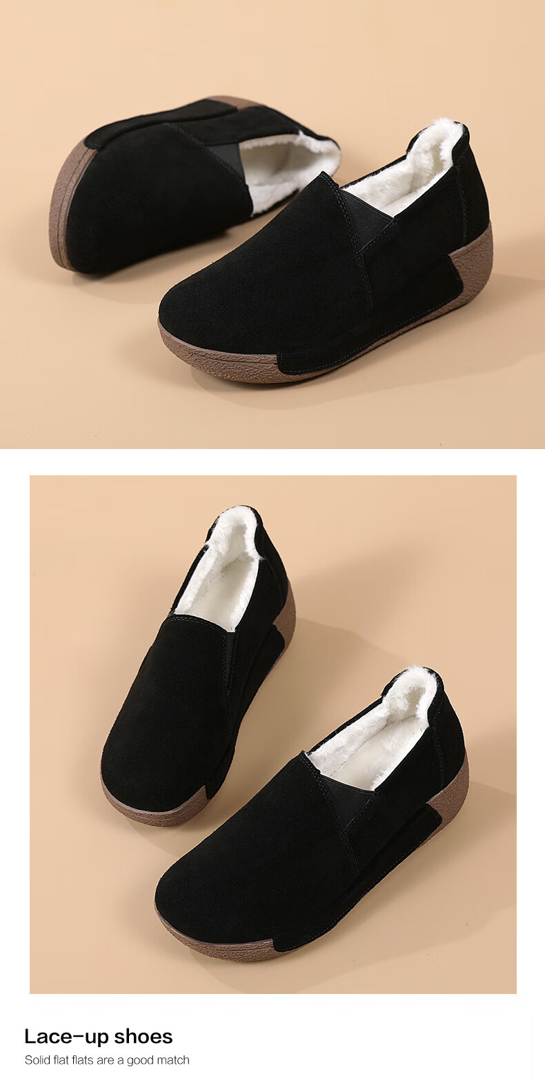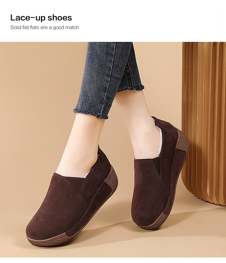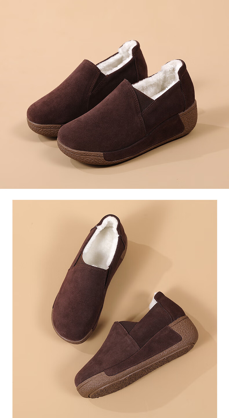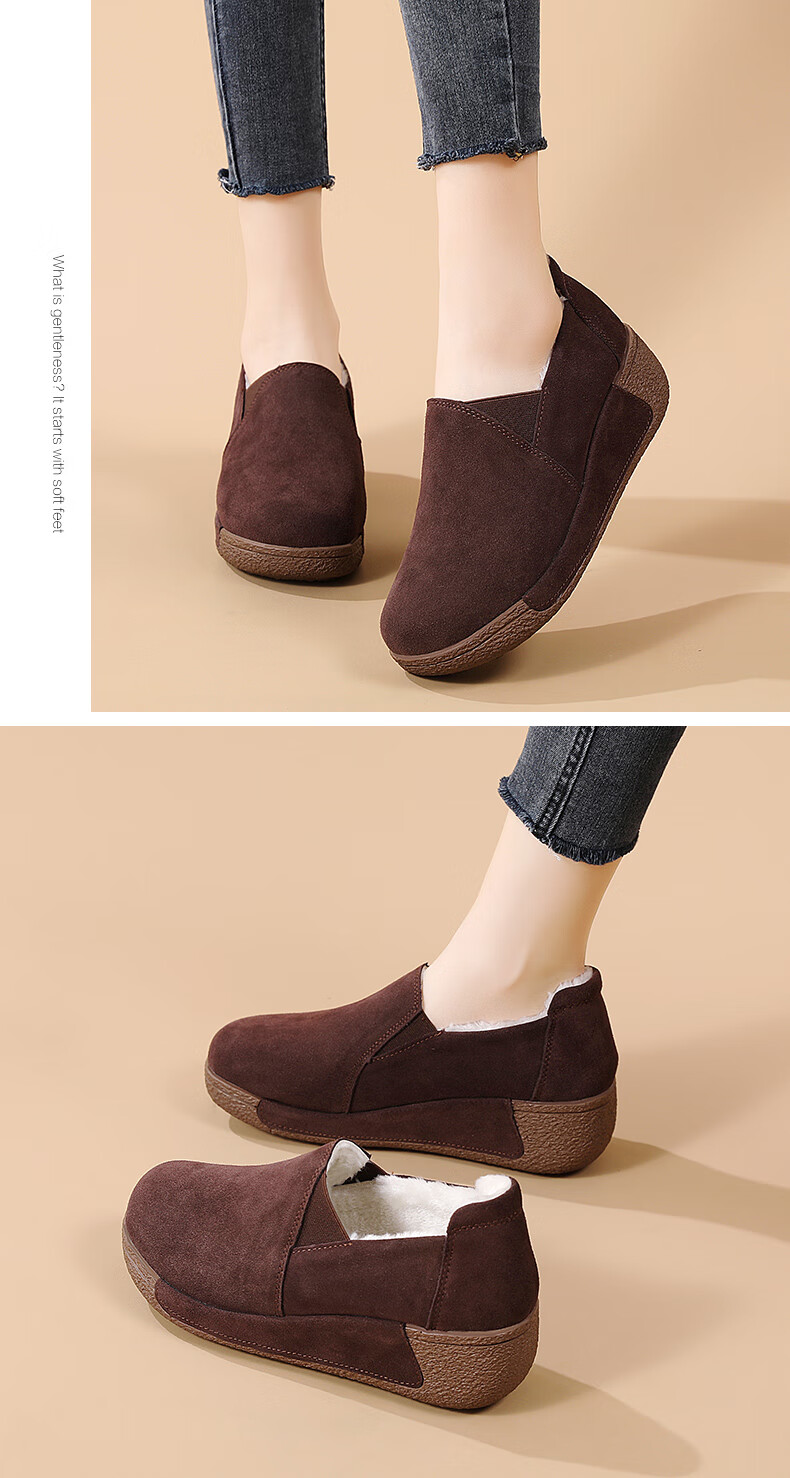 Woodpecker cotton shoes for women in winter, plus velvet and thickening to keep warm, slip-on women's shoes for pregnant women, casual wedge shoes for middle-aged and elderly mothers, coffee 37 standard sports code