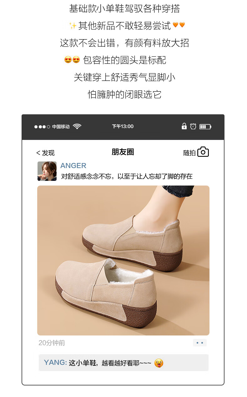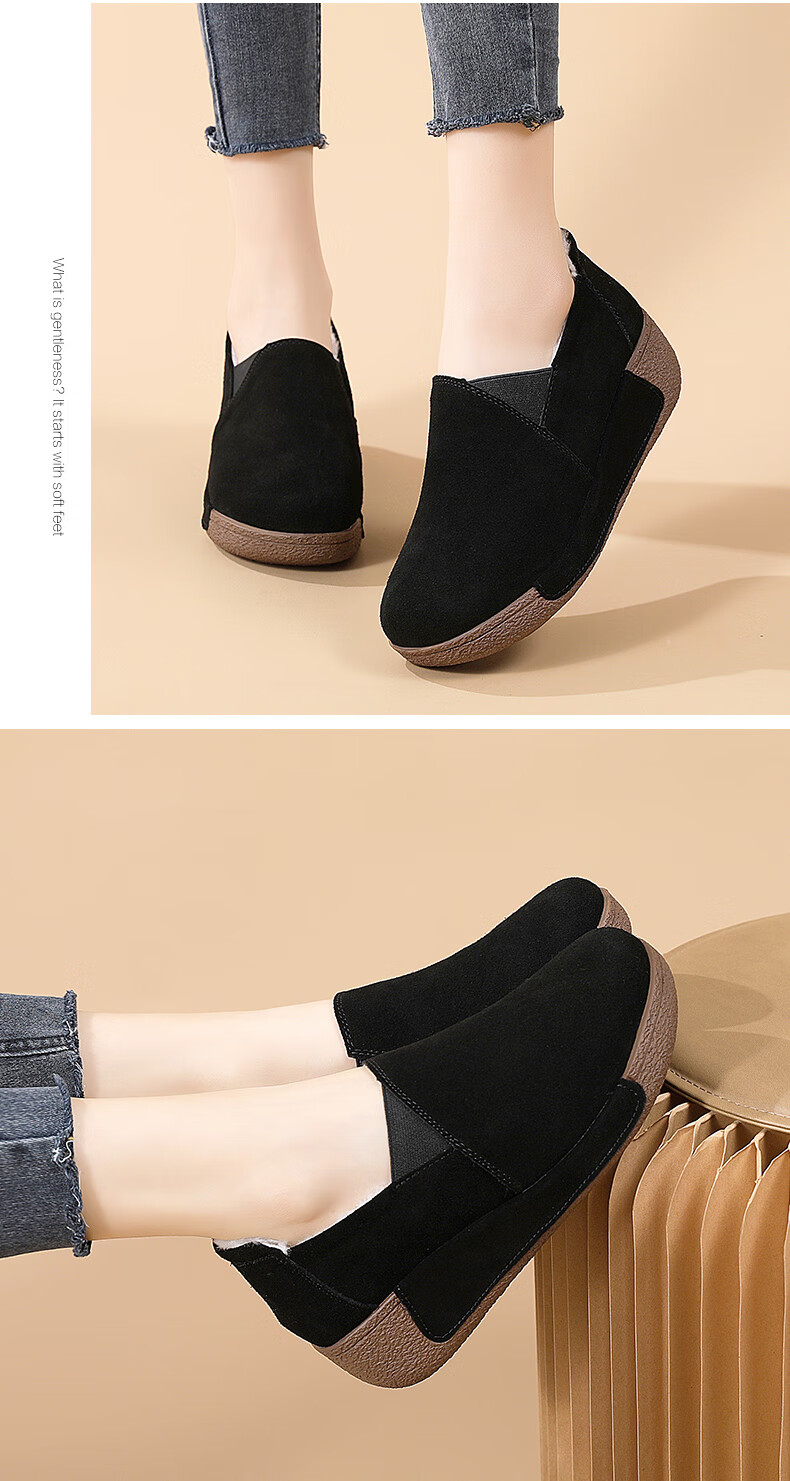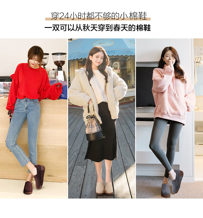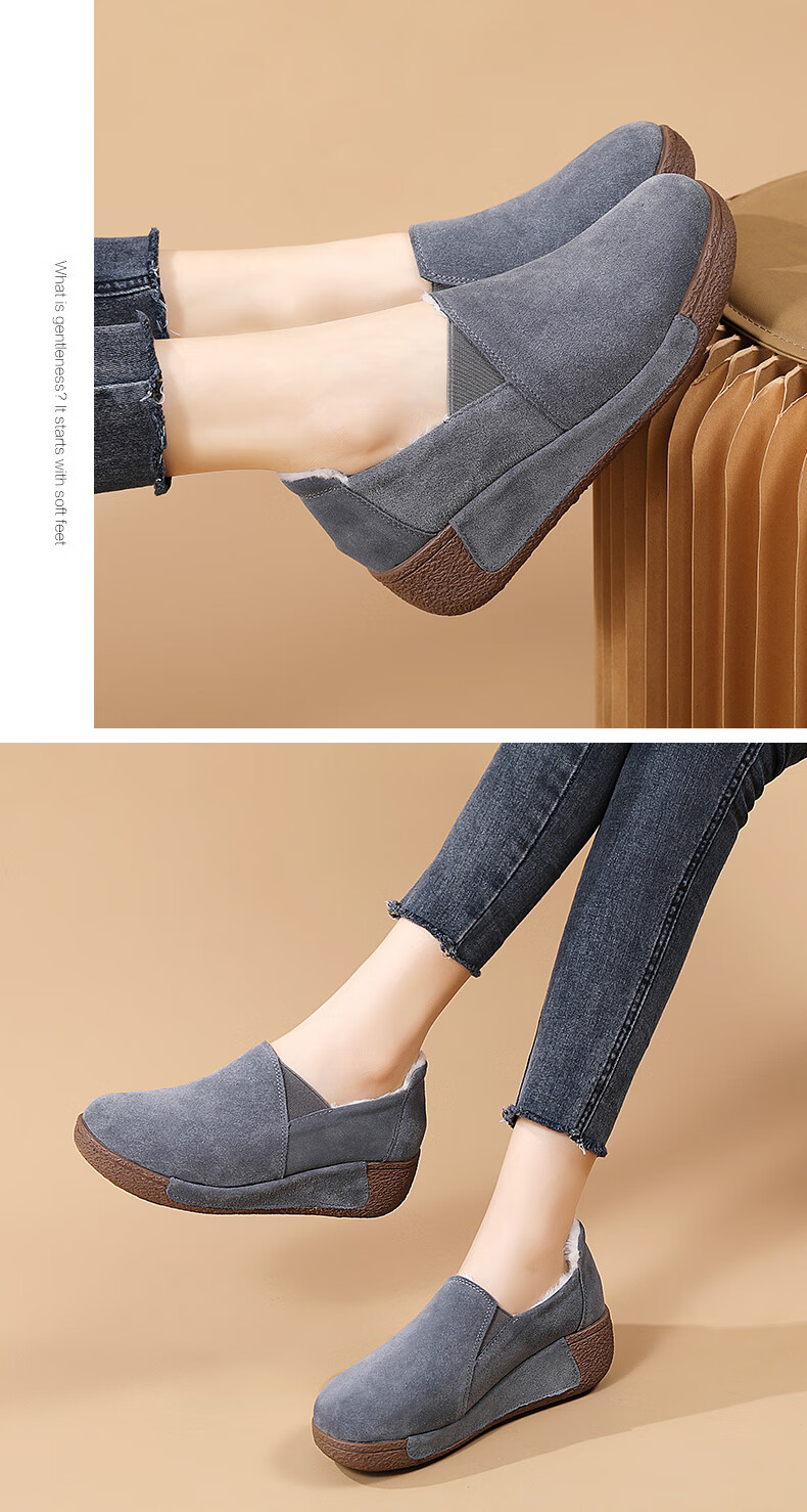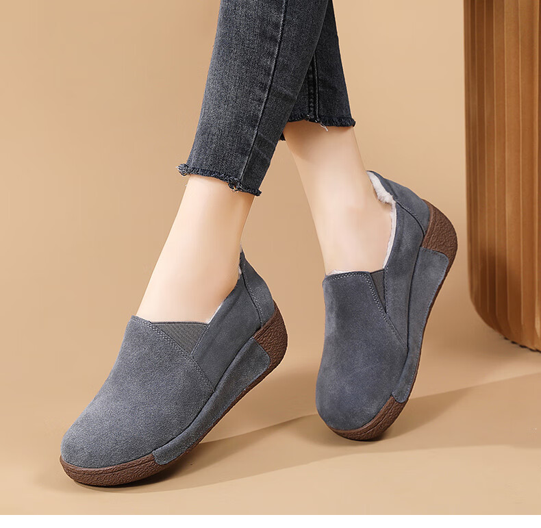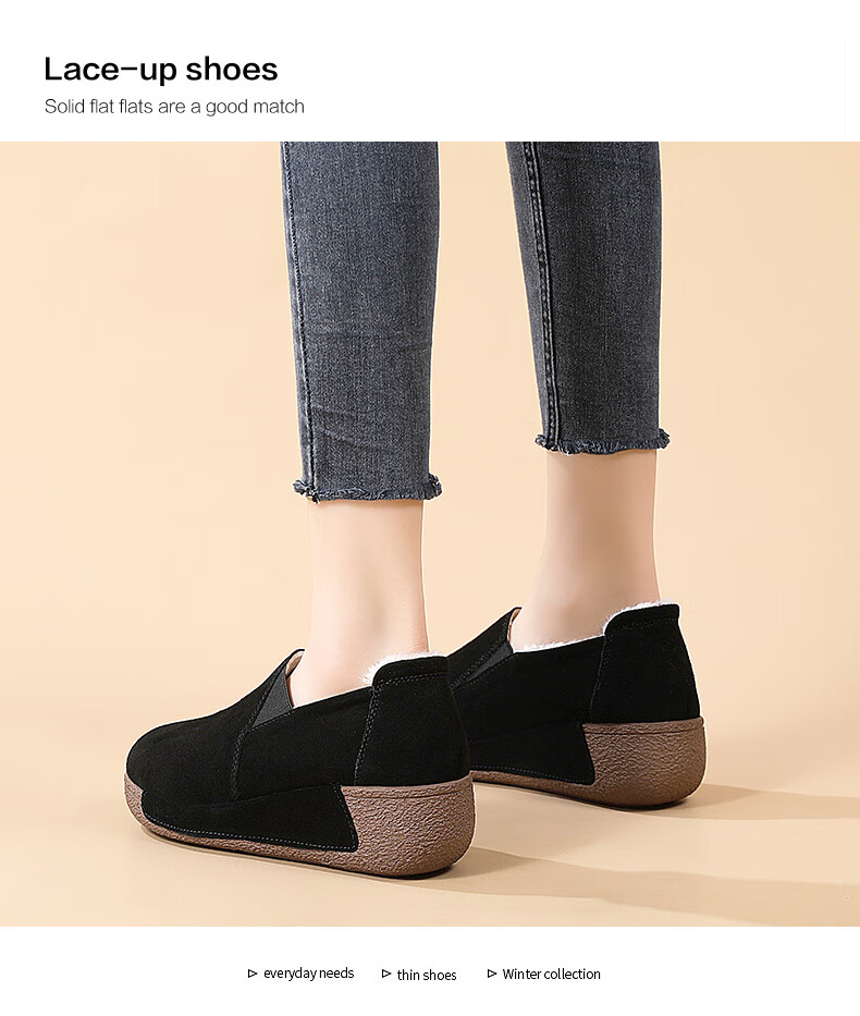 Woodpecker cotton shoes for women in winter, plus velvet and thickening to keep warm, slip-on women's shoes for pregnant women, casual wedge shoes for middle-aged and elderly mothers, coffee 37 standard sports code