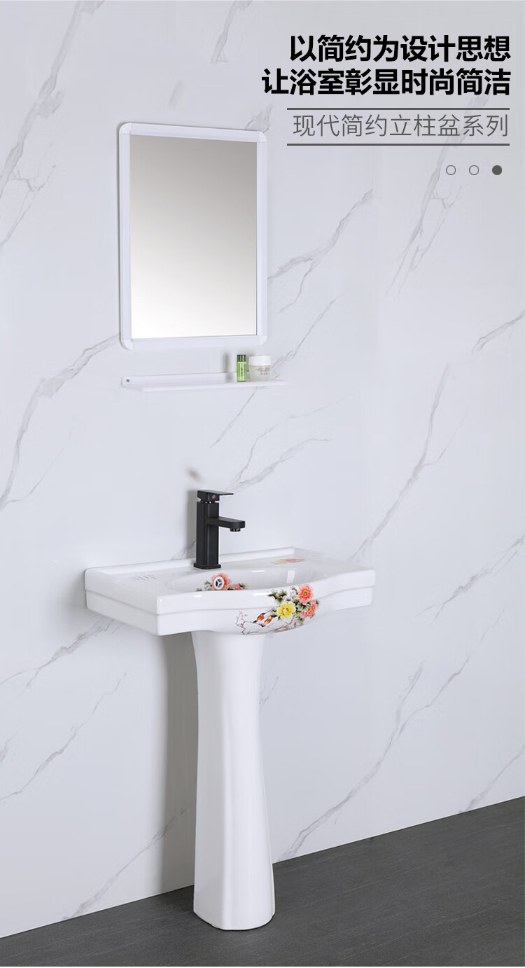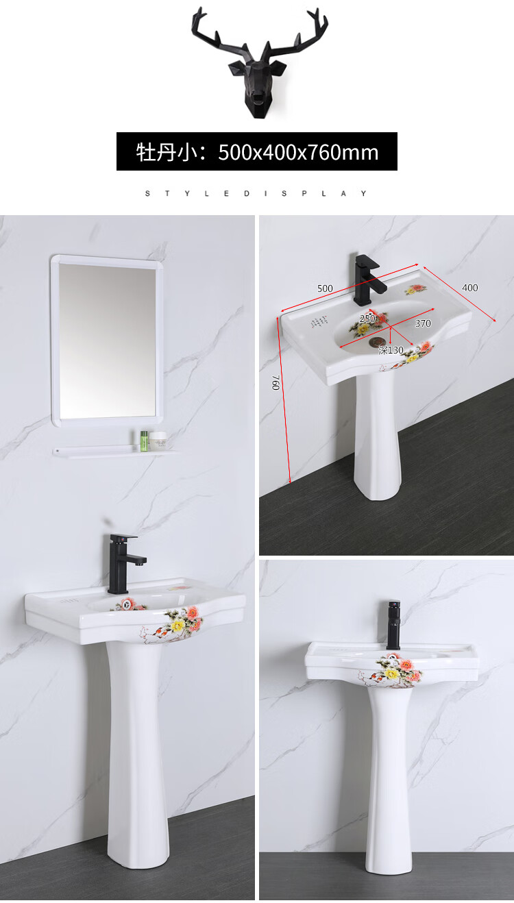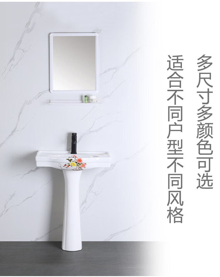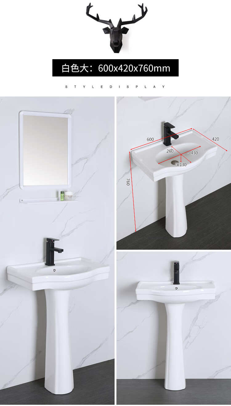 BOJUEROMA column wash basin small apartment bathroom triangular column basin integrated ceramic mini floor-standing wash basin balcony B type 65CM color column basin + faucet + square mirror