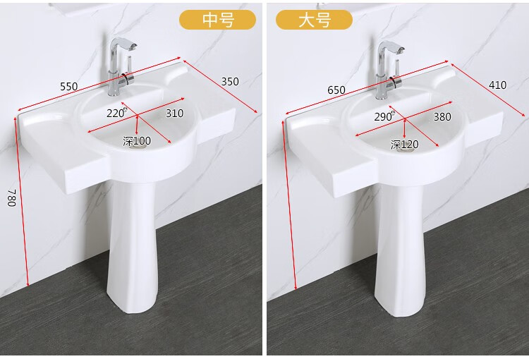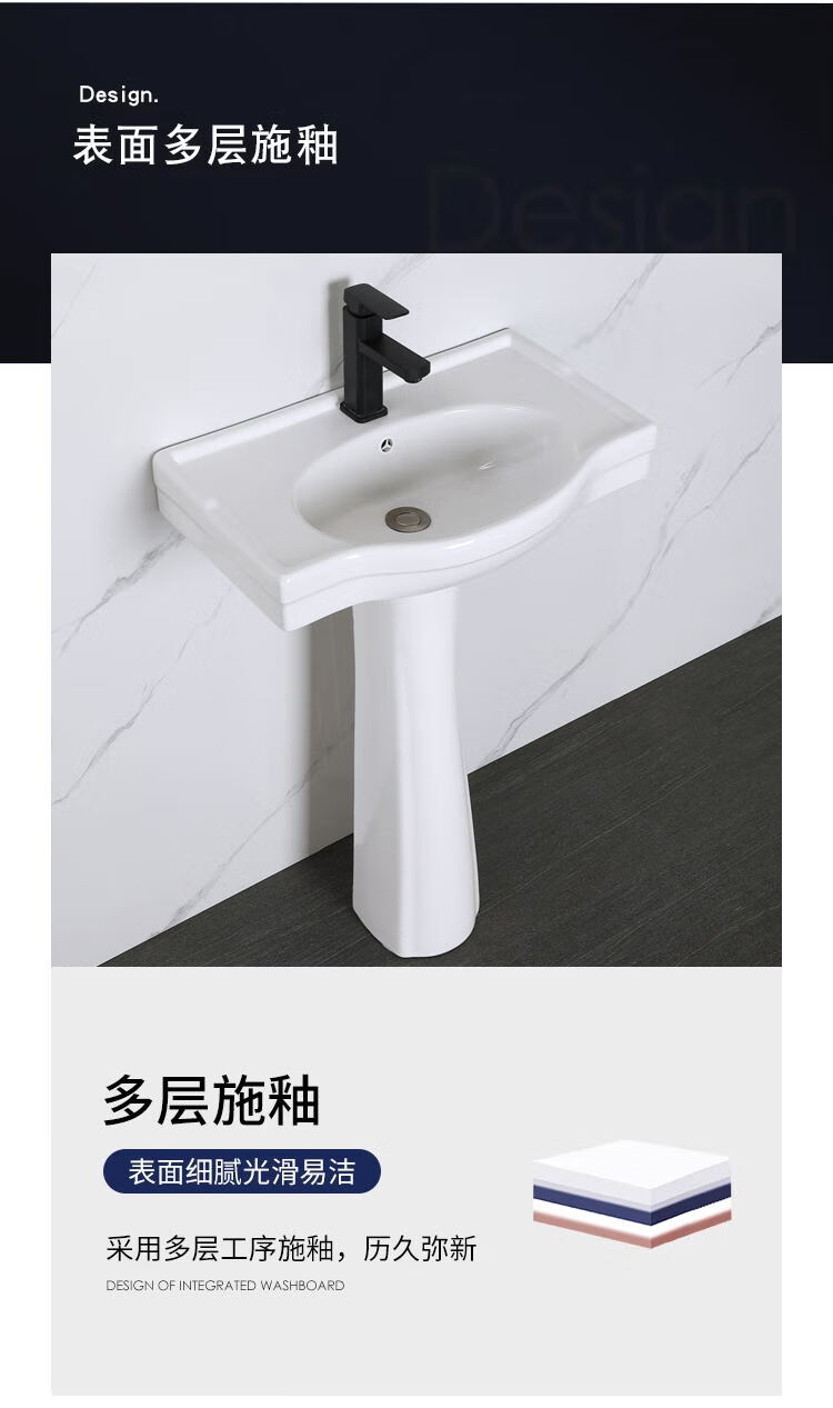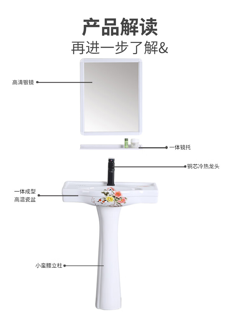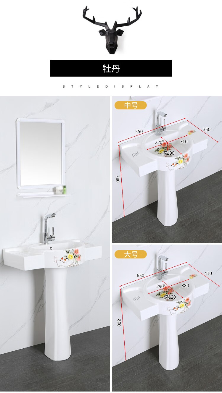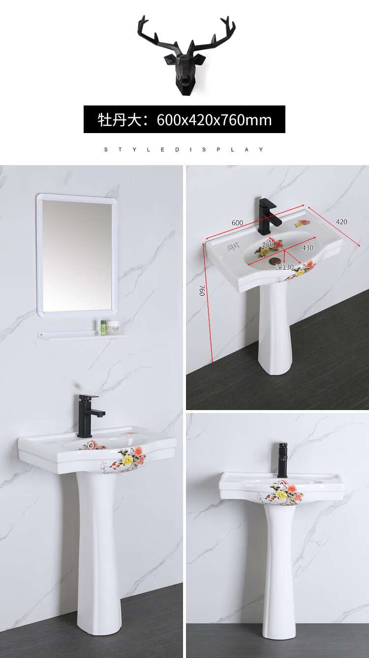 BOJUEROMA column wash basin small apartment bathroom triangular column basin integrated ceramic mini floor-standing wash basin balcony B type 65CM color column basin + faucet + square mirror