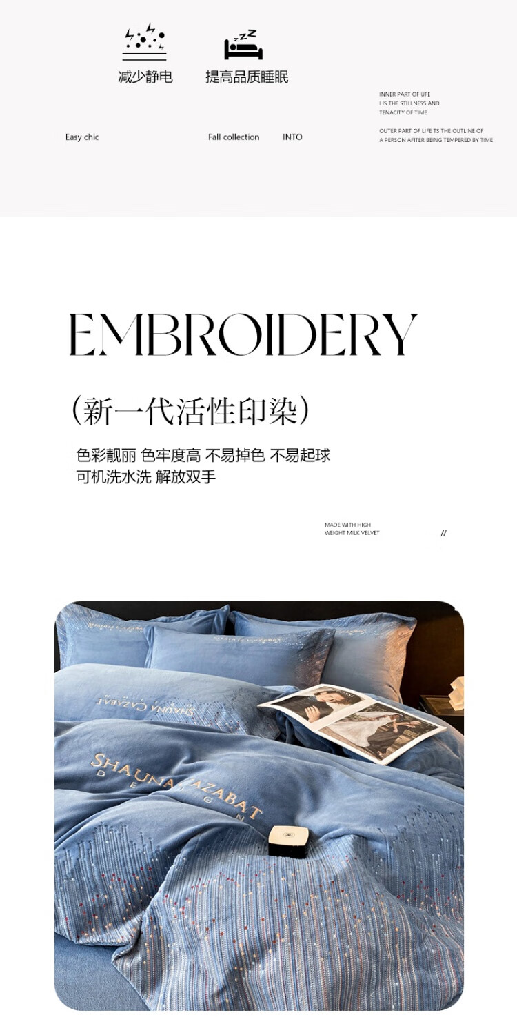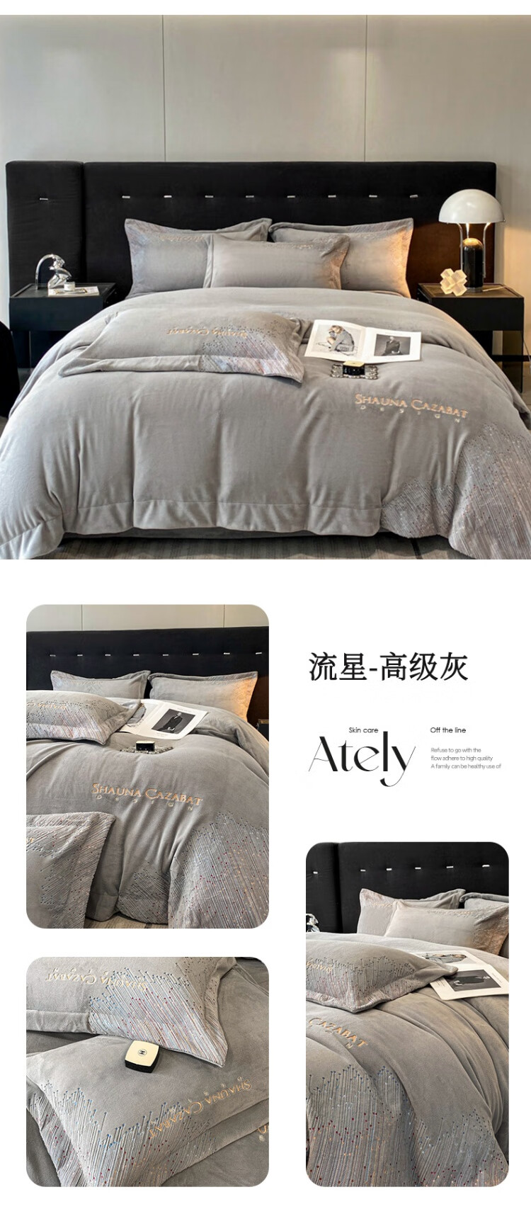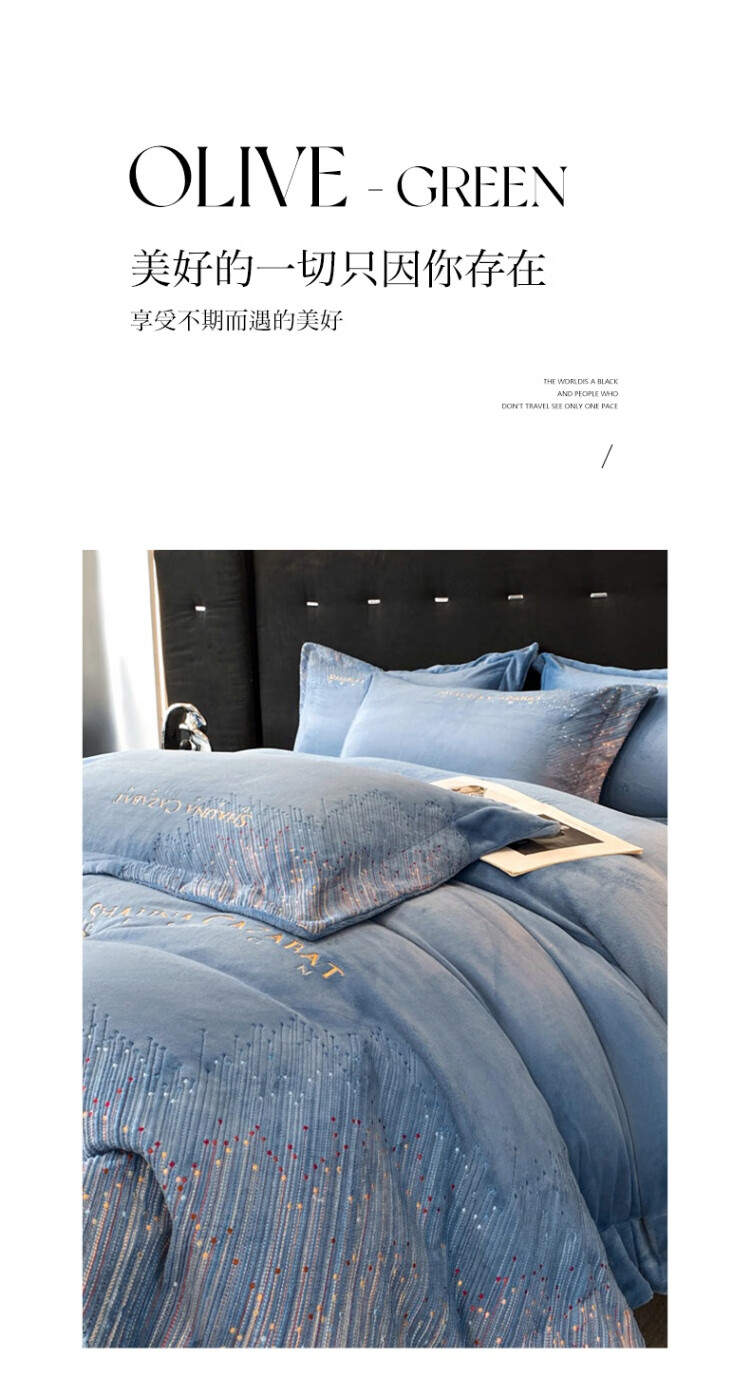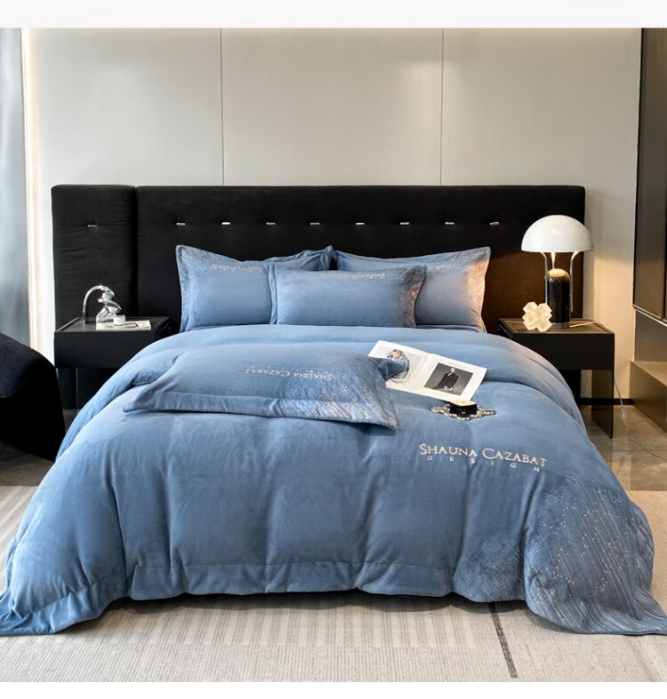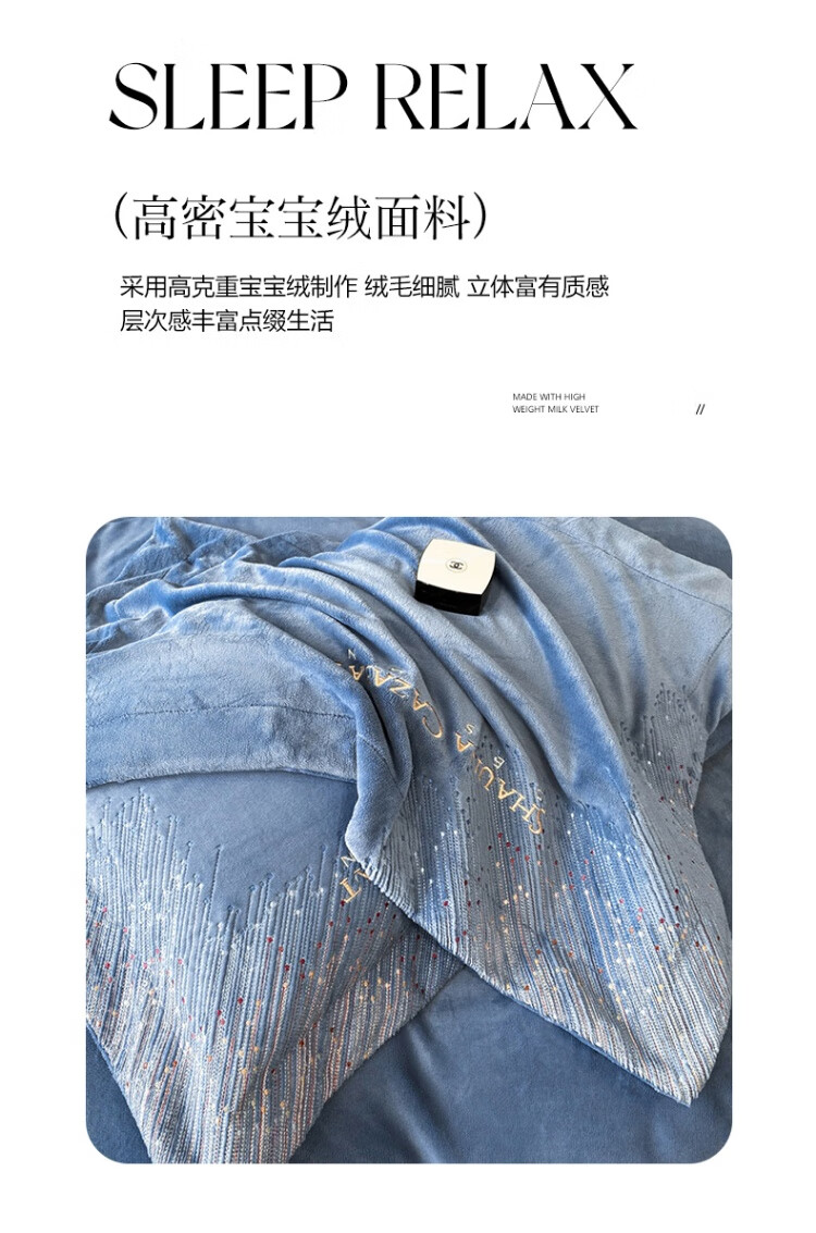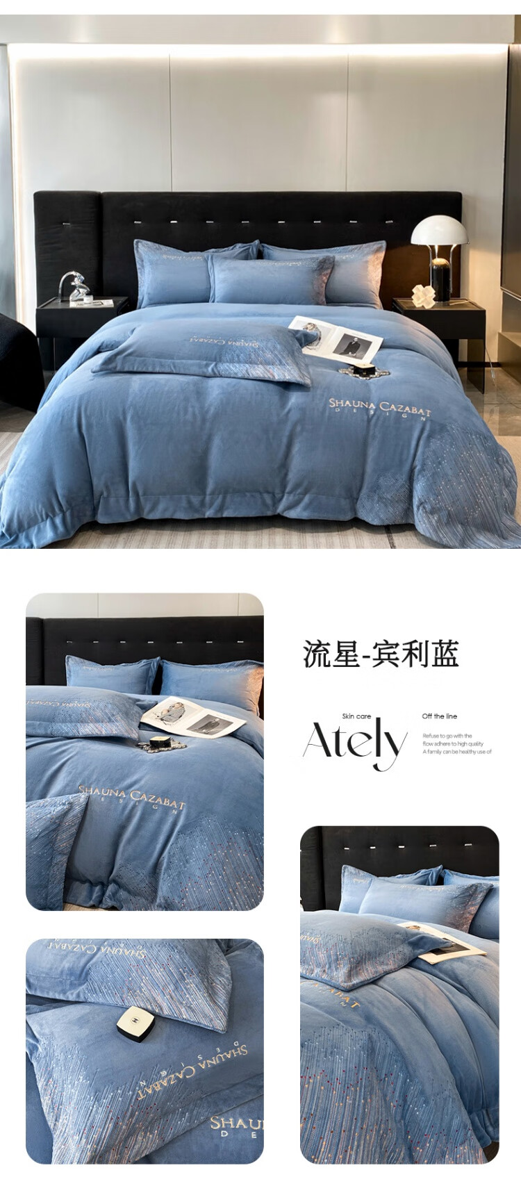 Mercury series autumn and winter light luxury milk velvet four-piece baby velvet thickened warm quilt cover embroidered bedding baby bed sheet supplies SR Meteor-Bentley Blue 2.0m bed sheet style four-piece quilt cover 220*240