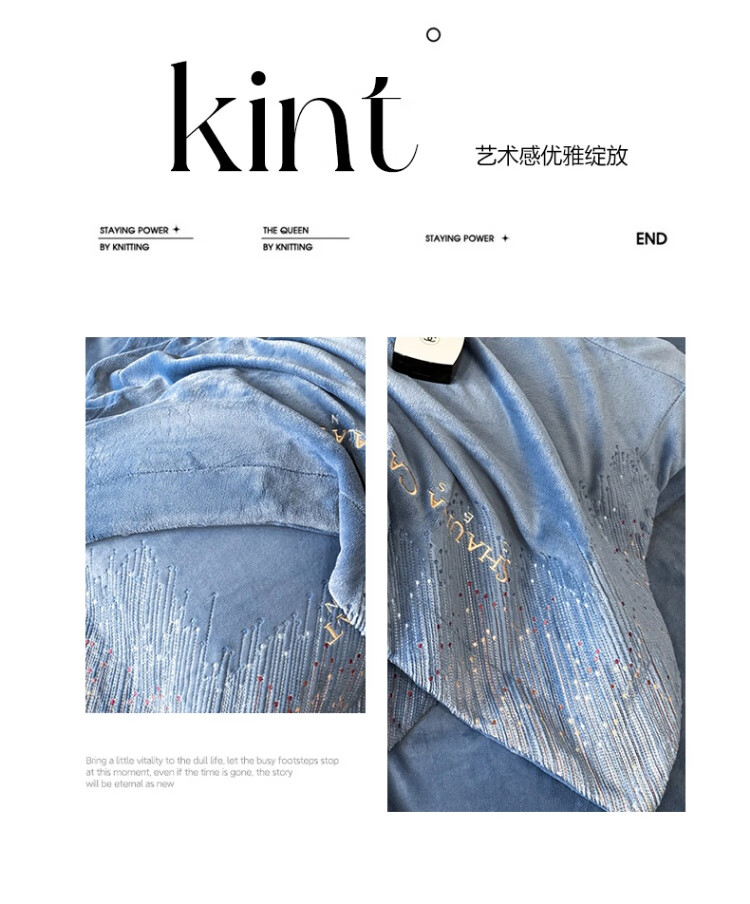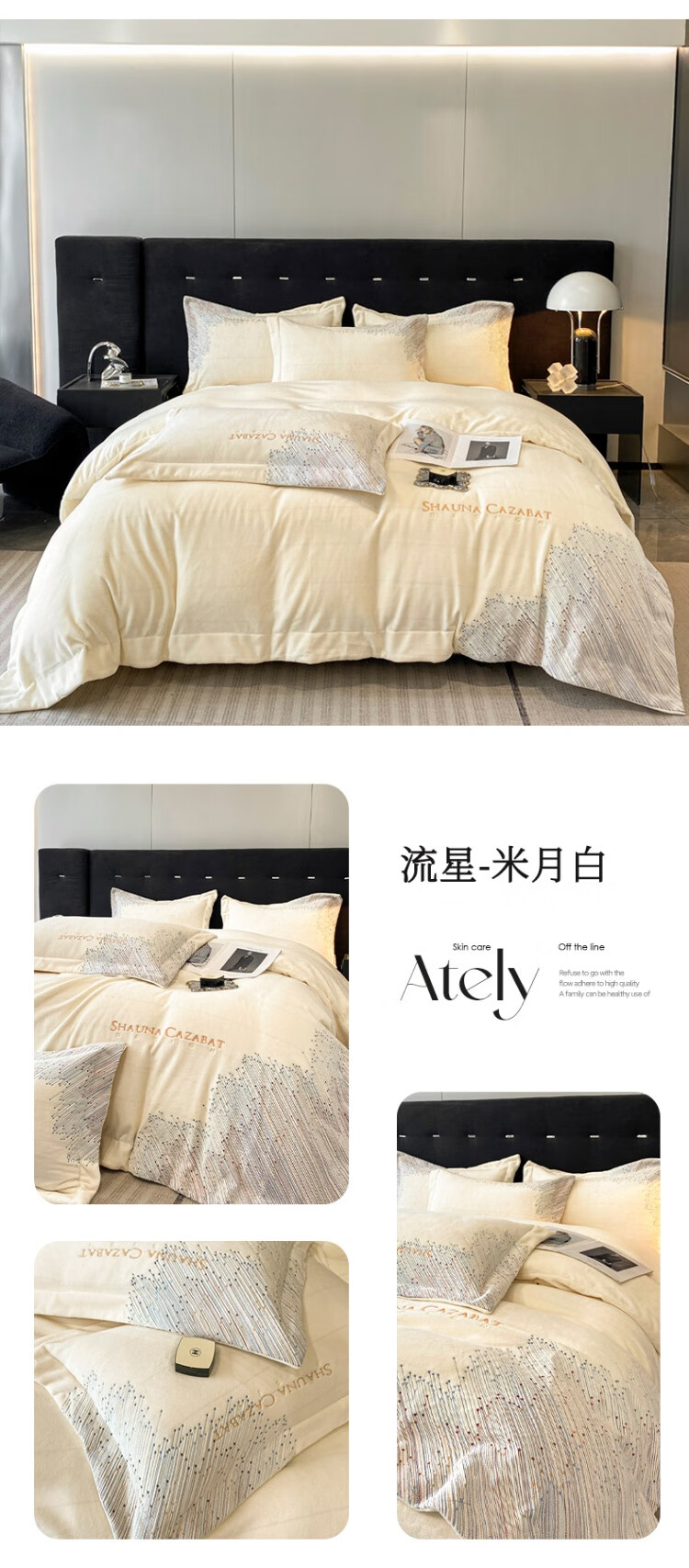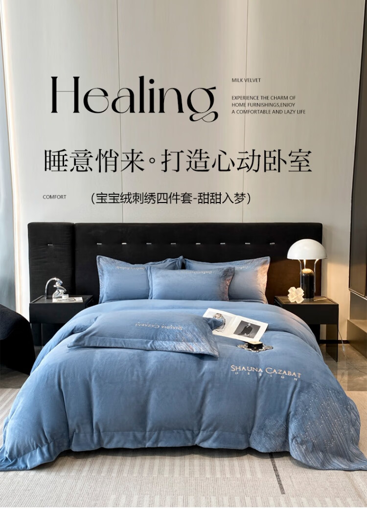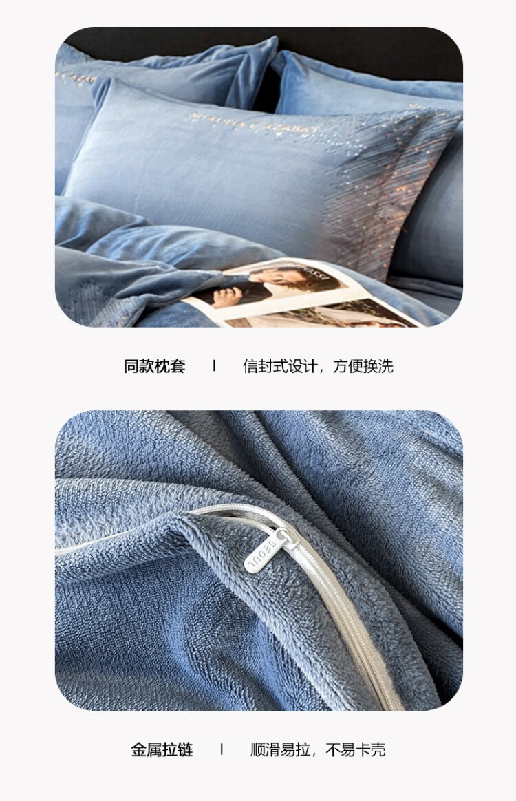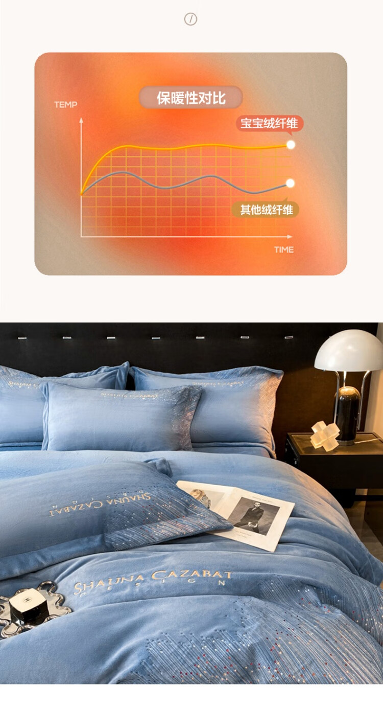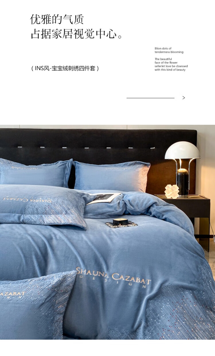 Mercury series autumn and winter light luxury milk velvet four-piece baby velvet thickened warm quilt cover embroidered bedding baby bed sheet supplies SR Meteor-Bentley Blue 2.0m bed sheet style four-piece quilt cover 220*240