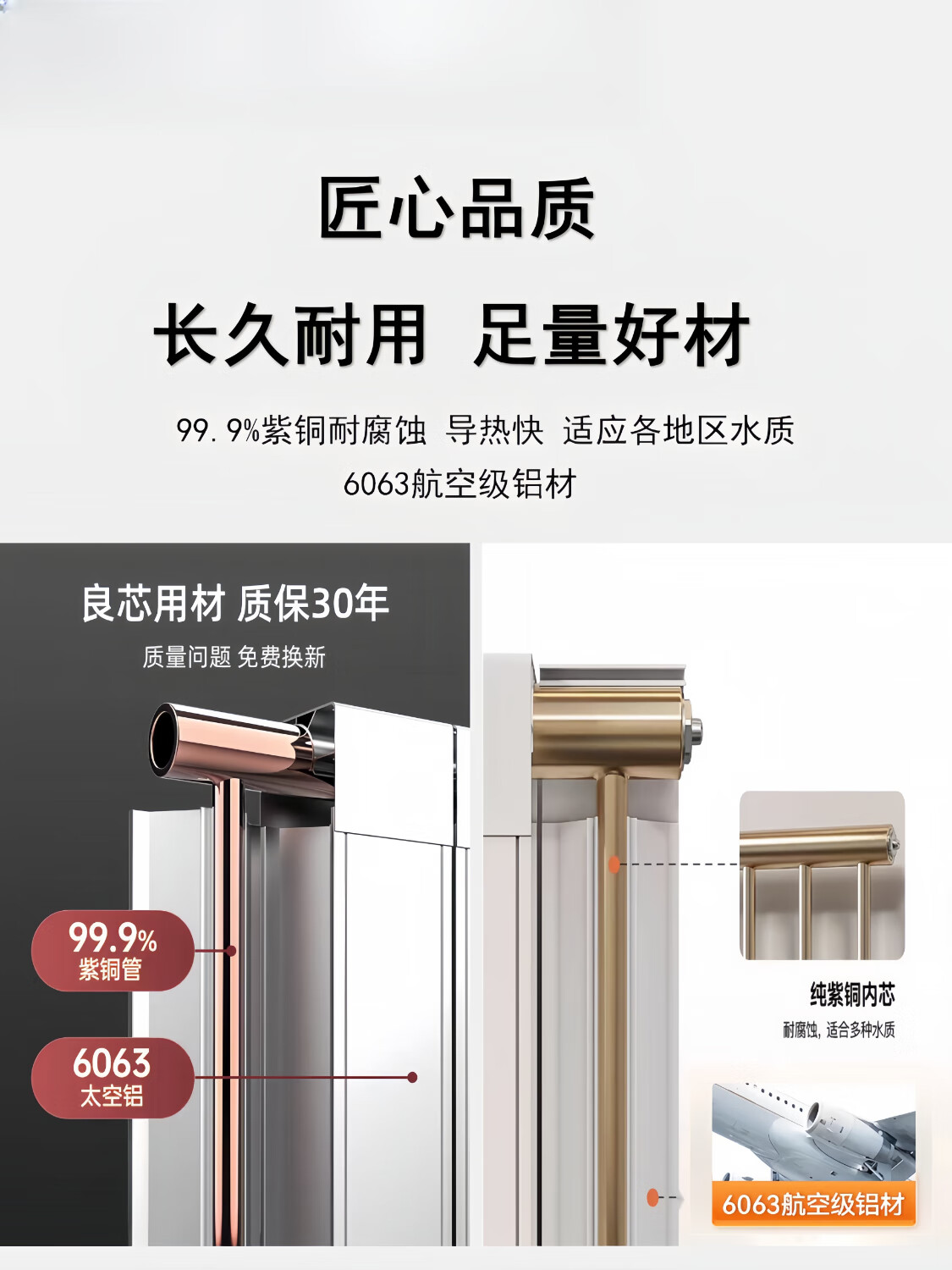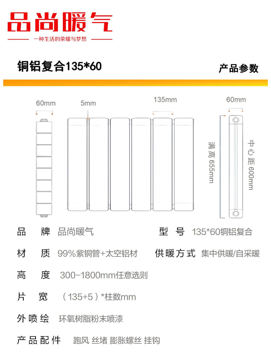 Pinshang copper-aluminum composite heating art radiator copper-aluminum composite radiator radiator matt white (single piece price, starting price of three pieces) height 0.6 meters