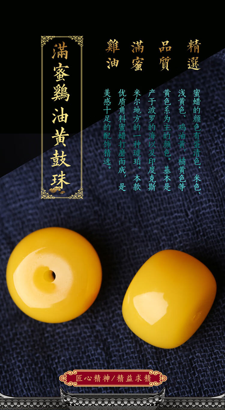 Core fragrant beeswax with beads, drum beads, spaced beads, loose beads, diamond beads, single beads, star and moon bodhi, bracelet accessories collection, honey chicken fat yellow drum beads, 16mm diameter * 15.5mm, default