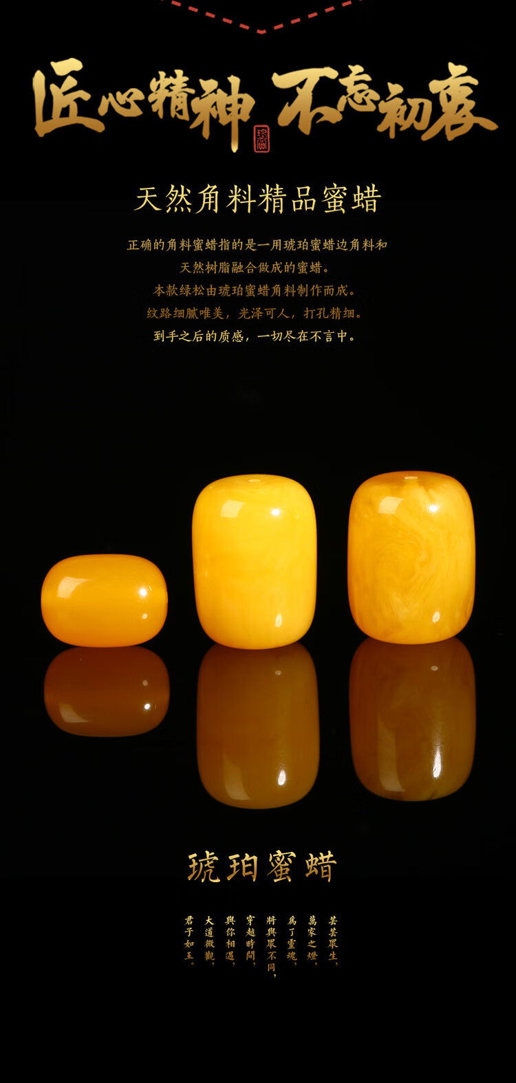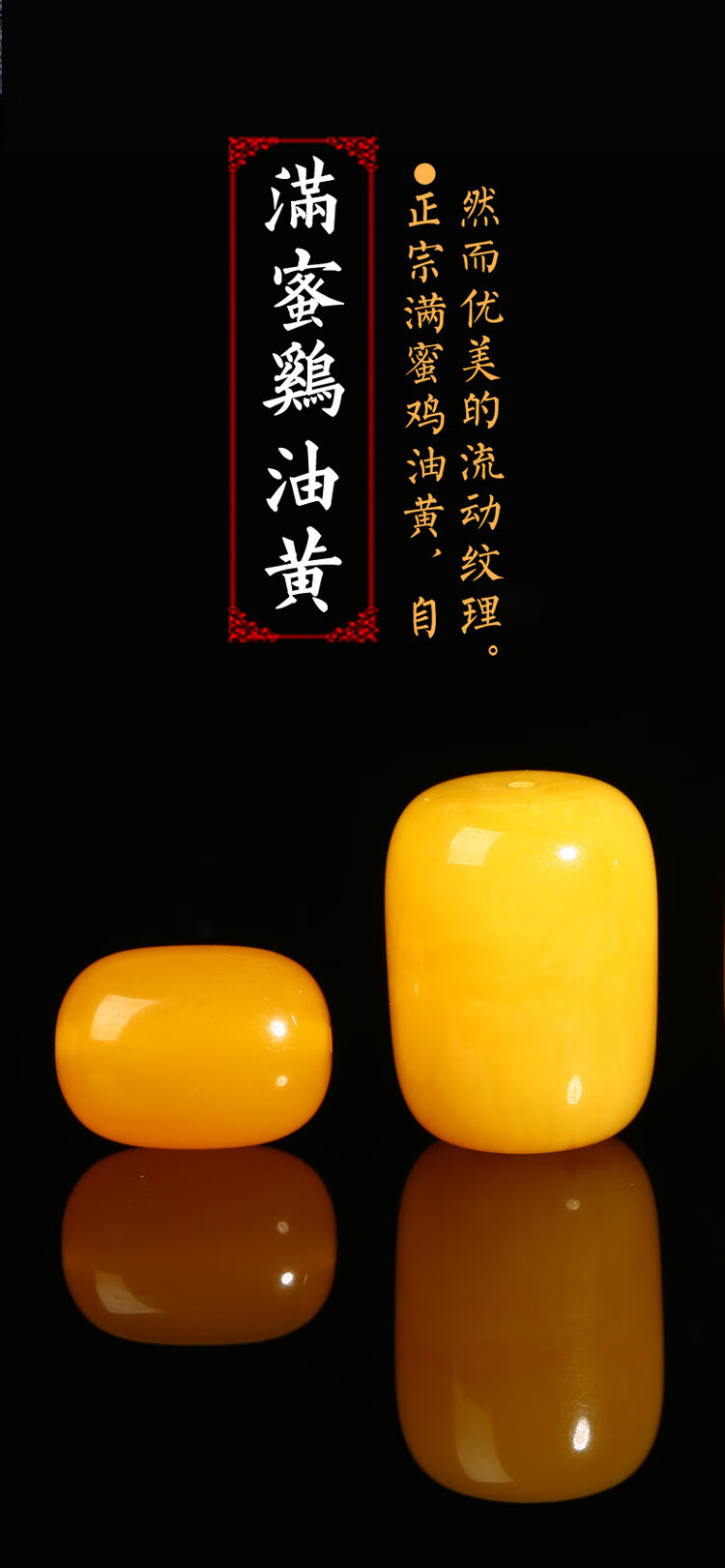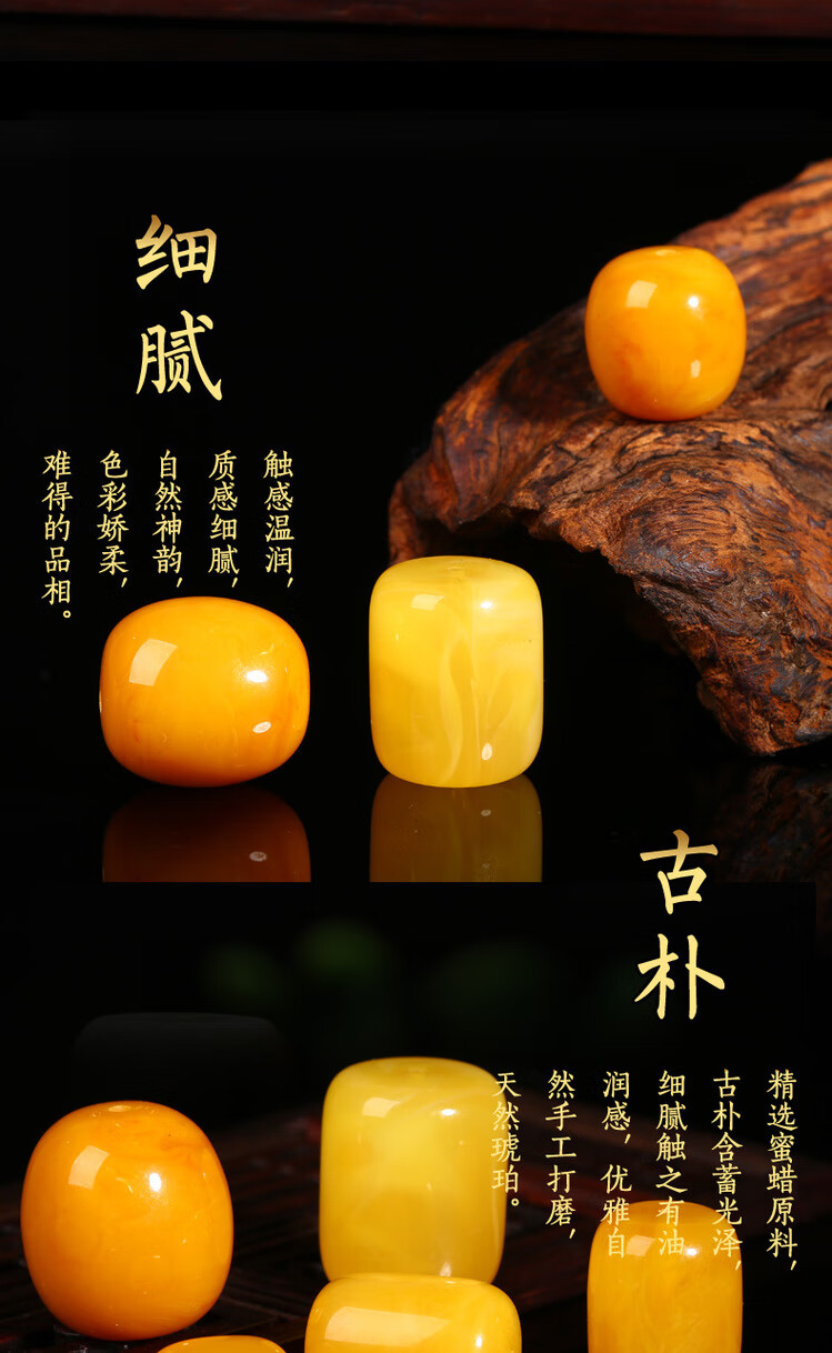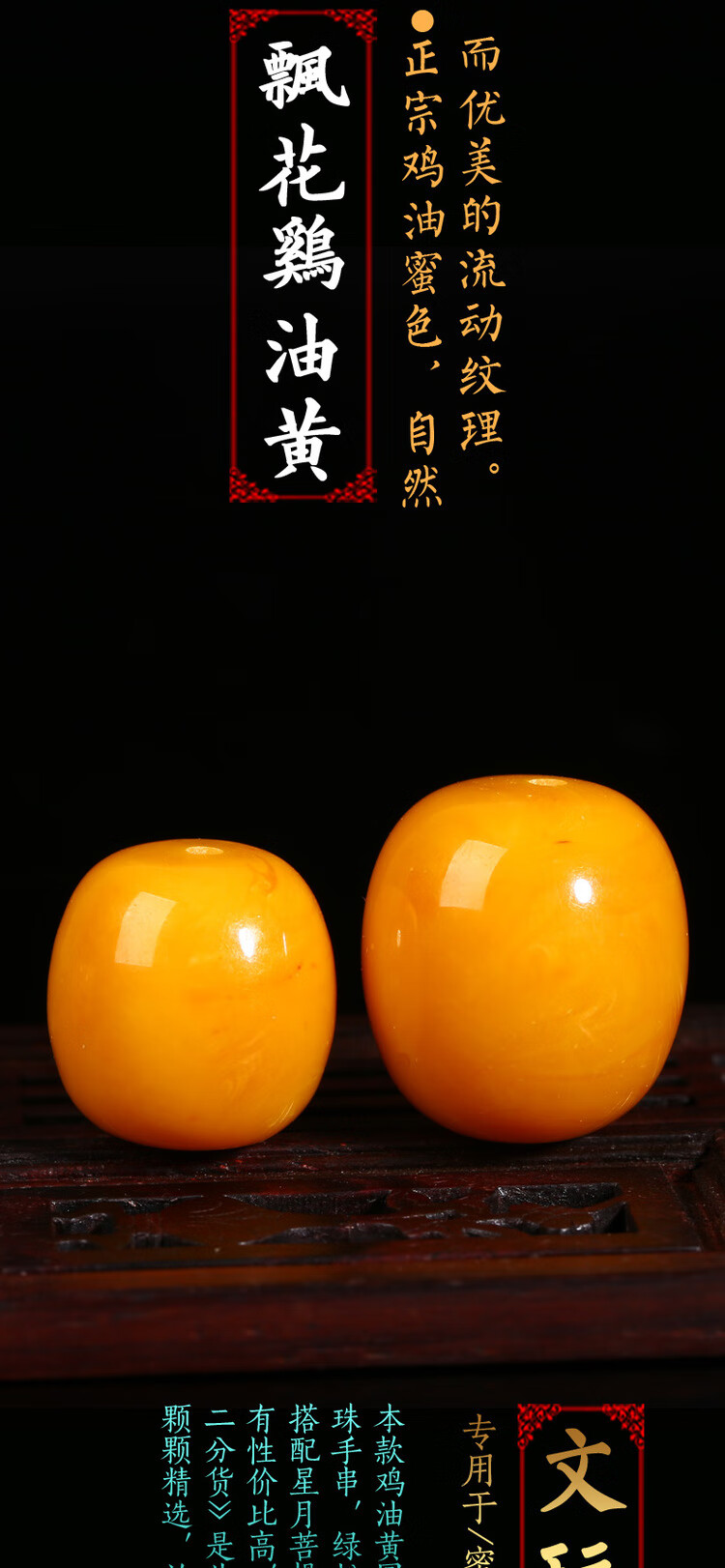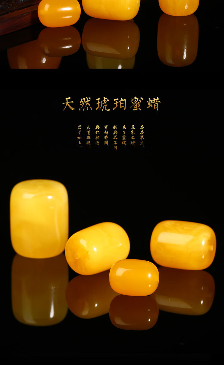 Core fragrant beeswax bucket beads, single bead, single bead with top bead, old beeswax bracelet accessories collection, Vajra, Star, Moon and Bodhi accessories, floating flower chicken fat yellow bucket beads 20*25mm/single, default