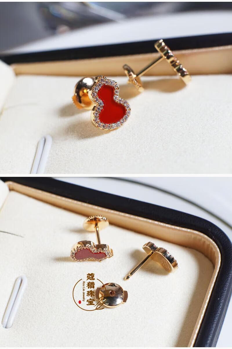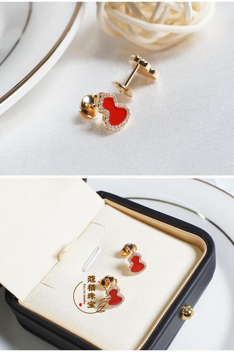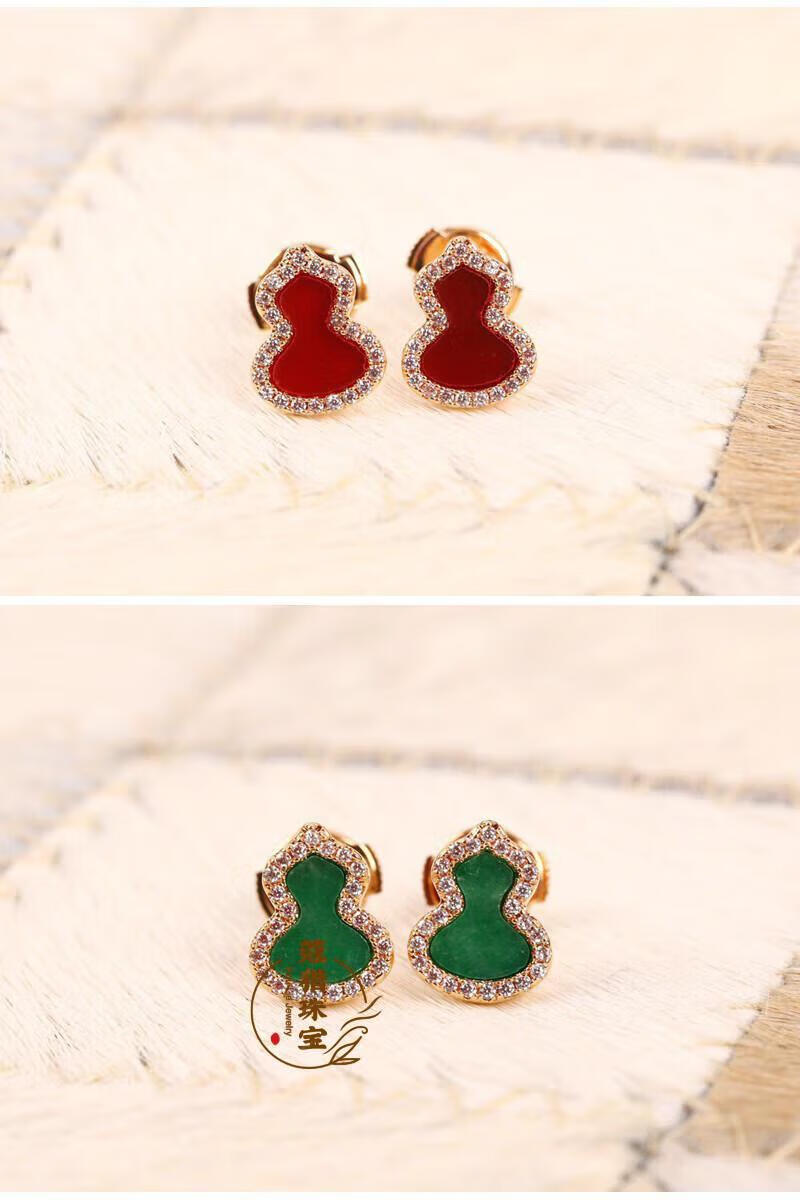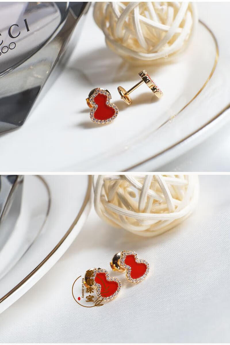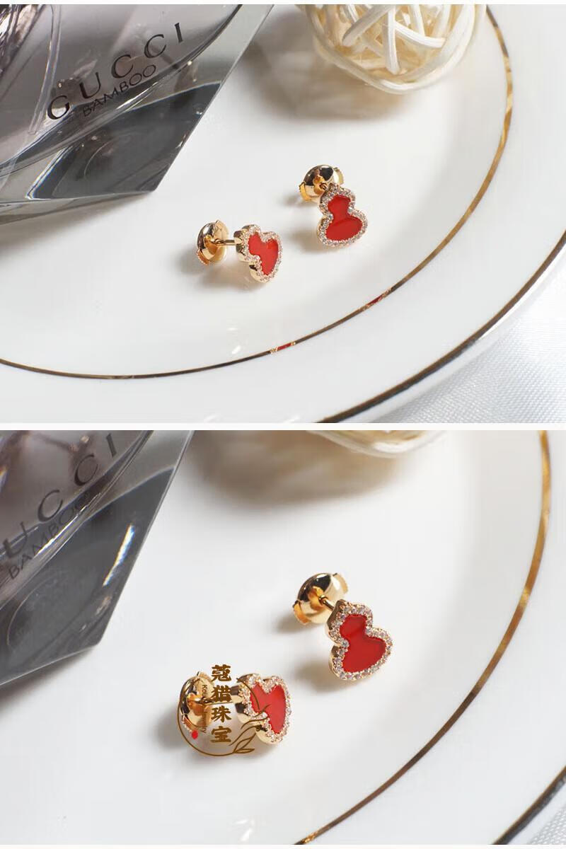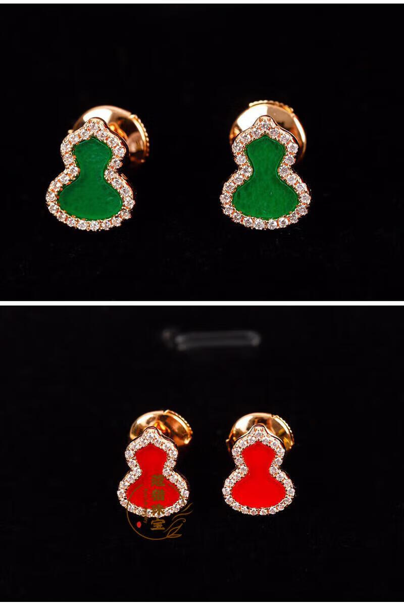 Fat Donglai's same style 18kl rose gold gourd earrings, national fashion red agate chrysoprase 18K rose gold with diamonds and red agate (with flying saucer ear plugs)