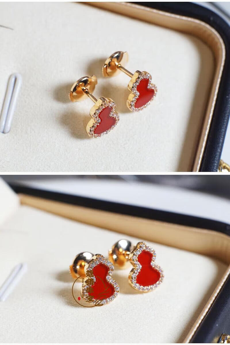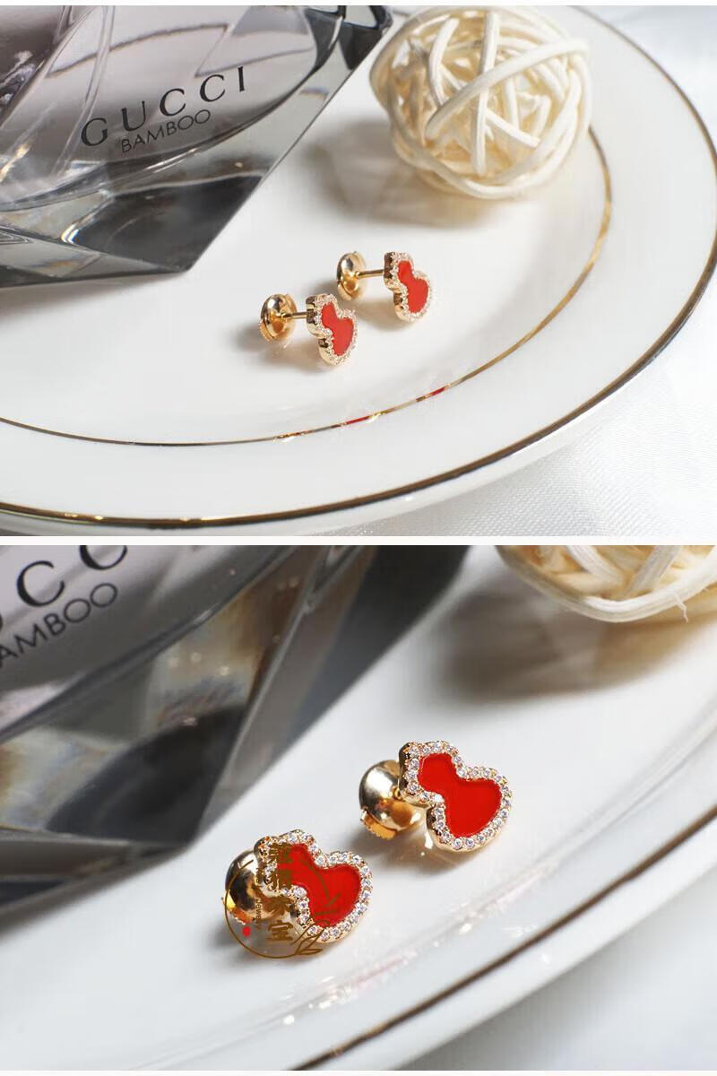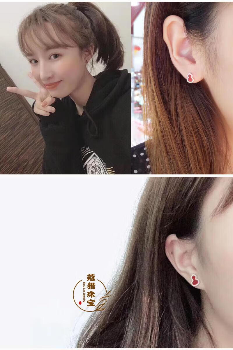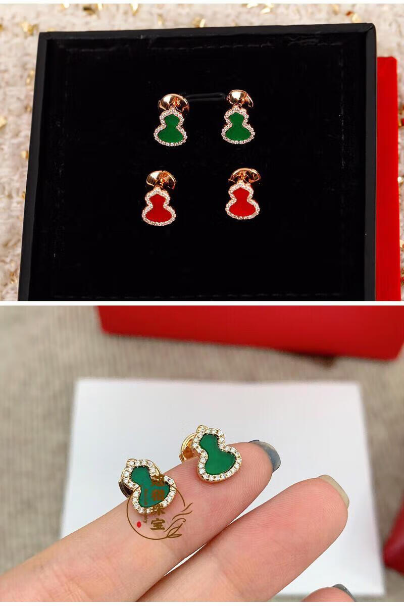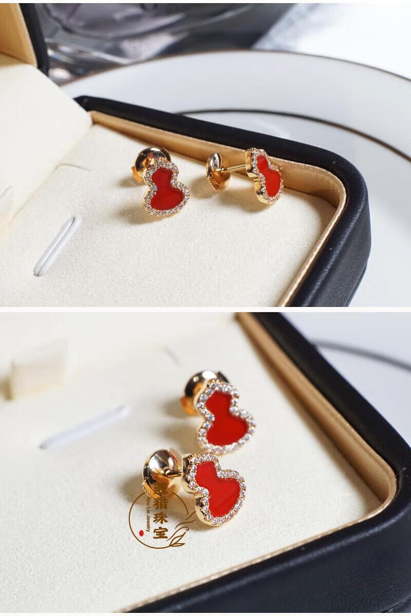 Fat Donglai's same style 18kl rose gold gourd earrings, national fashion red agate chrysoprase 18K rose gold with diamonds and red agate (with flying saucer ear plugs)