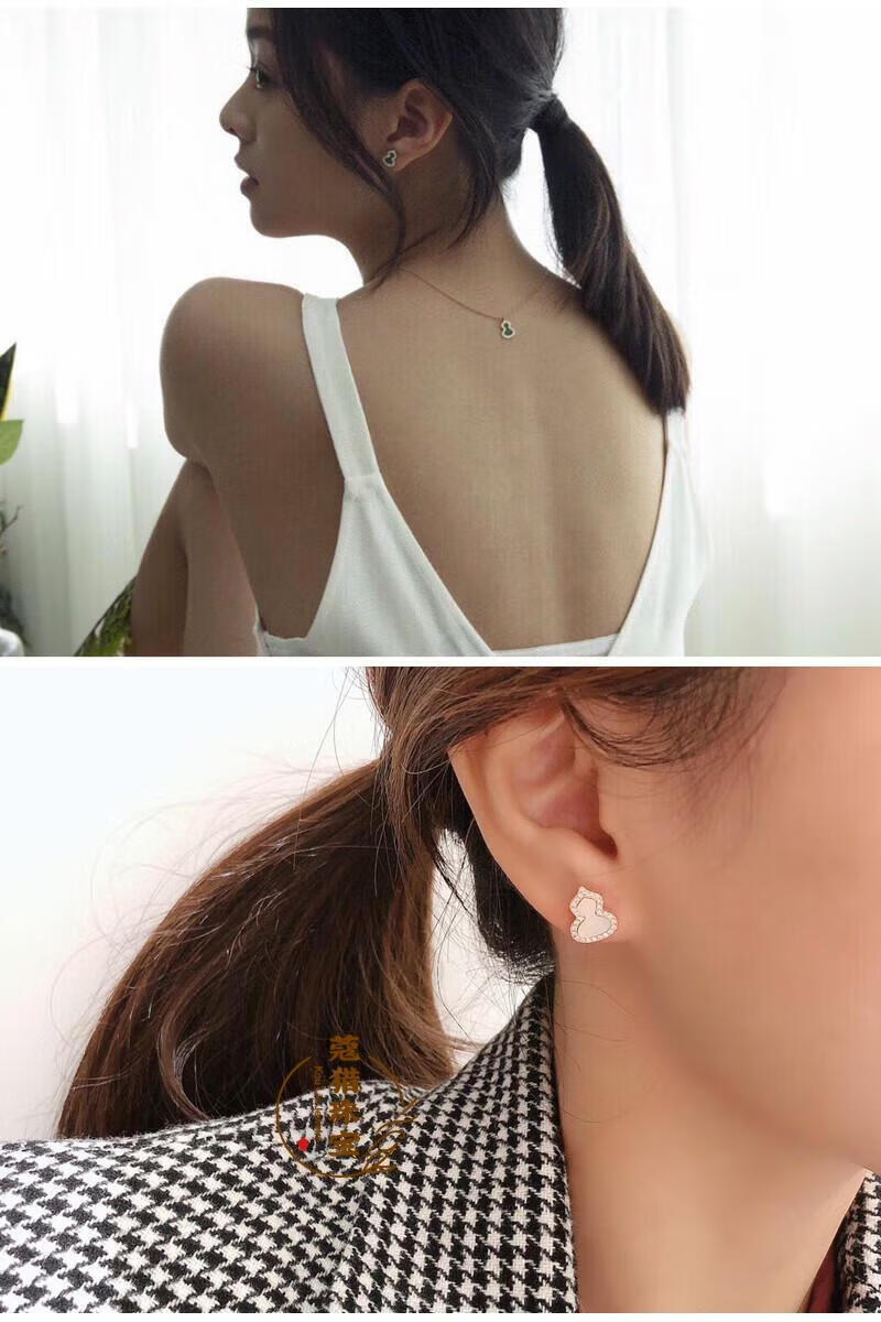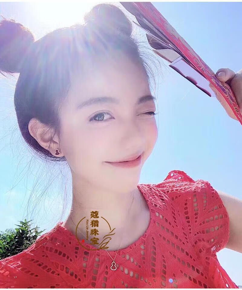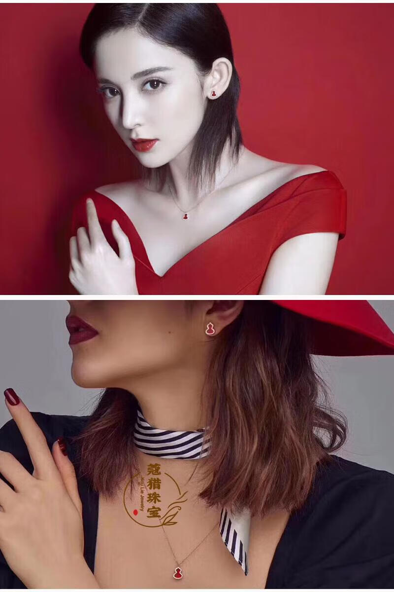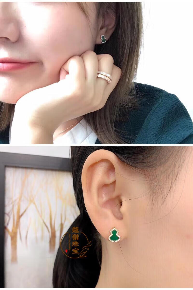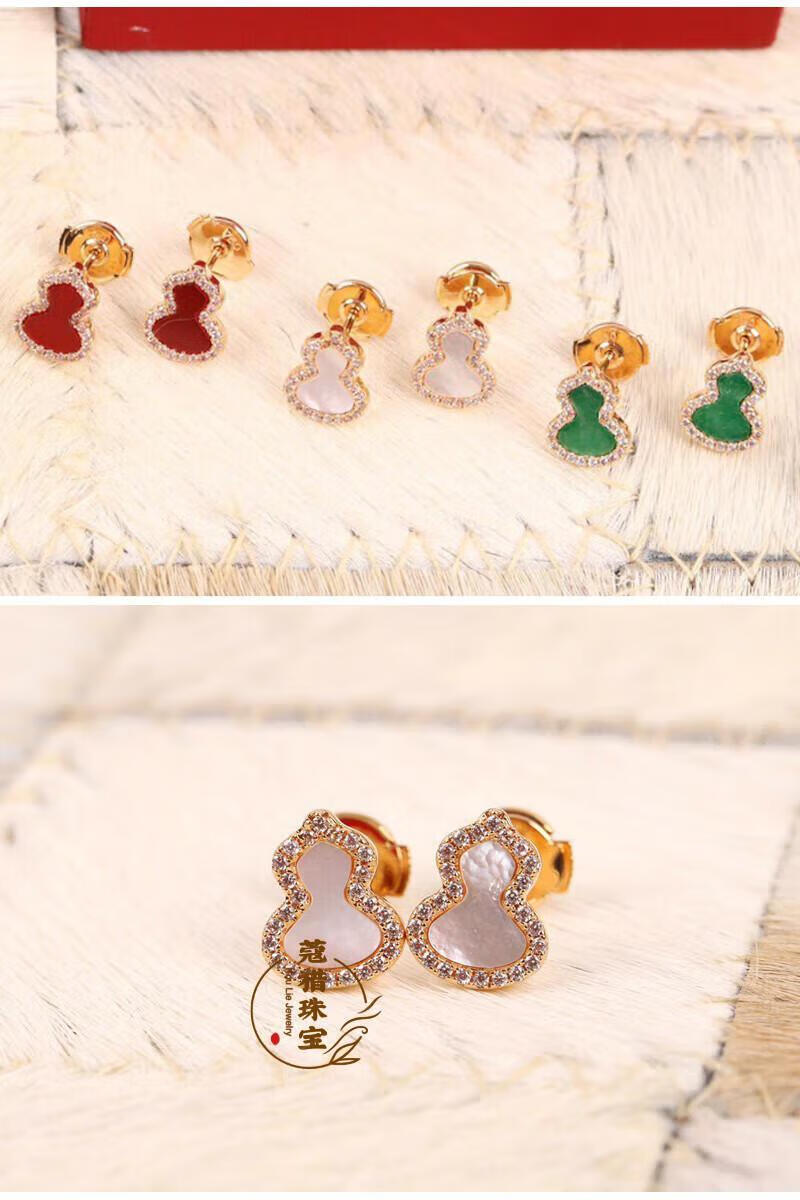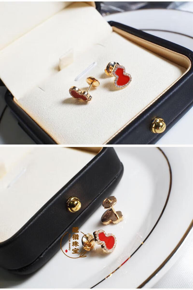 Fat Donglai's same style 18kl rose gold gourd earrings, national fashion red agate chrysoprase 18K rose gold with diamonds and red agate (with flying saucer ear plugs)