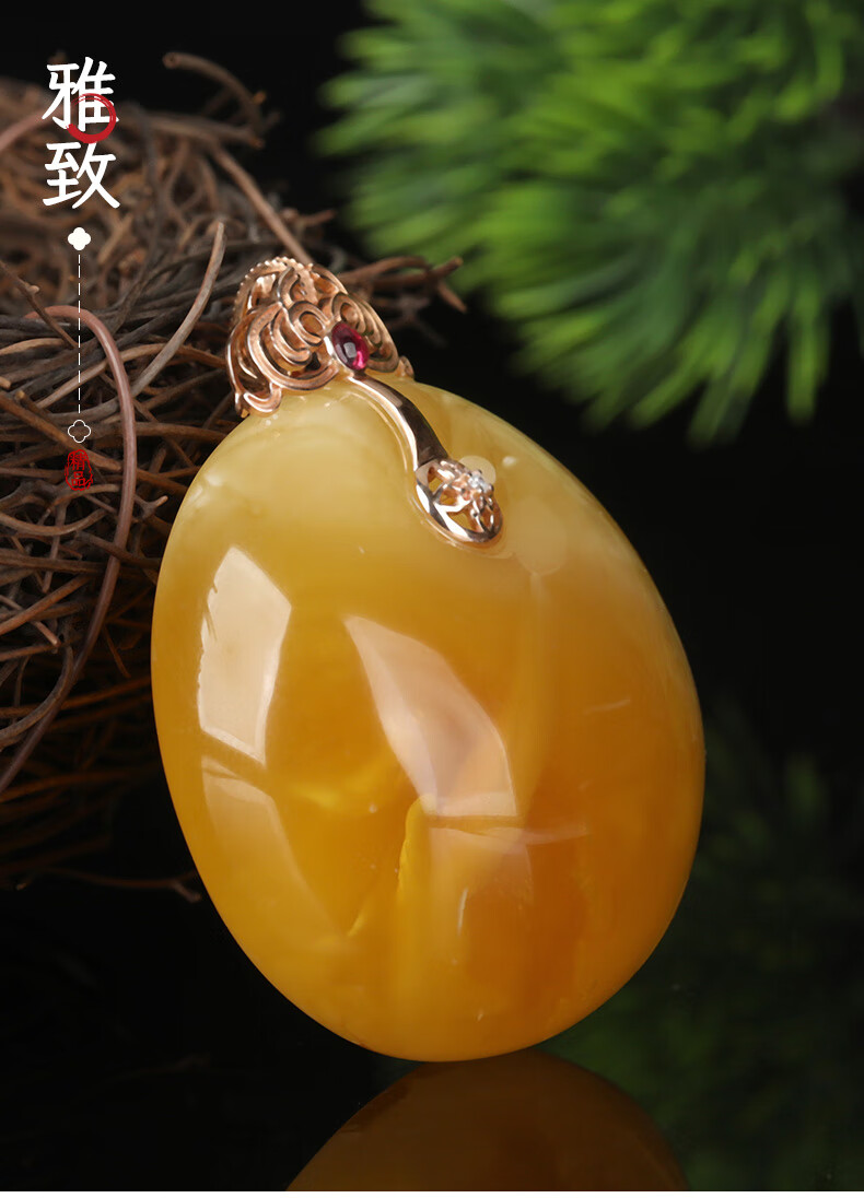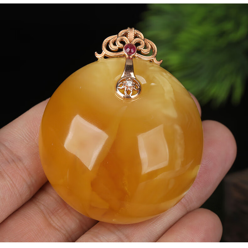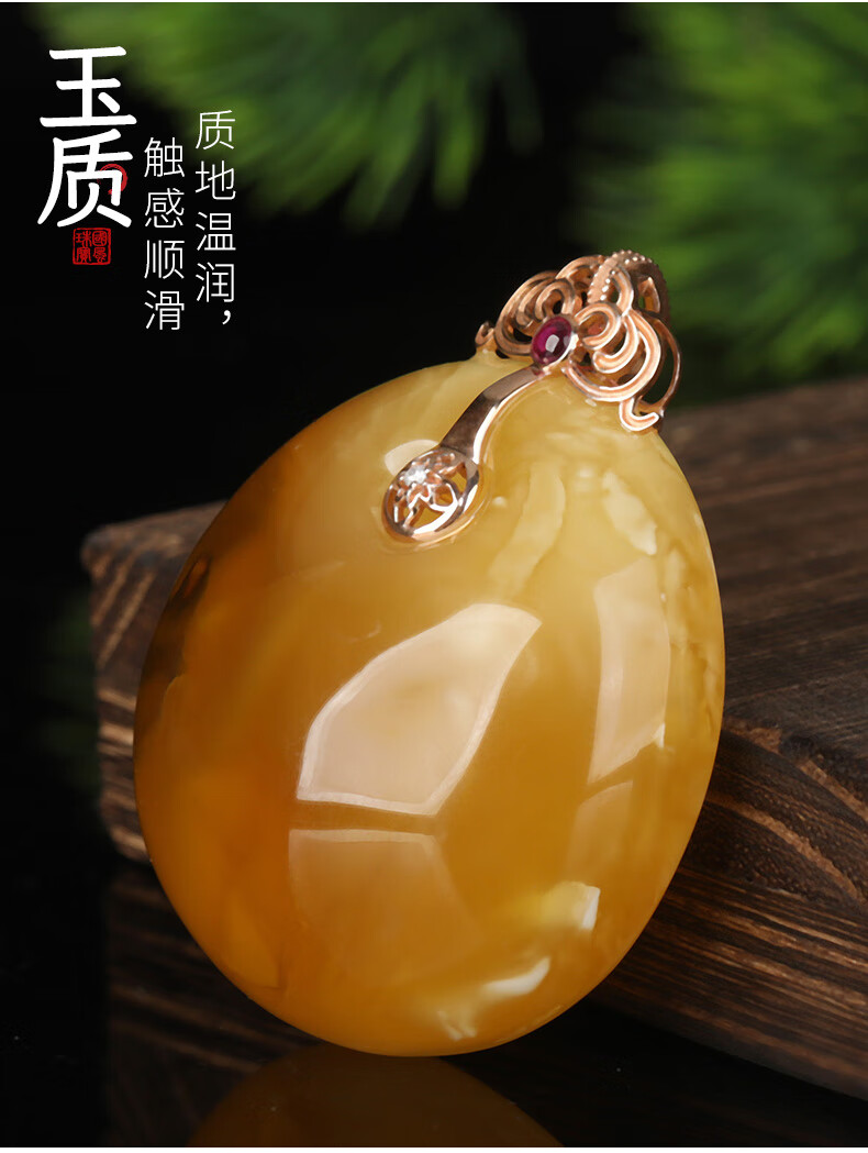 OUCERNY beeswax pendant 18k gold natural full honey chicken fat yellow safety buckle pendant pendant evil collector grade orphan natural orphan one thing one certificate one shot about 30.8g