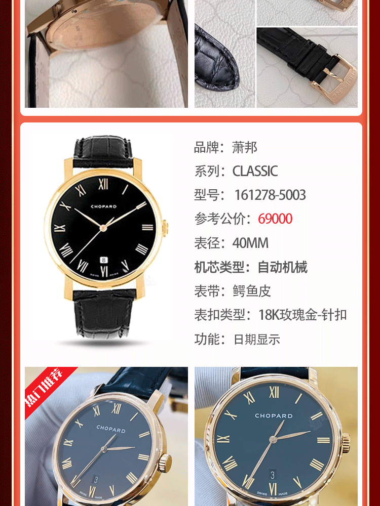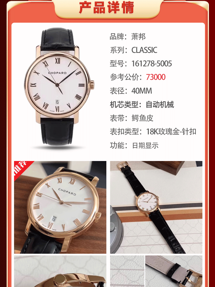 Second hand 99 new Chopard men's watch CLASSIC series Swiss famous watch 18K rose gold 40mm diameter automatic mechanical date display luxury watch 161278-5005
