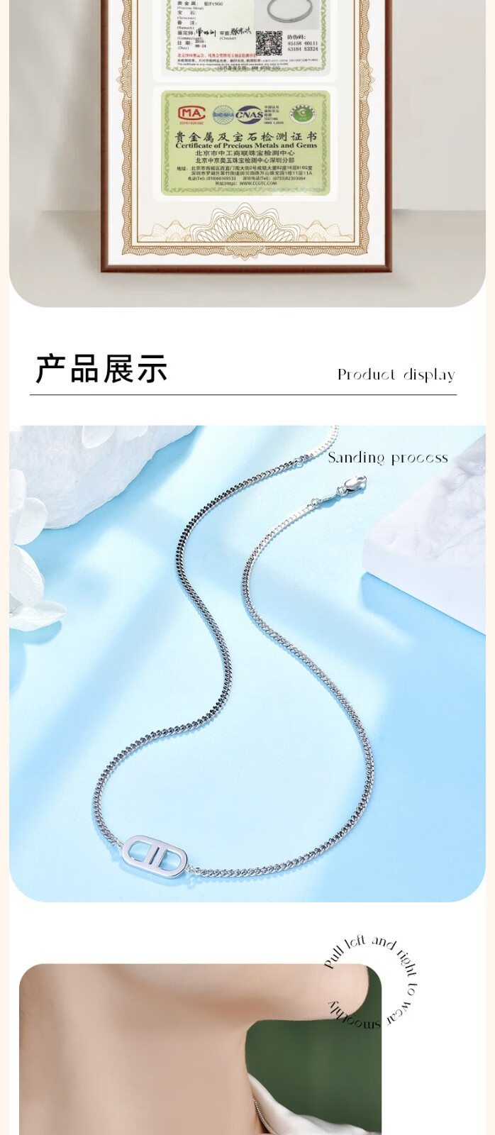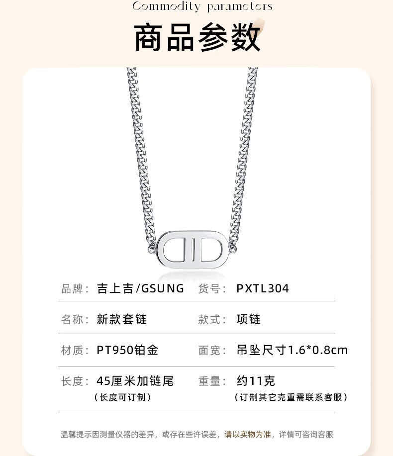 GsunG platinum women's necklace new PT950 pig nose chain fashion platinum necklace women's shiny side chain calculated based on actual shipping weight