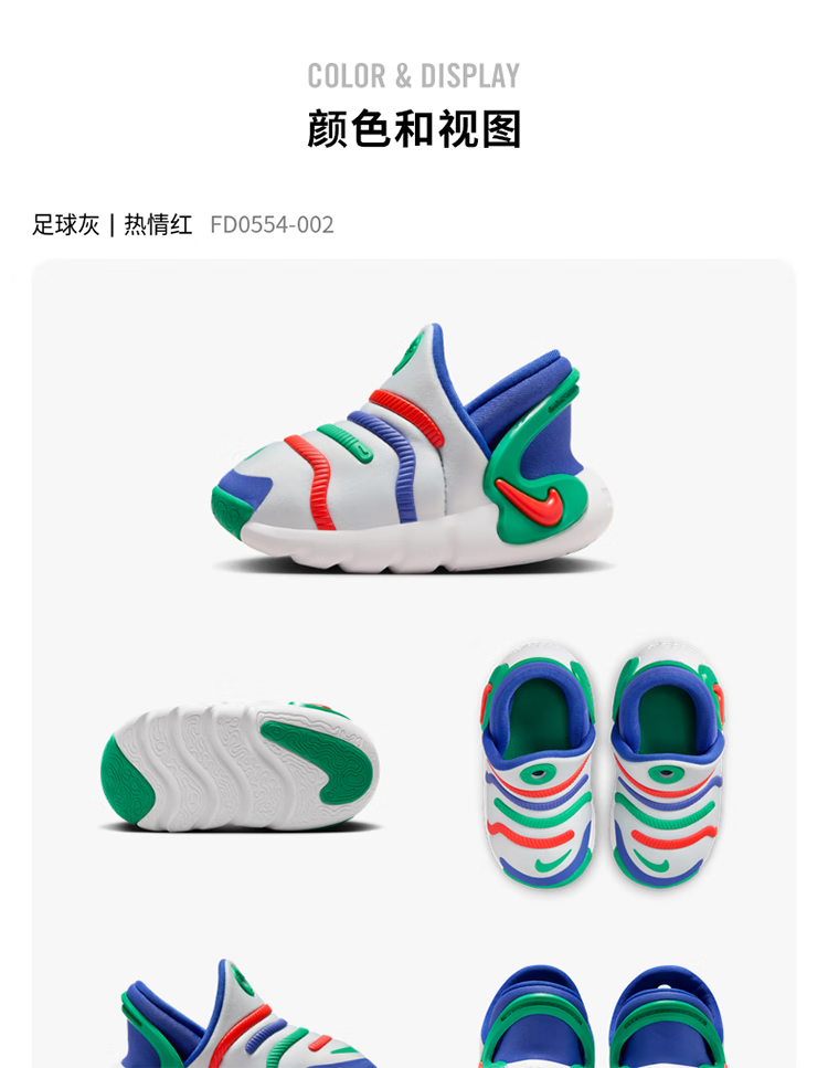 NIKE Nike infant and toddler shoes, caterpillar sneakers for boys and girls, DYNAMO 2 children's slip-on casual shoes, football gray/passion red/Persian purple/stadium green 23.5 recommended foot length 13cm