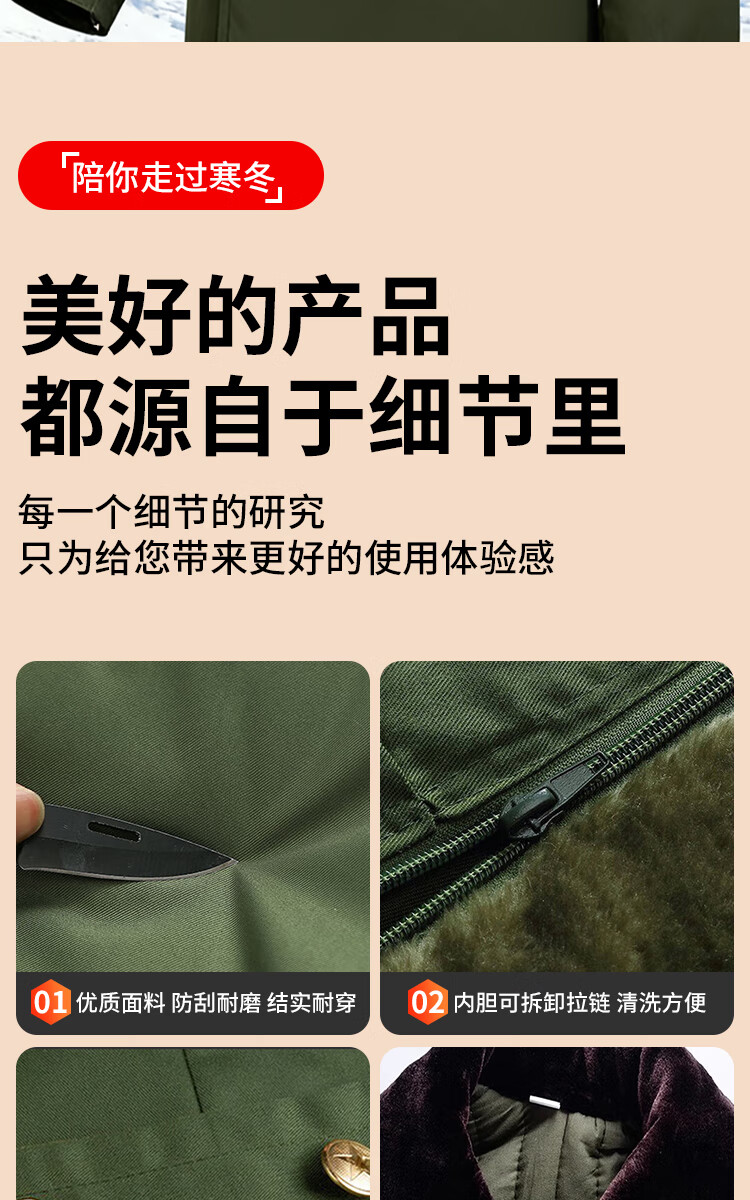 3013Ji Huajun Coat Cotton Coat Men's Over-the-Knee Winter Thickened Long Security Coat Yellow Coat Coldproof Clothing Labor Protection Cotton Jacket Military Coat-(Xinjiang Cotton) Thickened Style