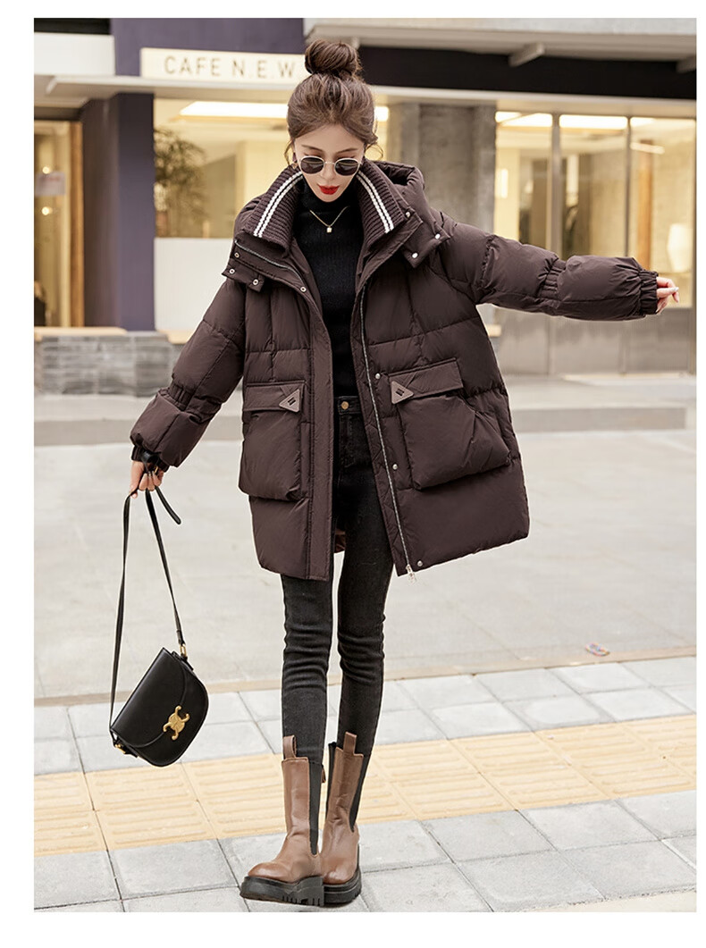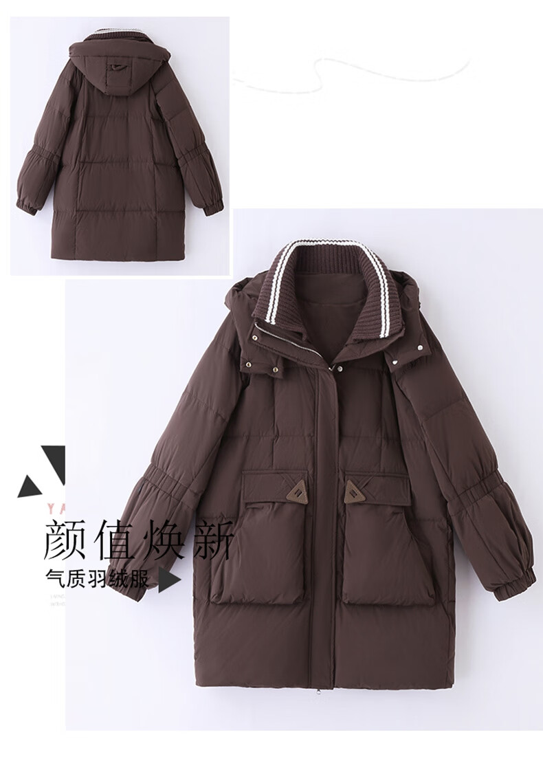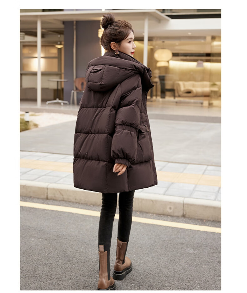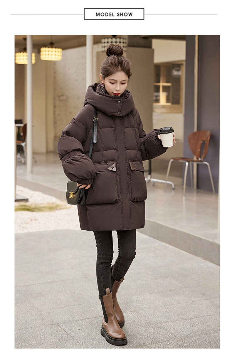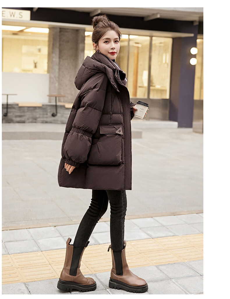 Bailanjiao down jacket women's mid-length 2025 winter women's new style small high-end loose thickened white duck down jacket brown M (recommended 100-135 Jin Jin equals 0.5 kg)