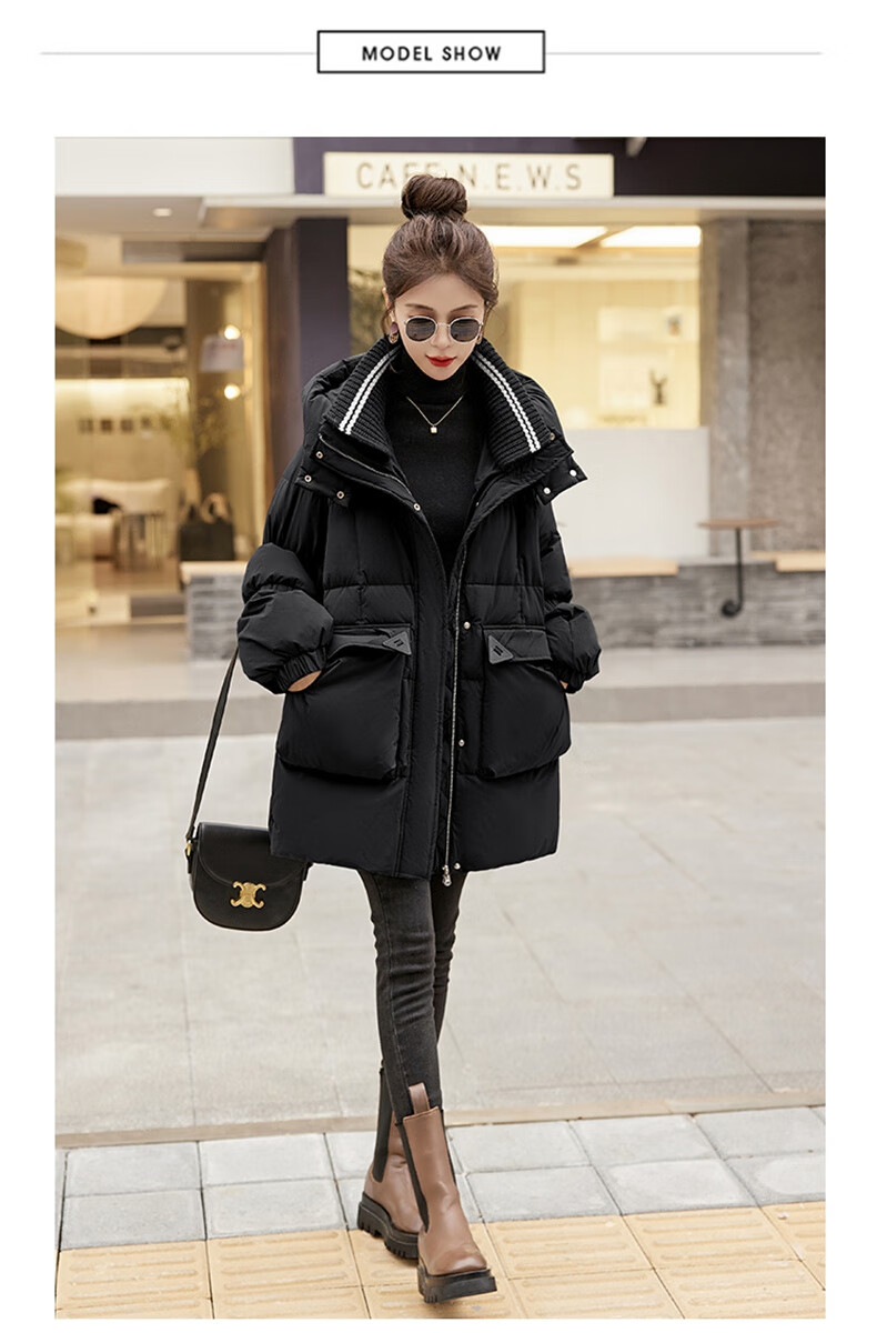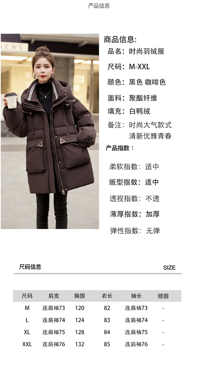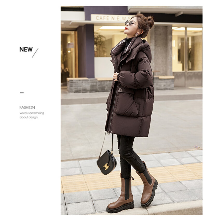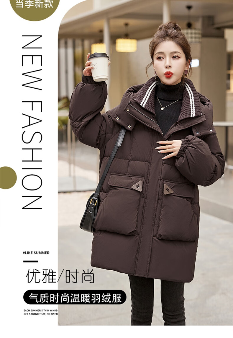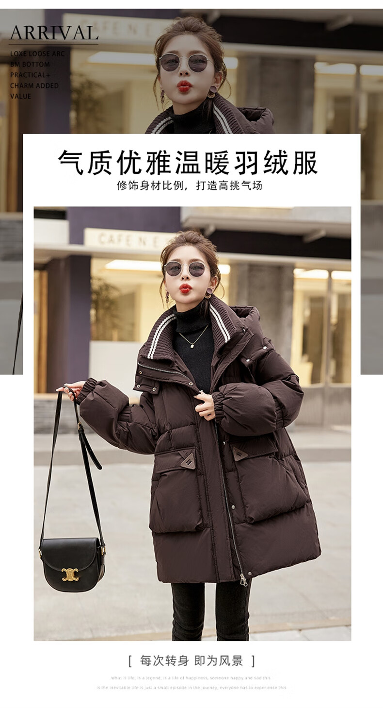 Bailanjiao down jacket women's mid-length 2025 winter women's new style small high-end loose thickened white duck down jacket brown M (recommended 100-135 Jin Jin equals 0.5 kg)