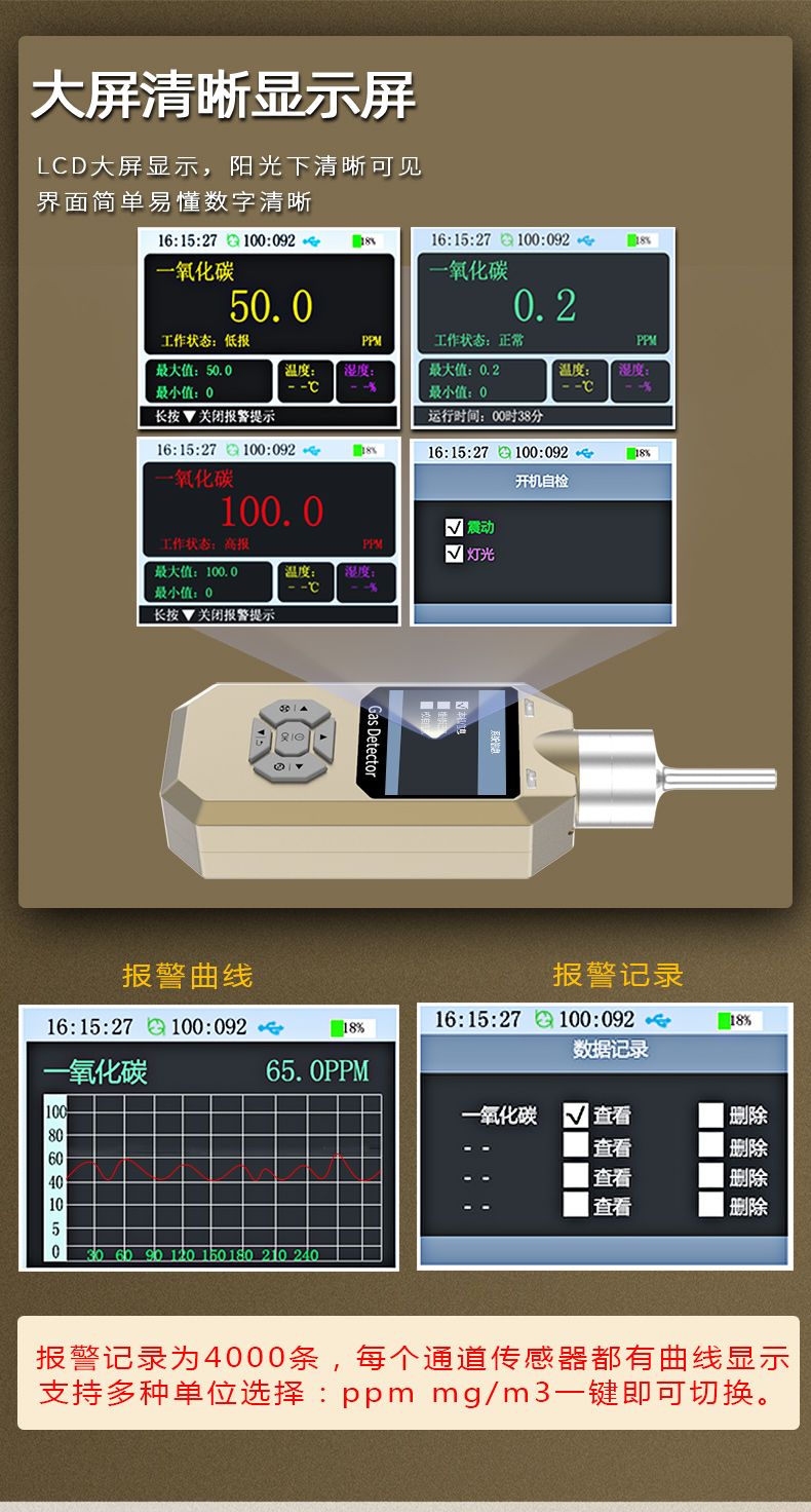 Pulitong high-precision pump-type gas detector explosion-proof flammable harmful ozone harmful detection handheld portable carbon dioxide detector 0-5000PPM