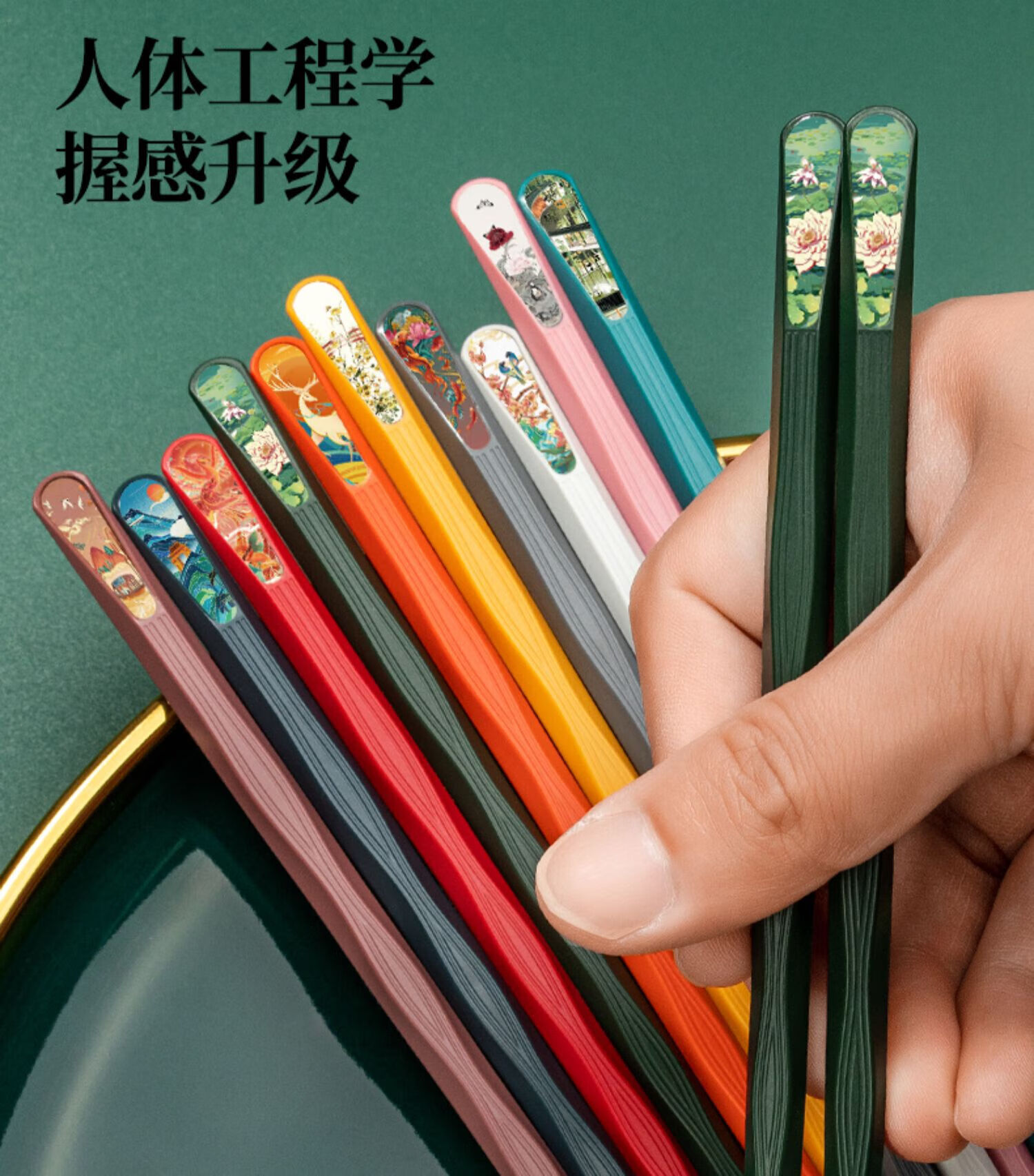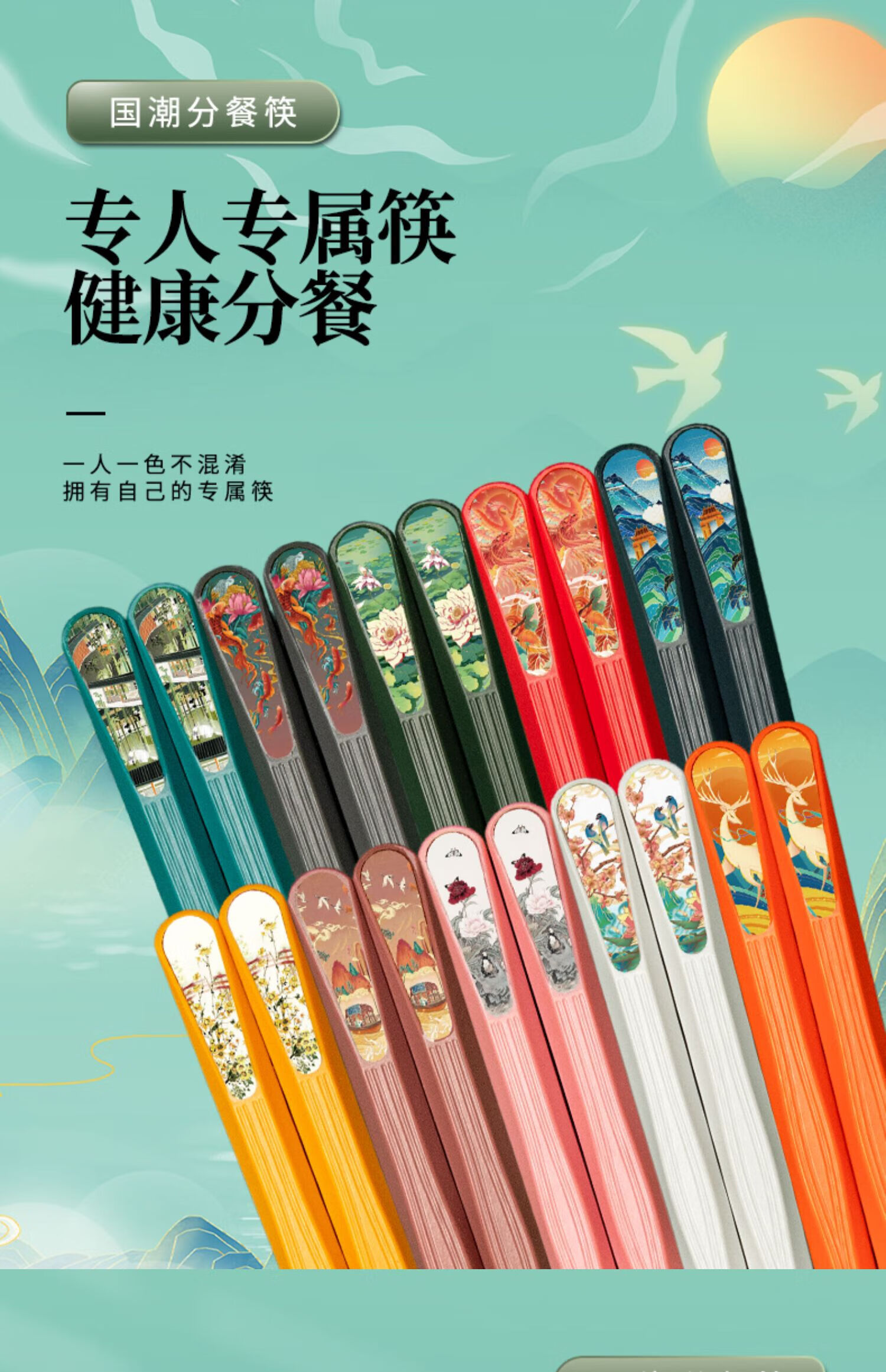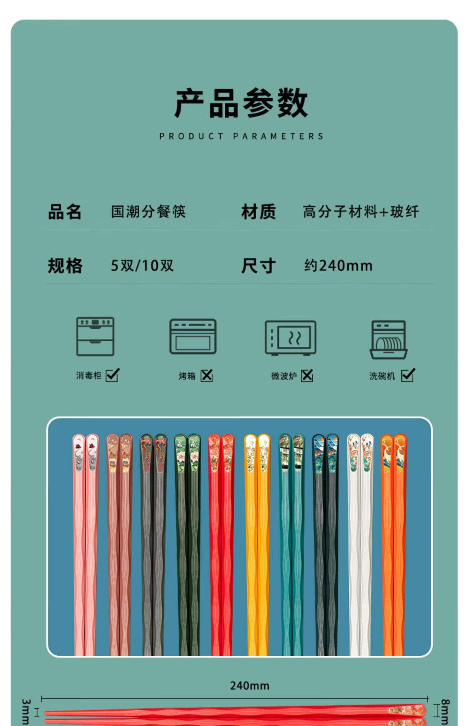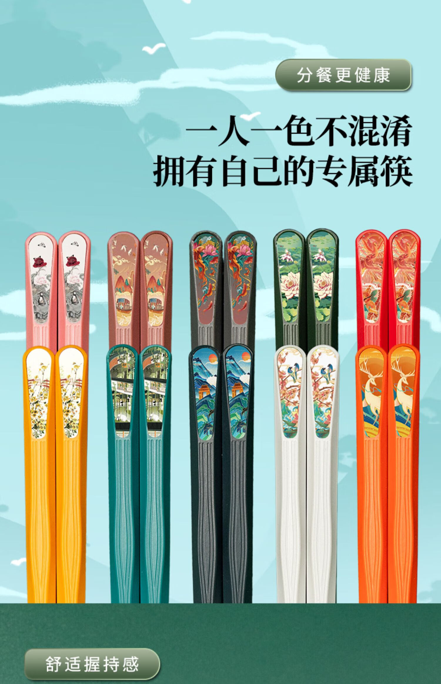 京迭【10双装】筷子家用高档合金筷国潮防霉家庭高颜值分餐筷一人一筷 金玉满堂十色【国潮风】十双