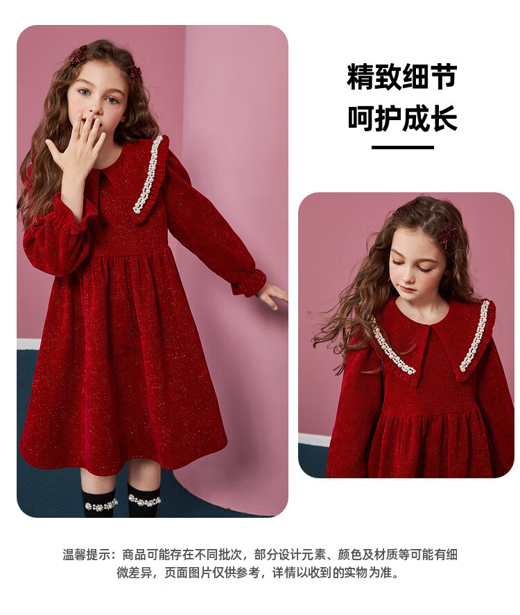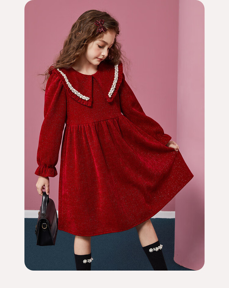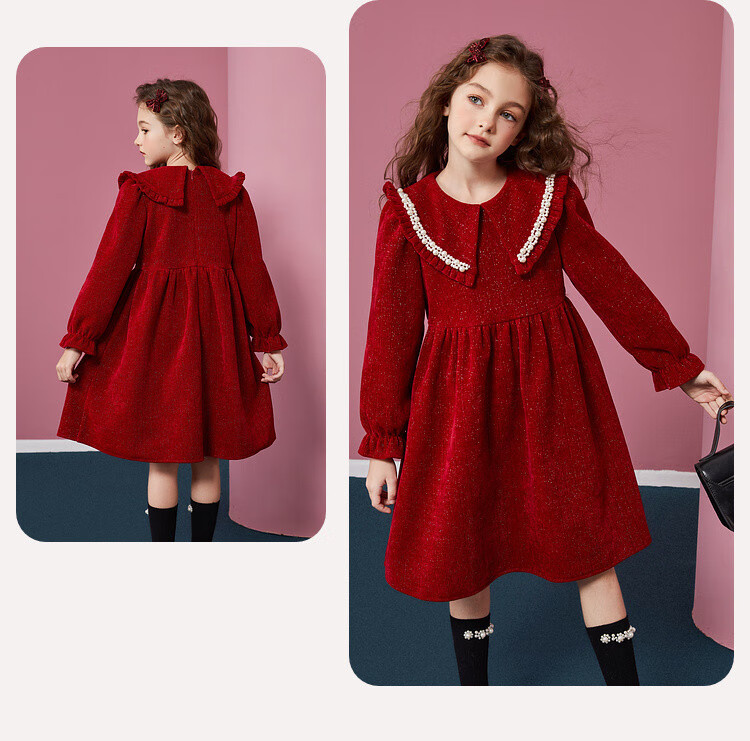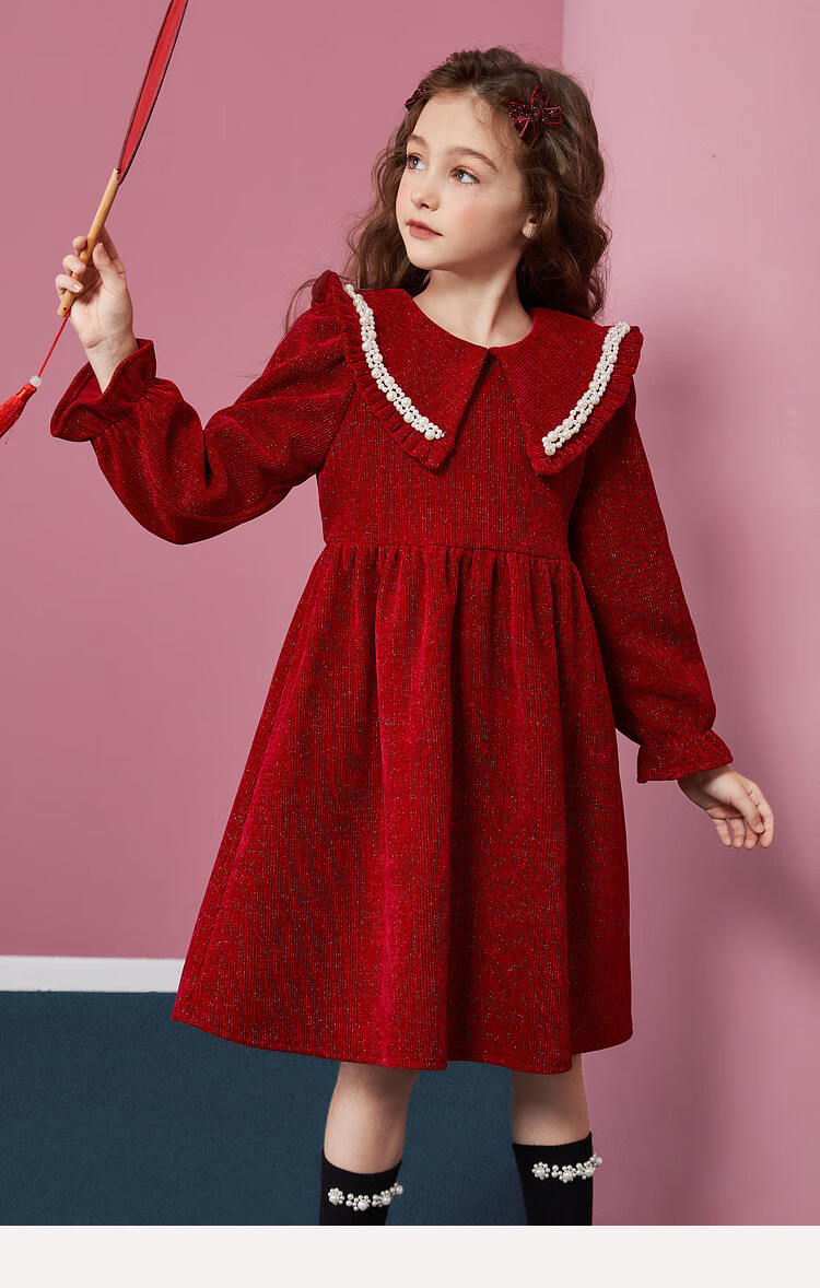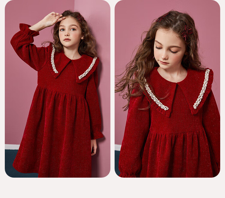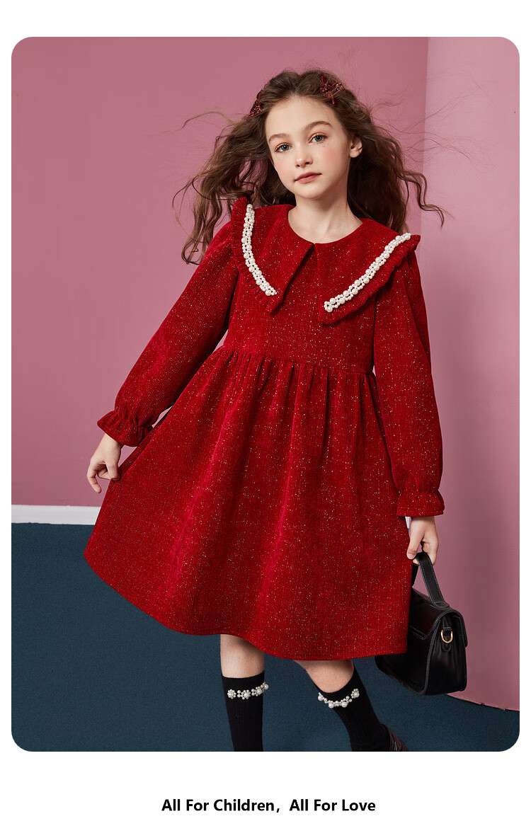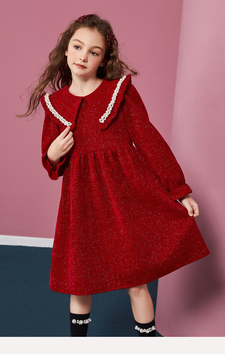 ASK JUNIOR New Year's wear, girls' skirts, winter clothes, children's lapels, velvet glitter princess skirts, performance clothes, red 140