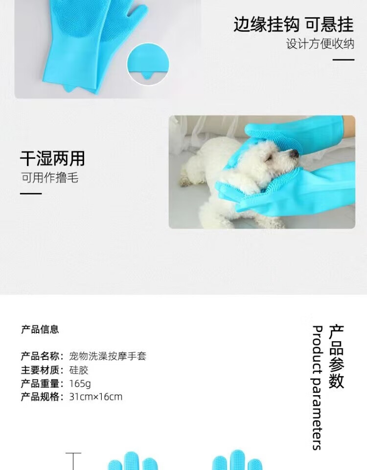Red Rabbit Horse Pet Massage Gloves Anti-Scratch and Bite Bath Gloves Bath Gloves for Dogs and Cats Thickened Blue Thickened