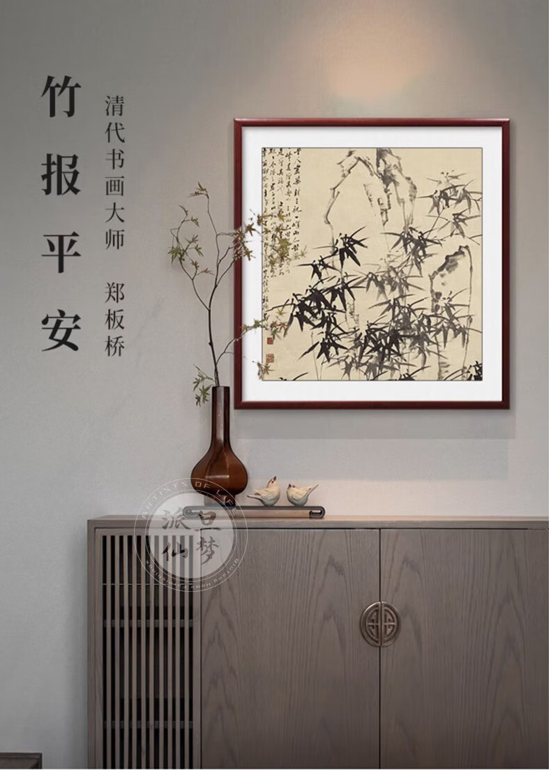 Paidan Fairy Dream Zheng Banqiao Bamboo Newspaper for Peace Bamboo Decorative Painting Entrance Hall Hanging Painting New Chinese Ink Painting Dou Fang Restaurant Chinese Painting G-Bamboo Newspaper for Peace Zheng Banqiao 80*80cm Oil Canvas + Plexiglas Elegant Mahogany Solid Wood Frame